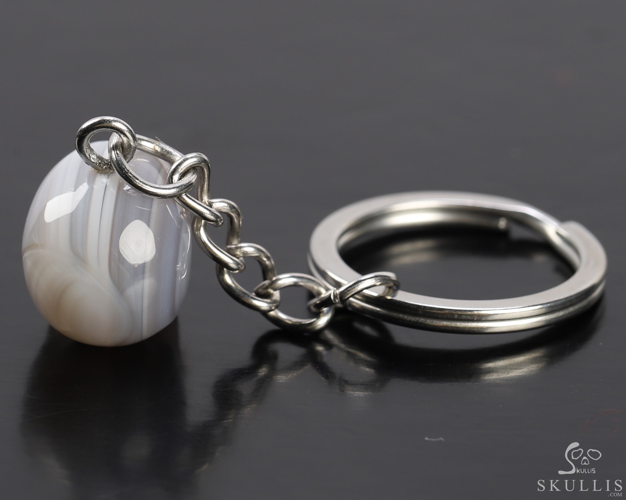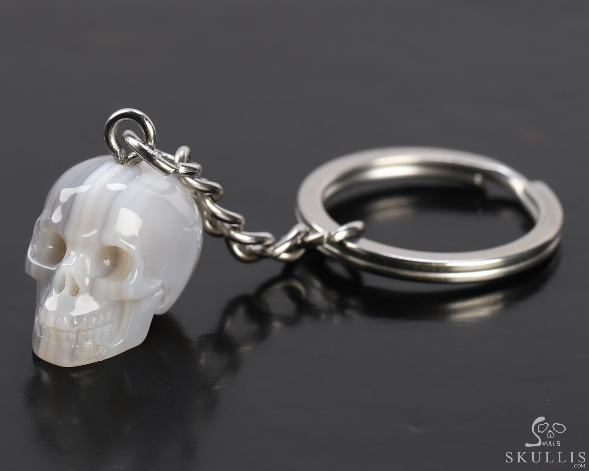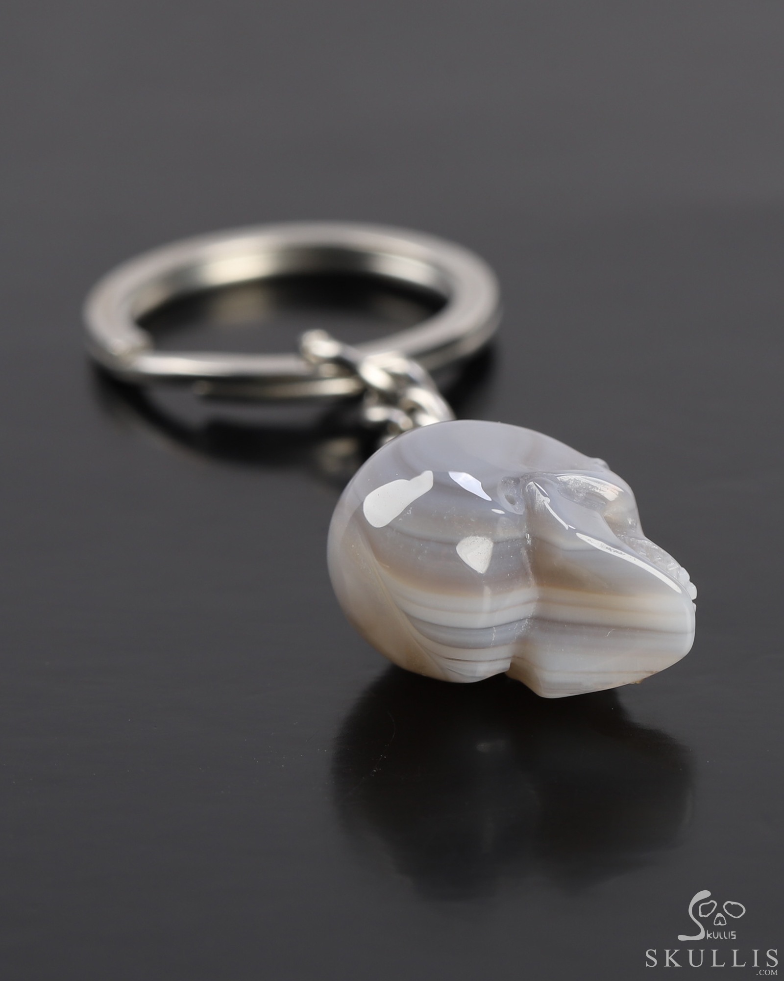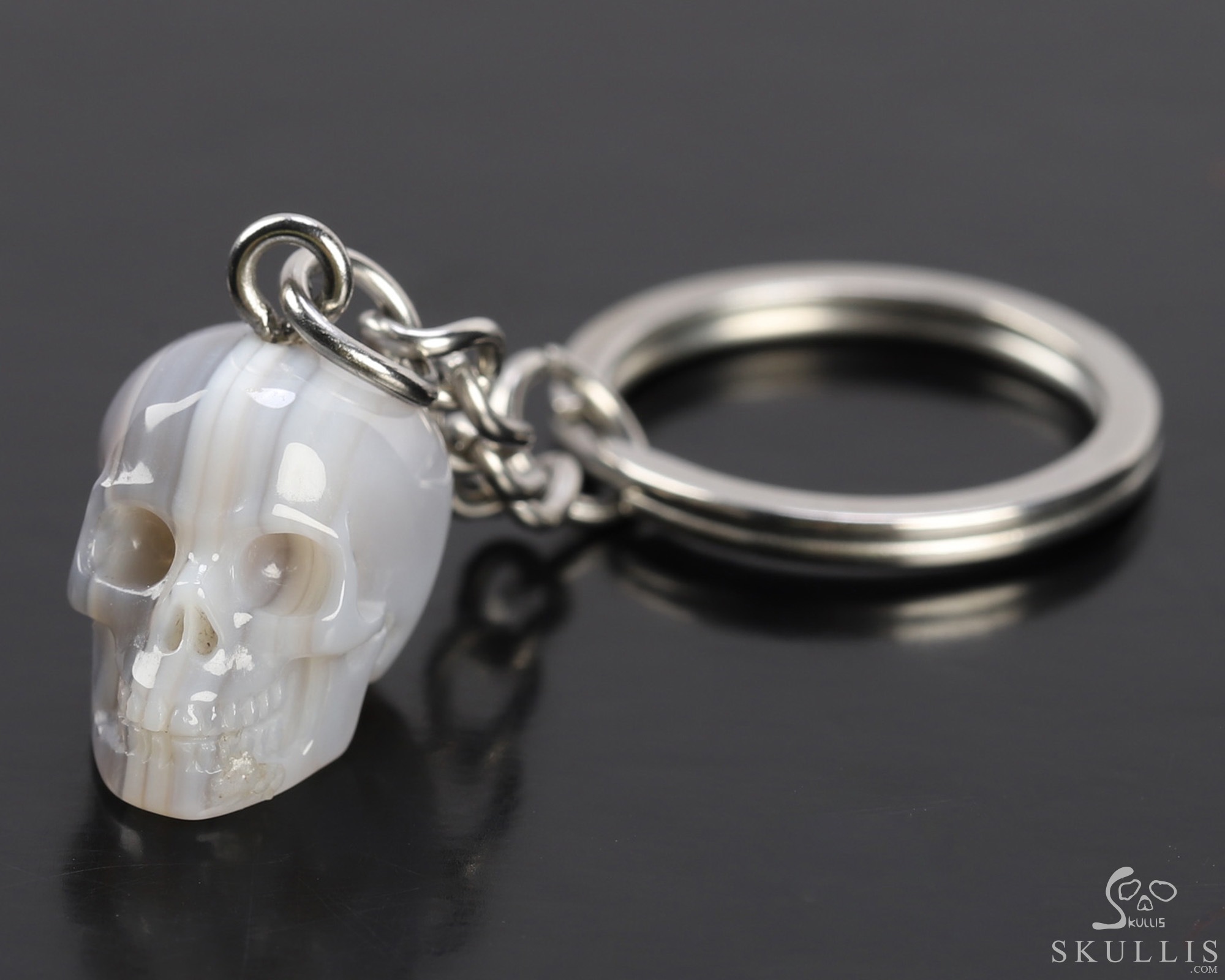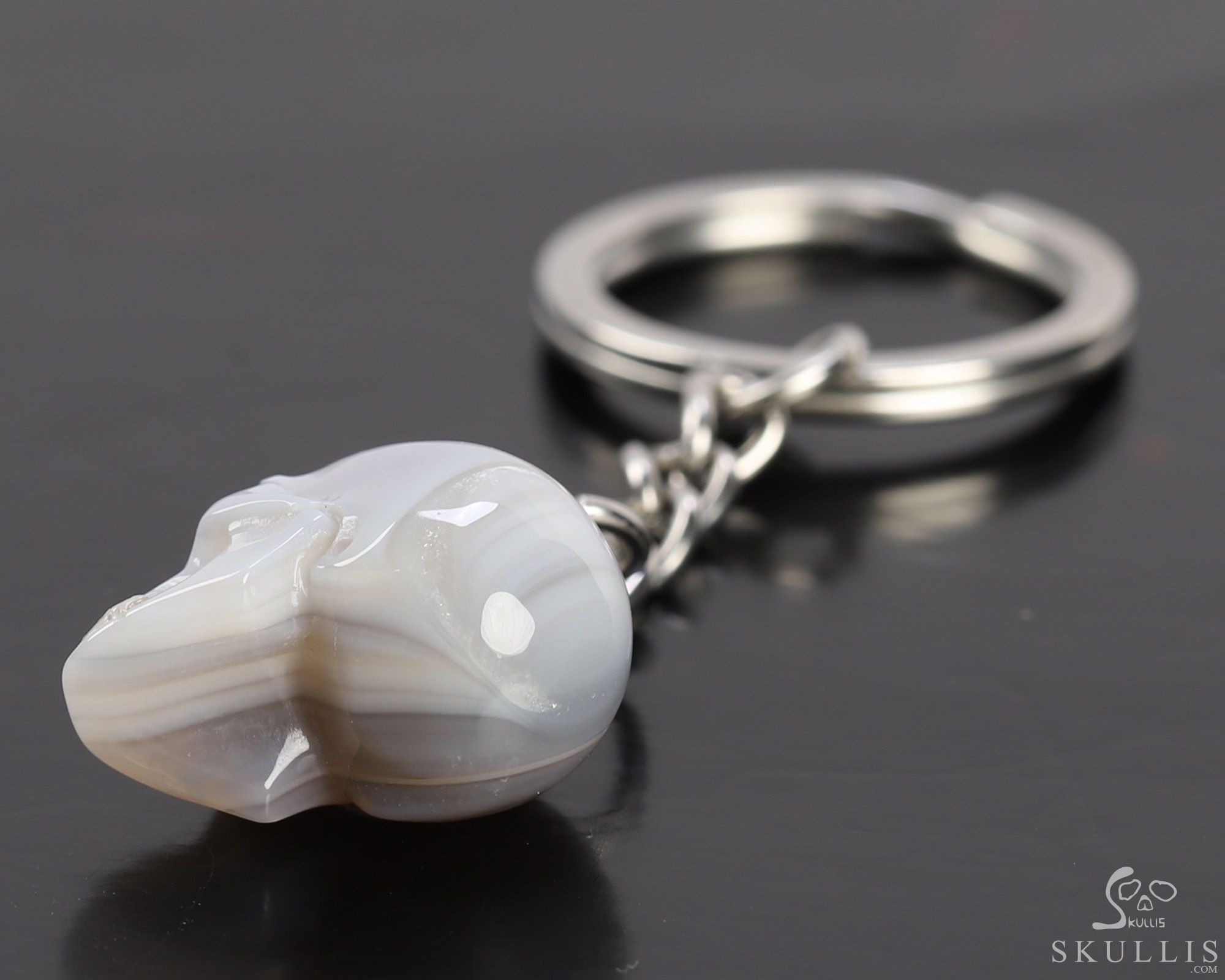 0.7" Banded Agate Hand Carved Crystal Skull Key Buckle, Crystal Healing