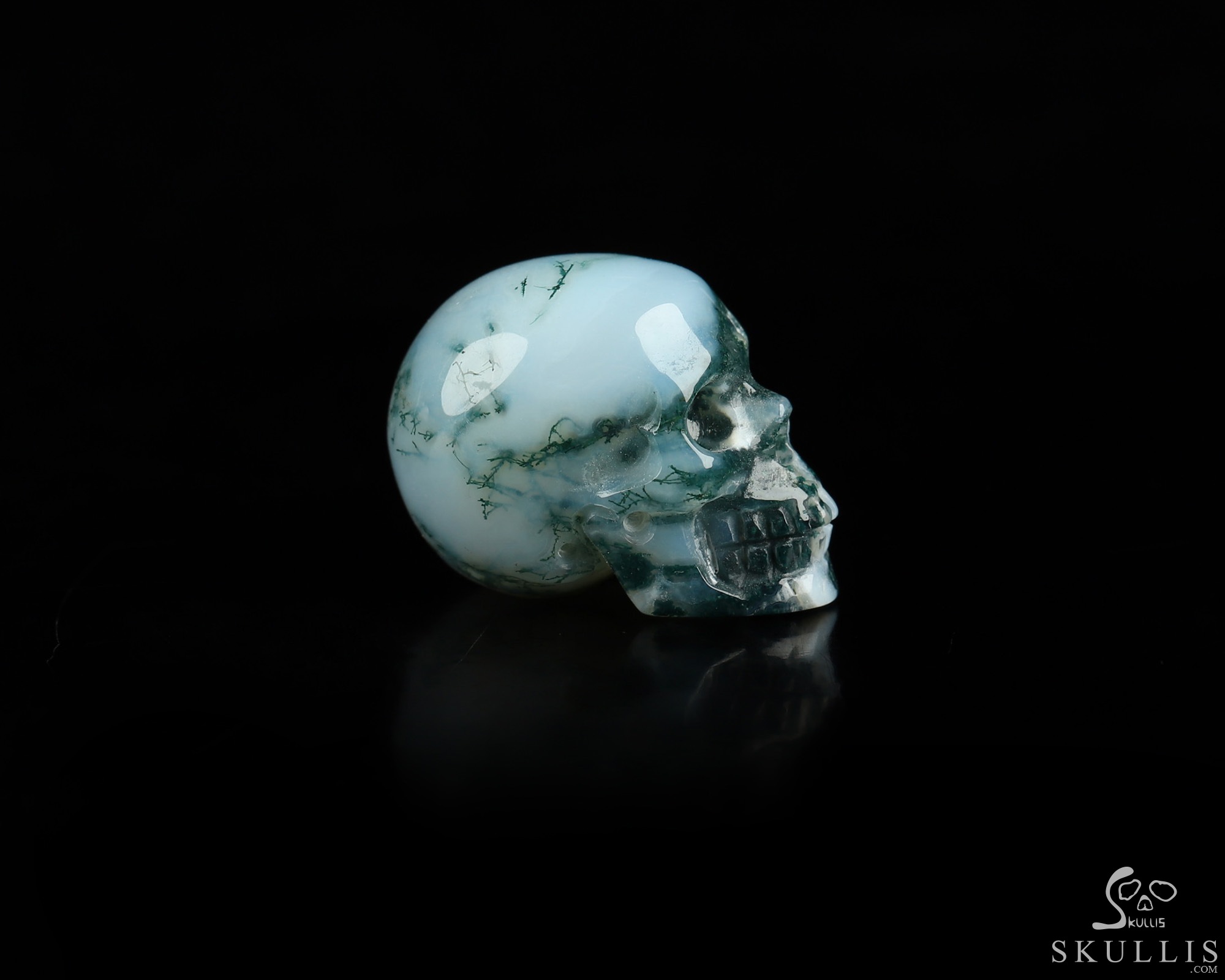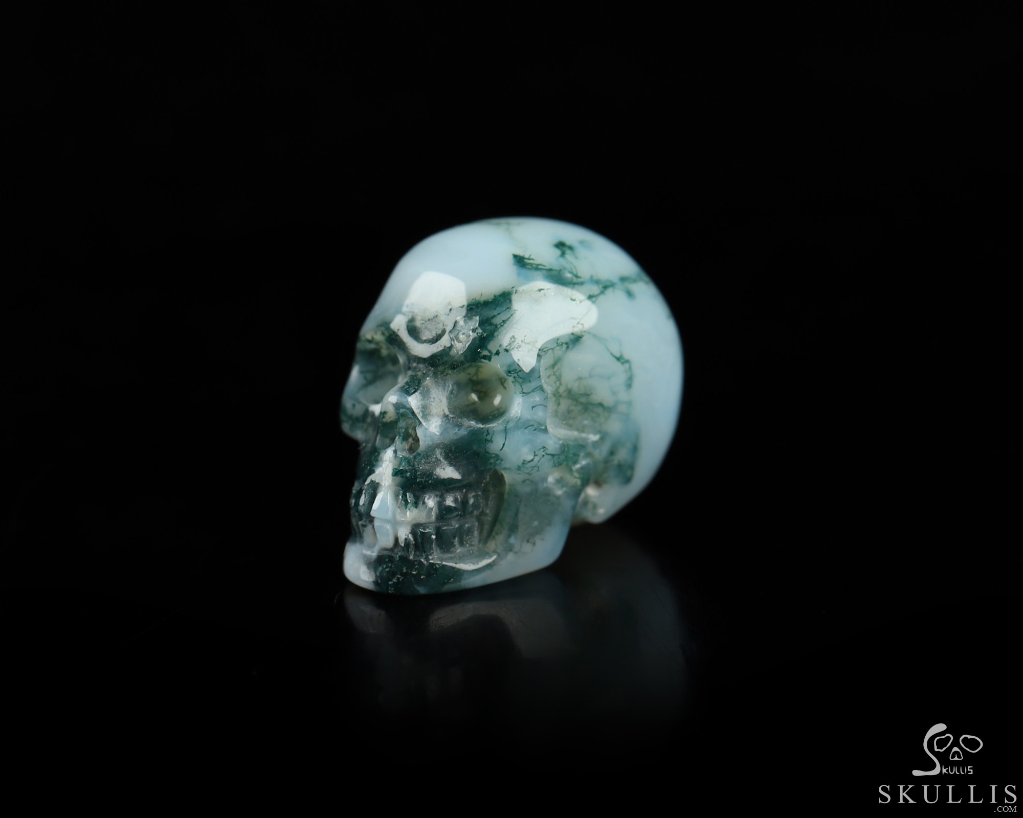 1.1" Green Moss Agate Hand Carved Crystal Skull, Realistic, Crystal Healing
