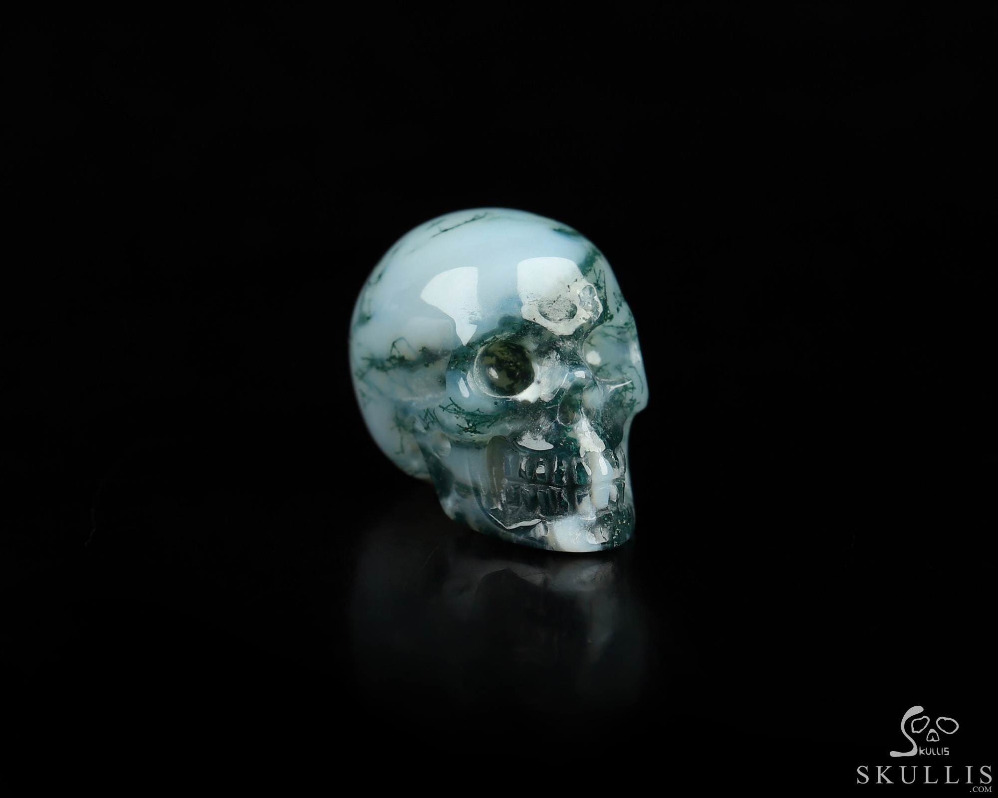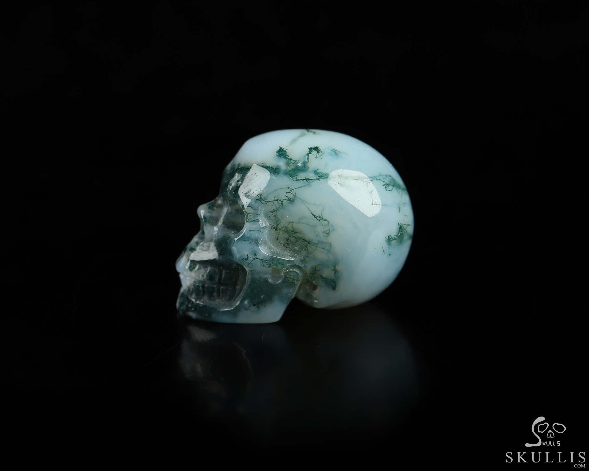 0.7" Green Moss Agate Hand Carved Crystal Skull, Realistic, Crystal Healing