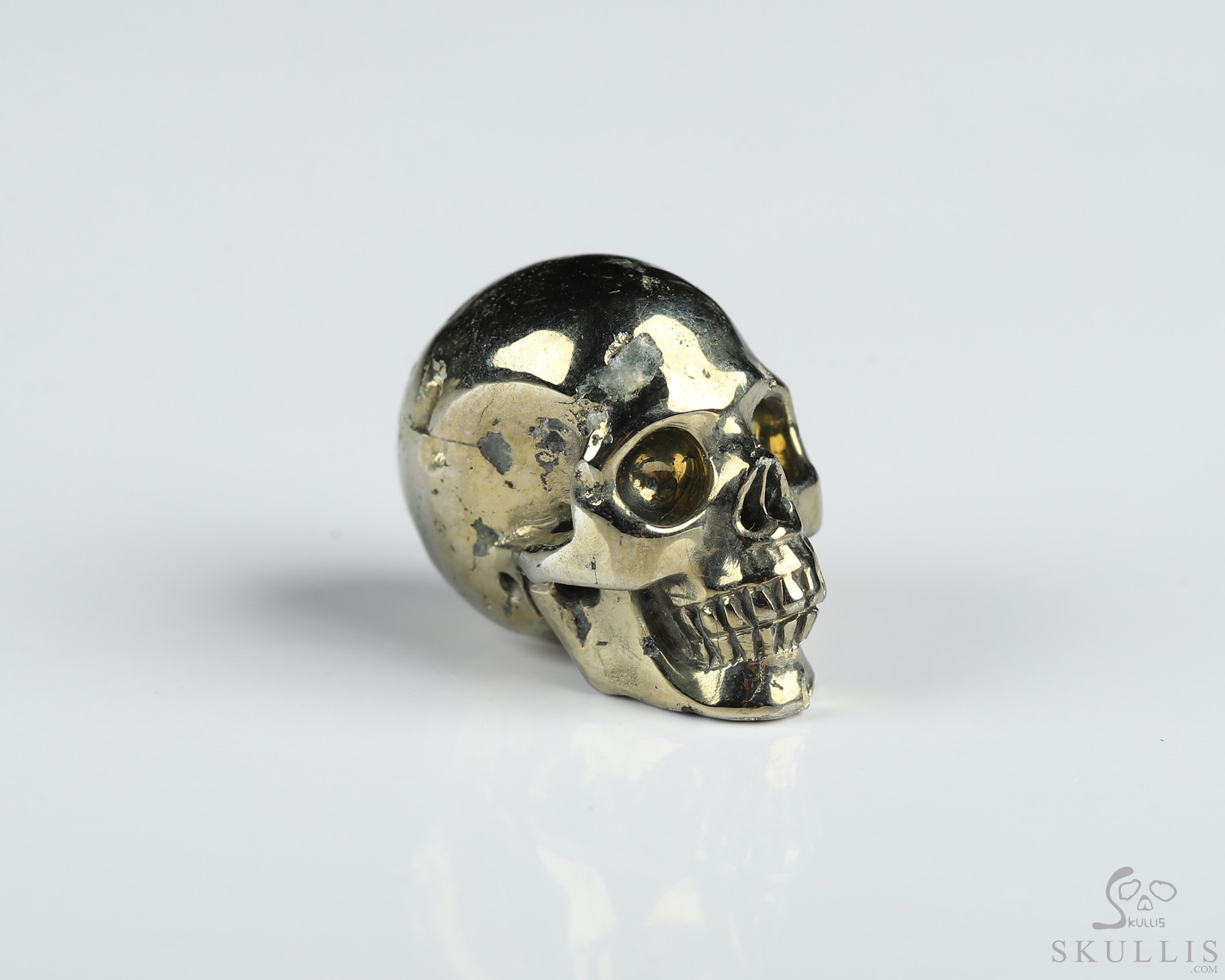0.8" Pyrite Hand Carved Crystal Skull, Realistic, Crystal Healing
