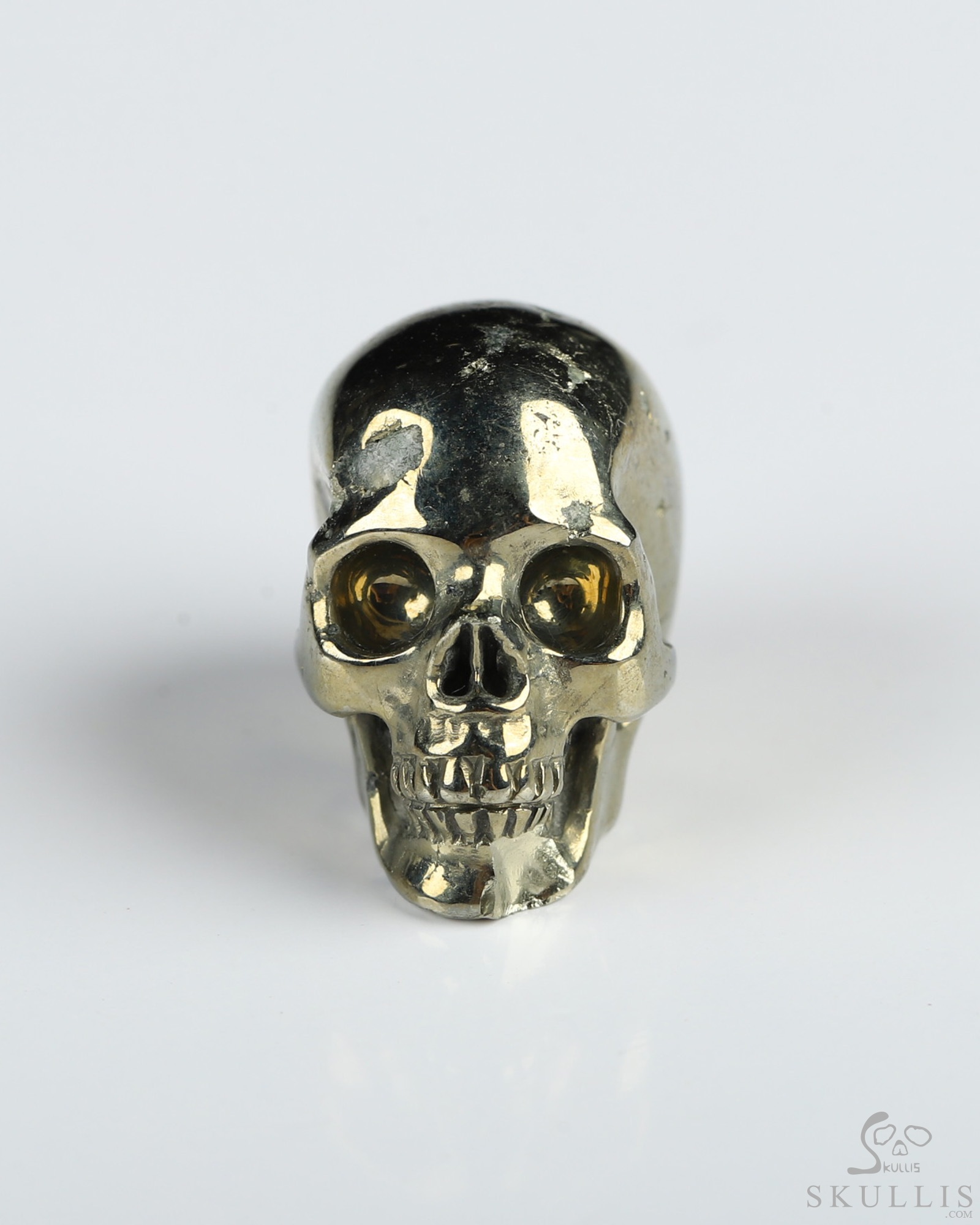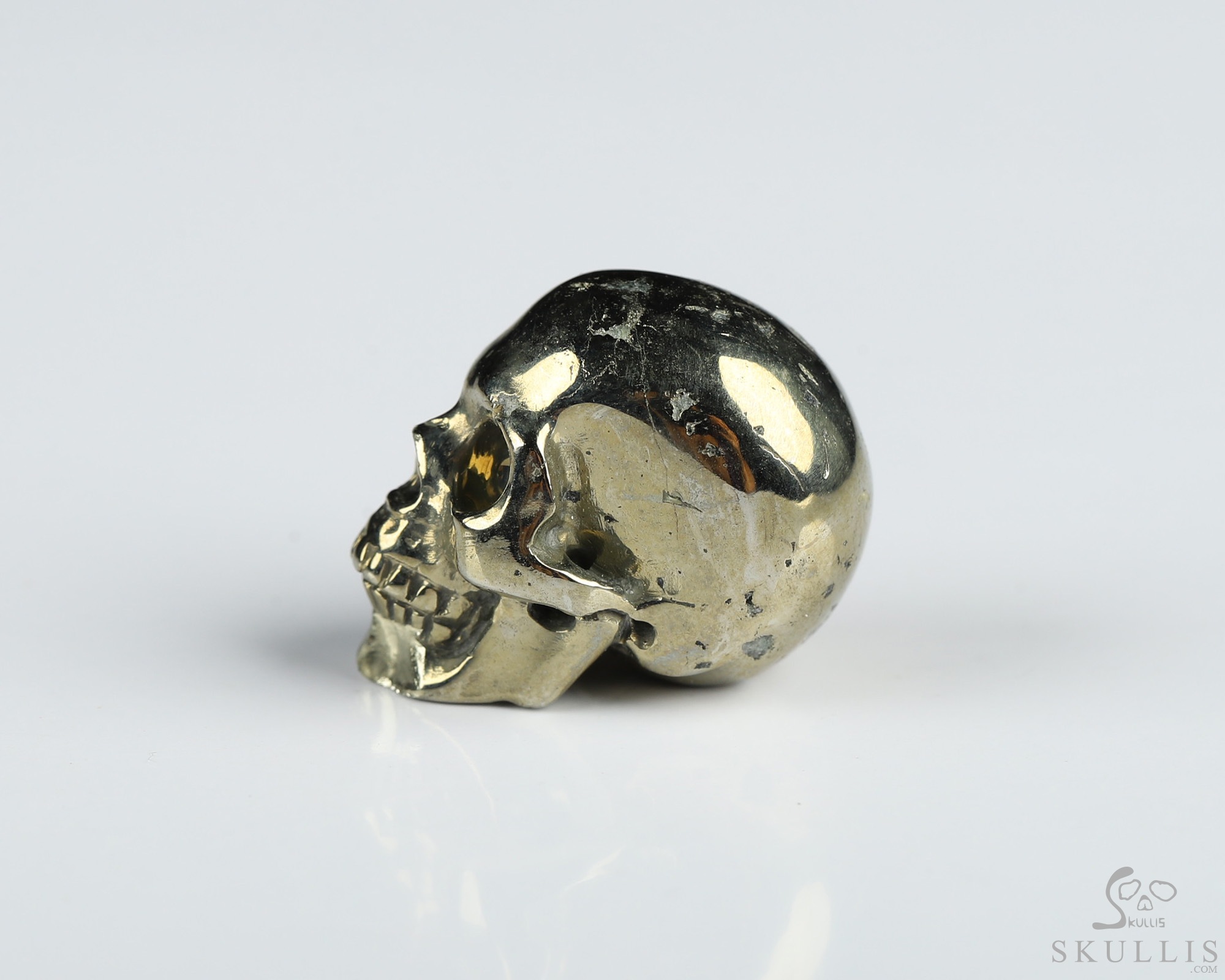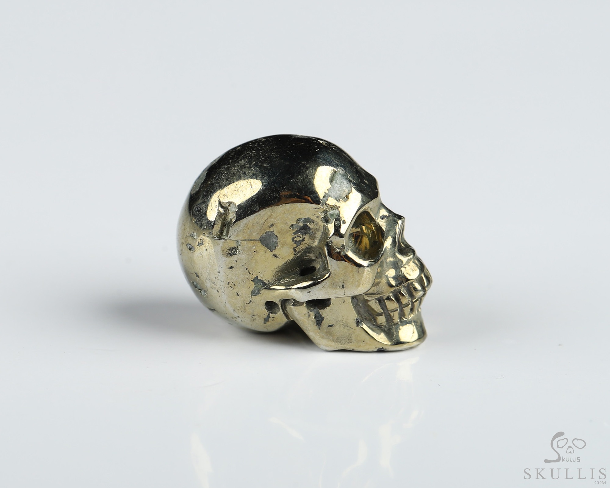 0.7" Pyrite Hand Carved Crystal Skull, Realistic, Crystal Healing