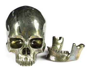 Lifesized 6.7" Pyrite Hand Carved Crystal Skull, Realistic, Crystal Healing