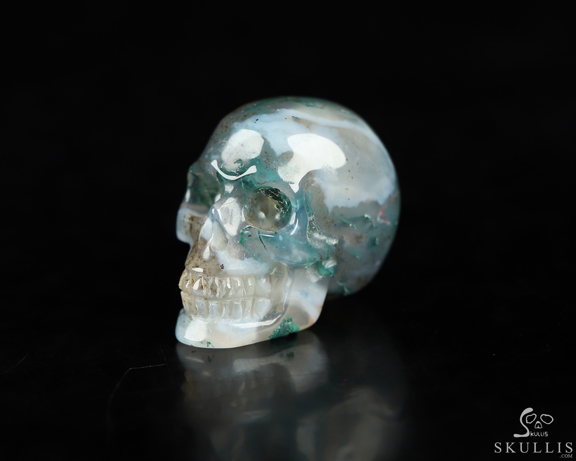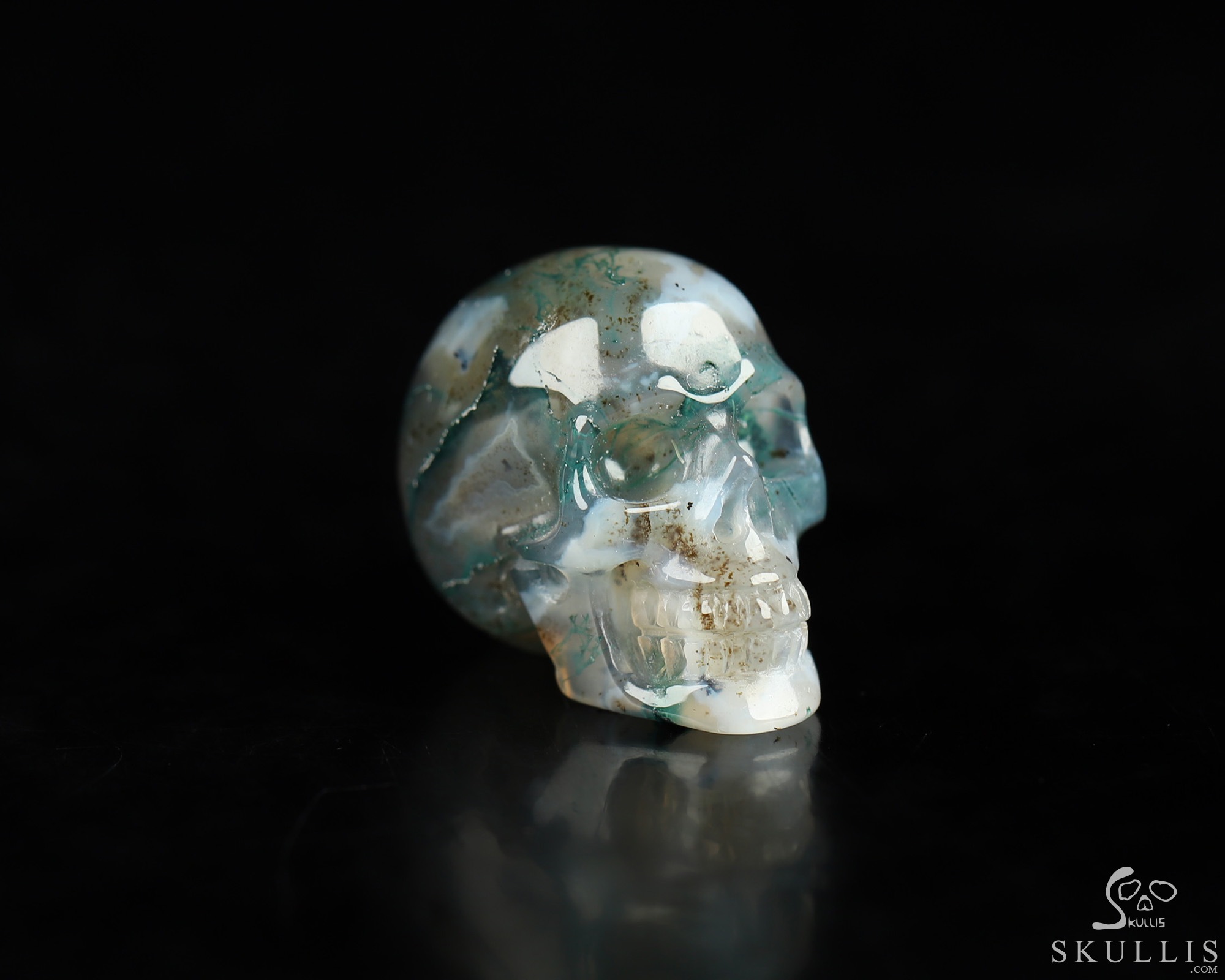 0.9" Green Moss Agate Hand Carved Crystal Skull, Realistic, Crystal Healing