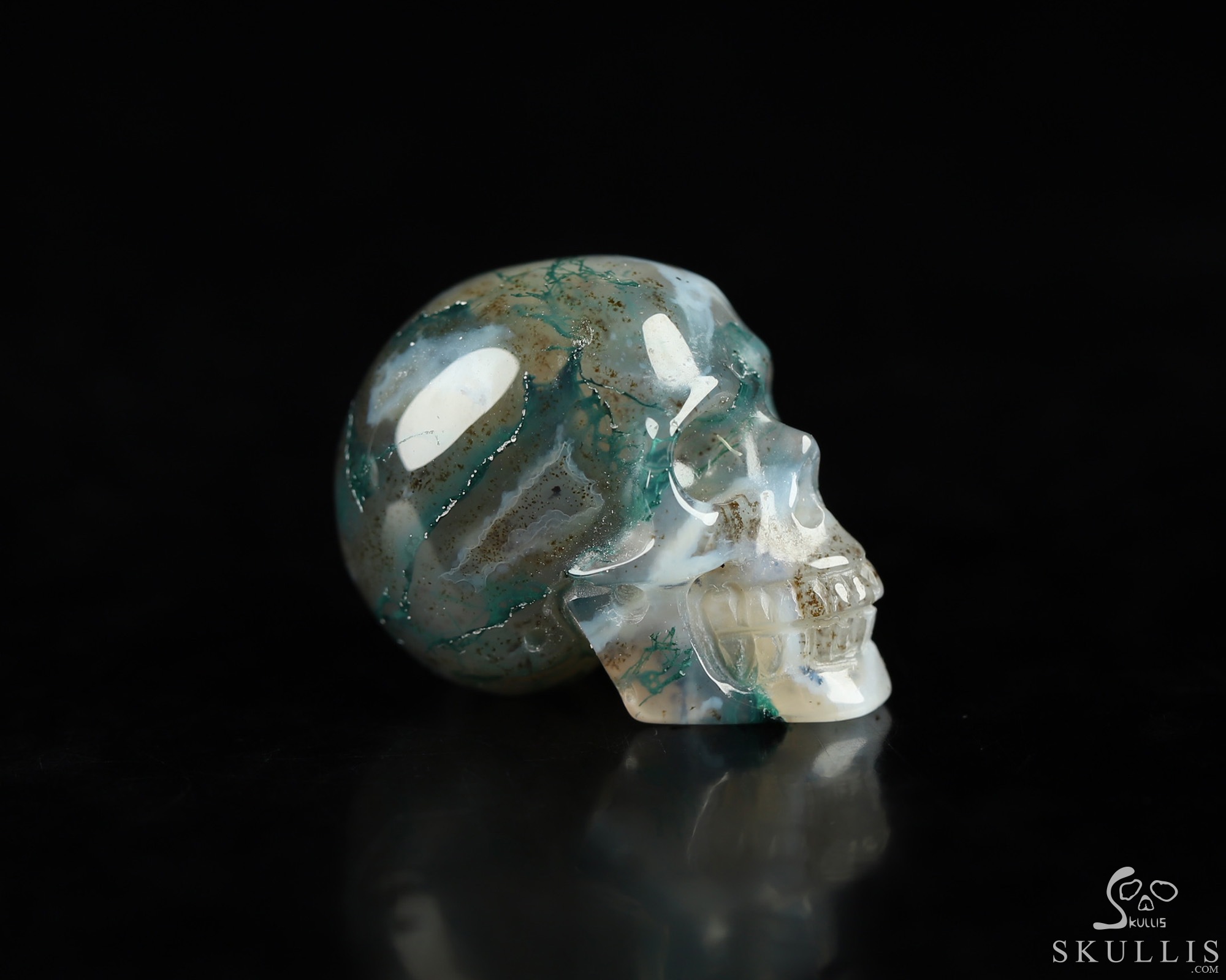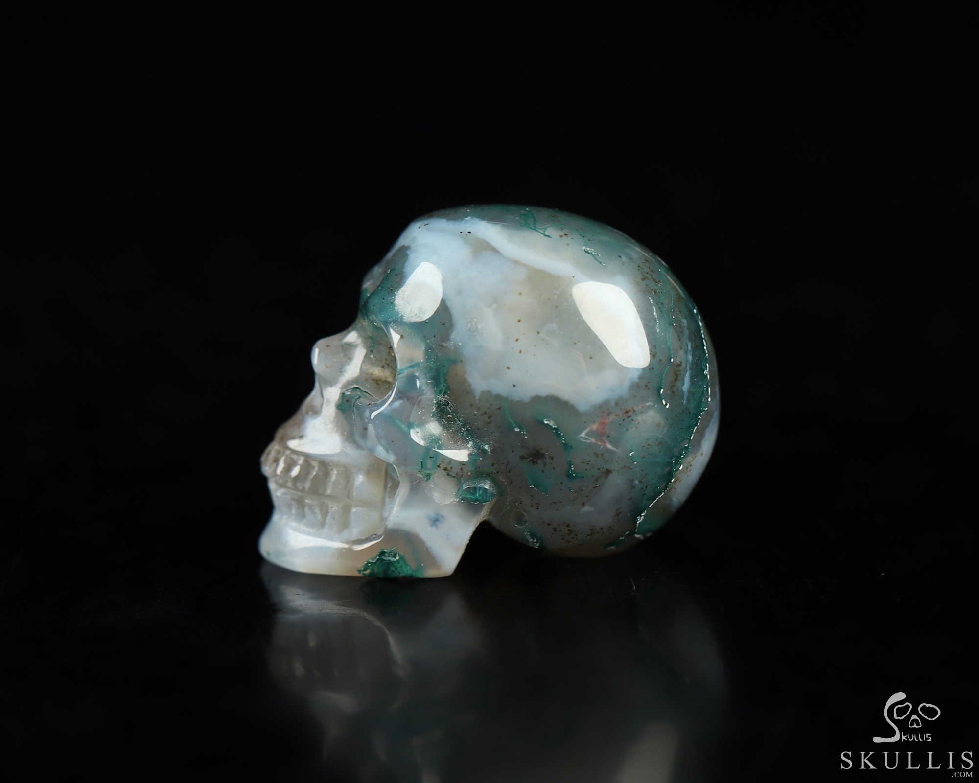 2.0" Green Moss Agate Hand Carved Crystal Skull, Realistic, Crystal Healing
