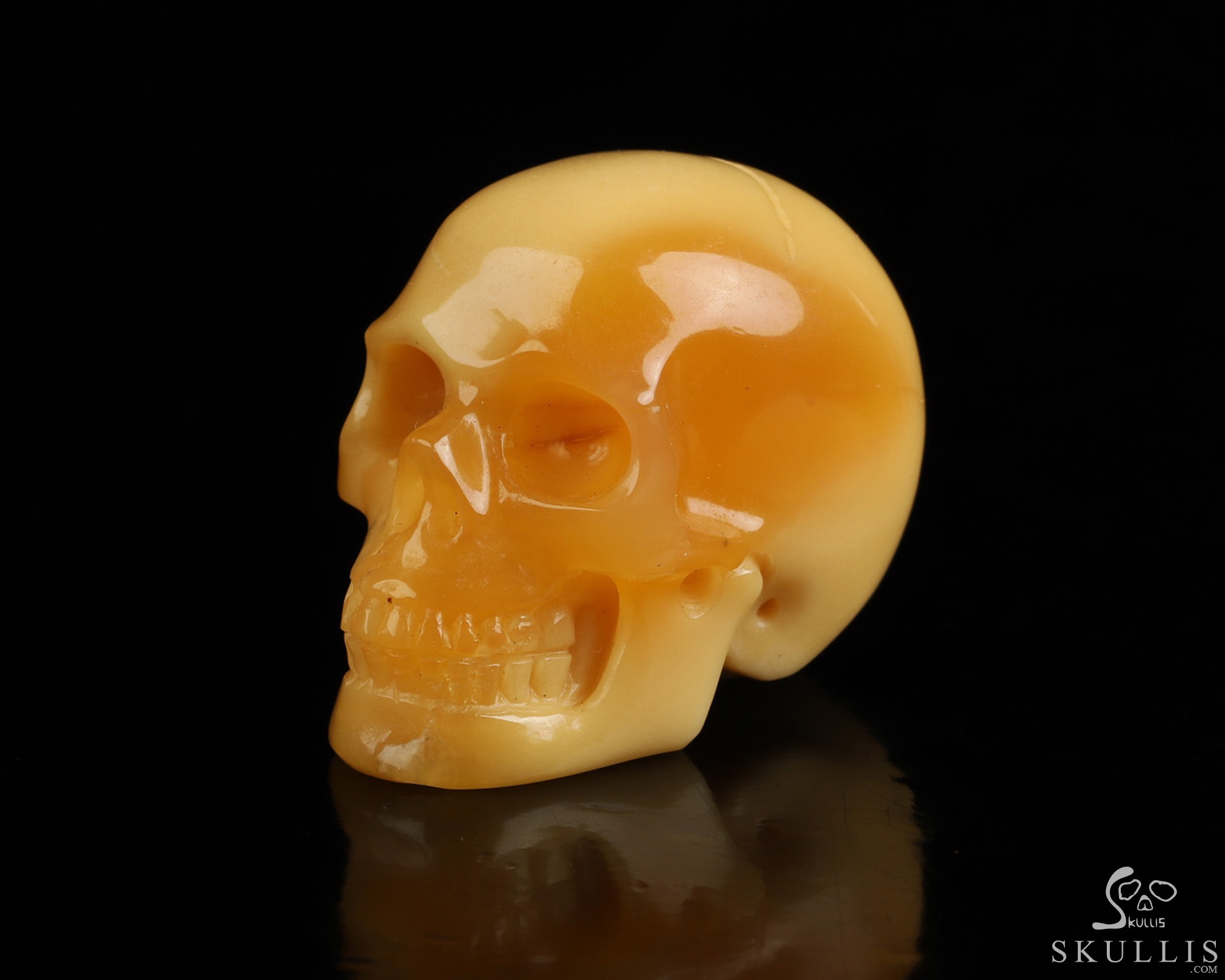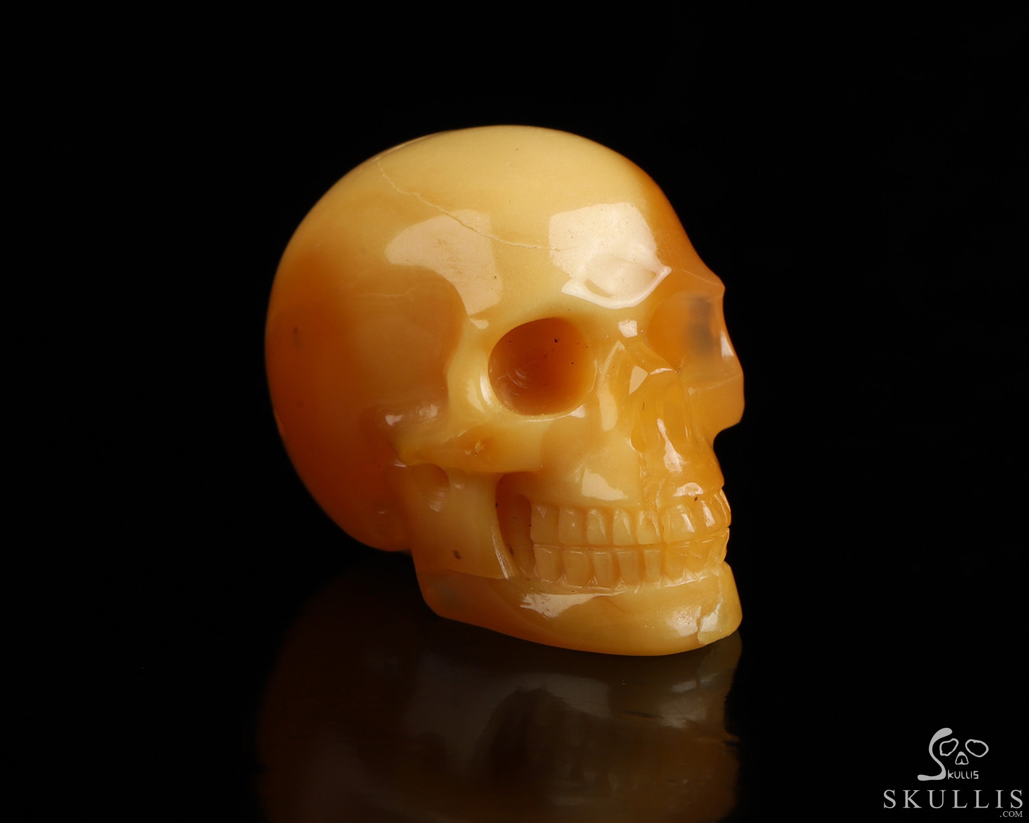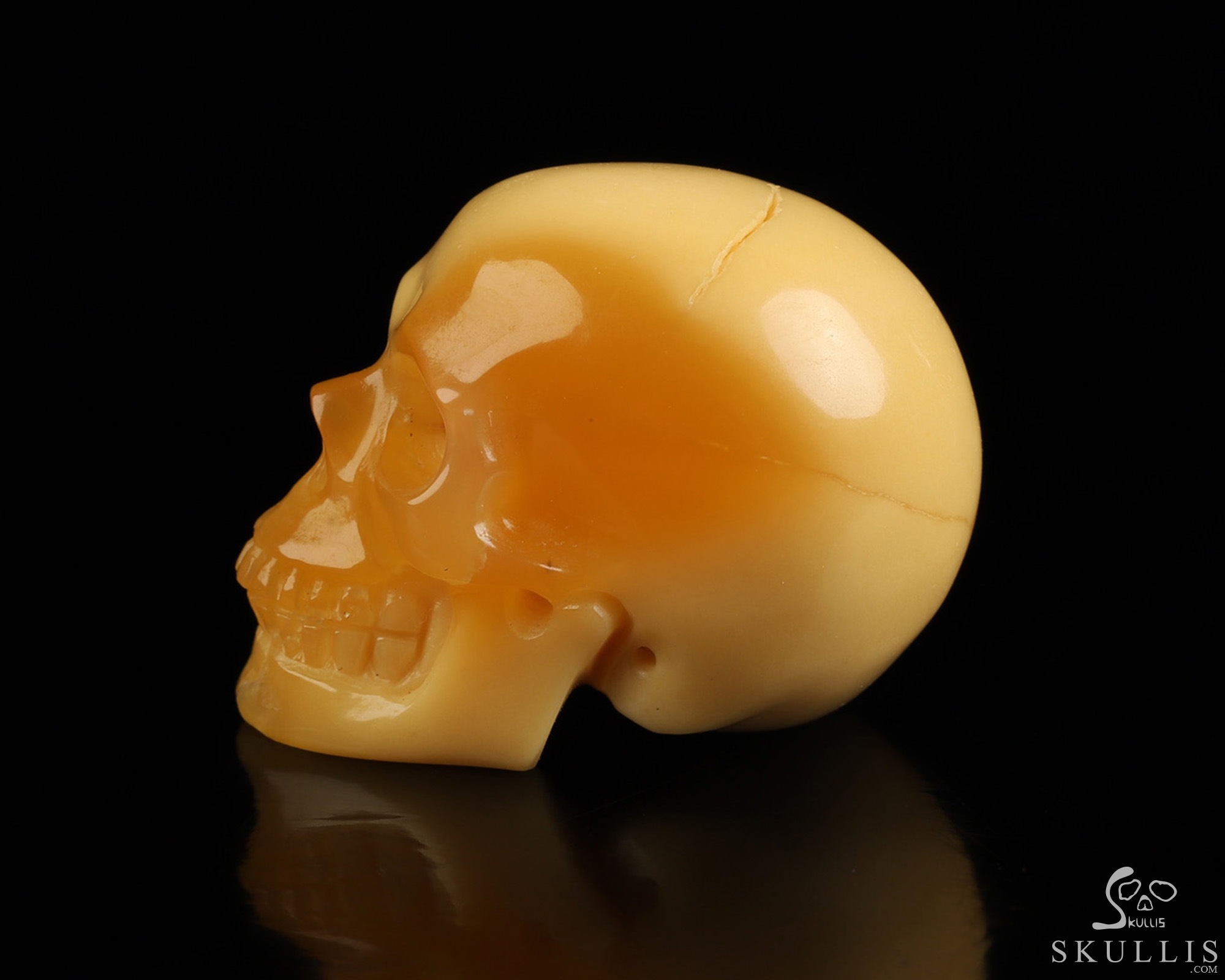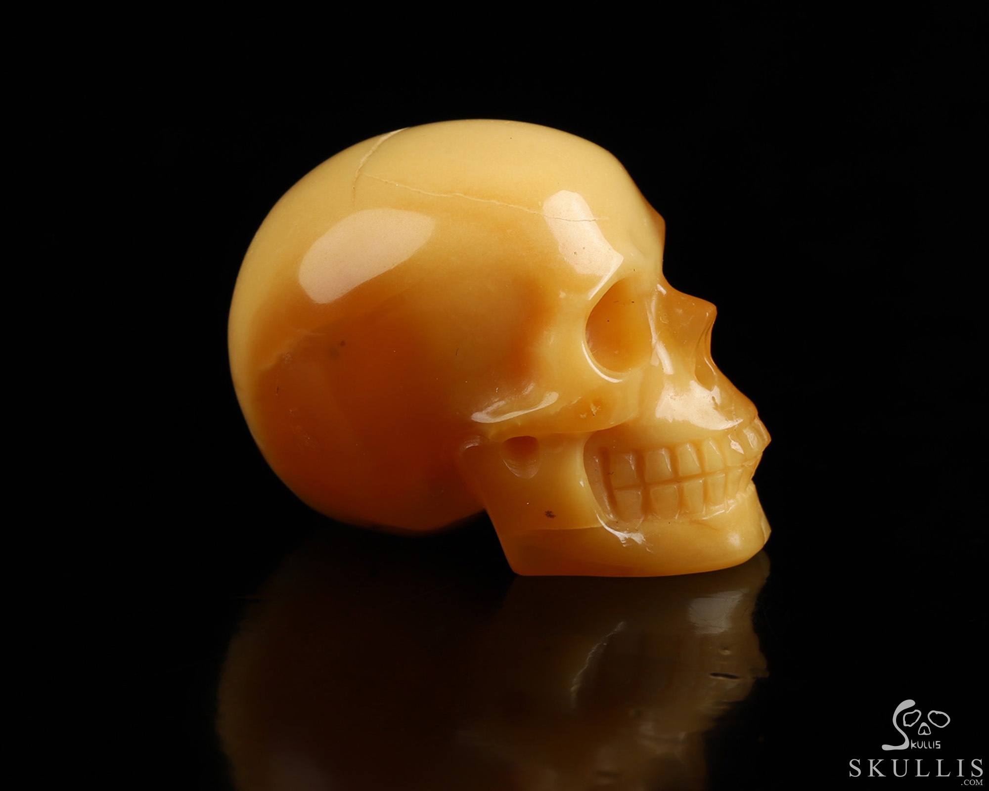 1.1" Myanmar Yellow Jade Hand Carved Crystal Skull, Realistic, Crystal Healing