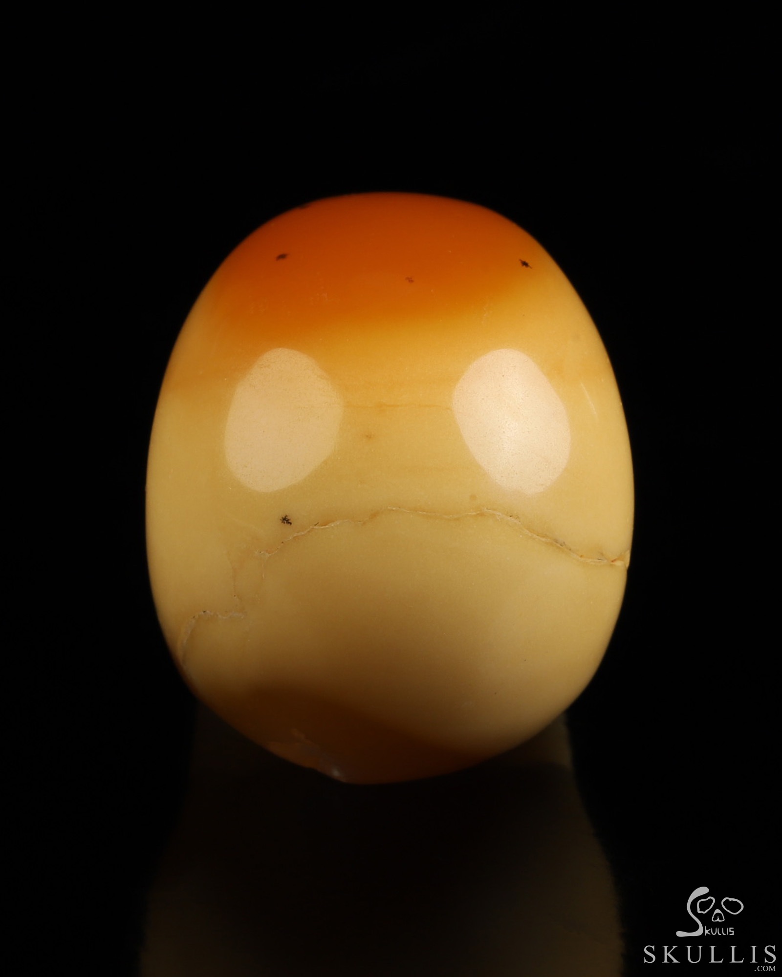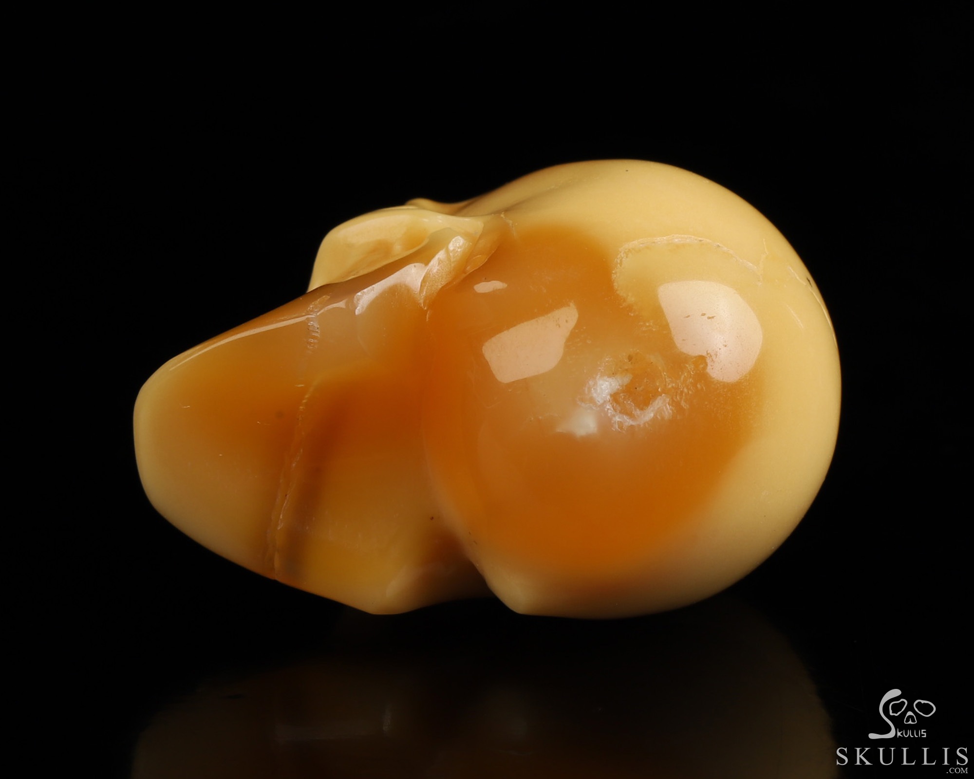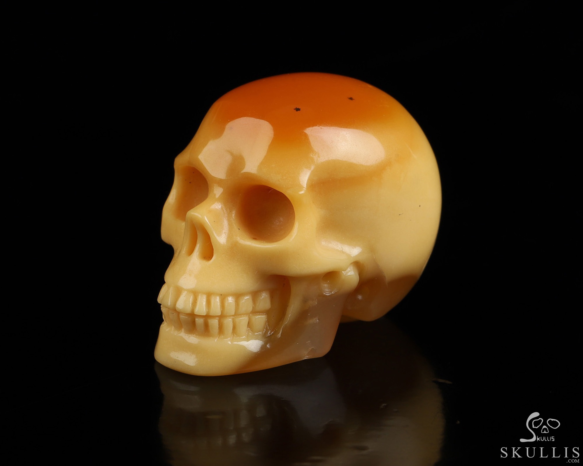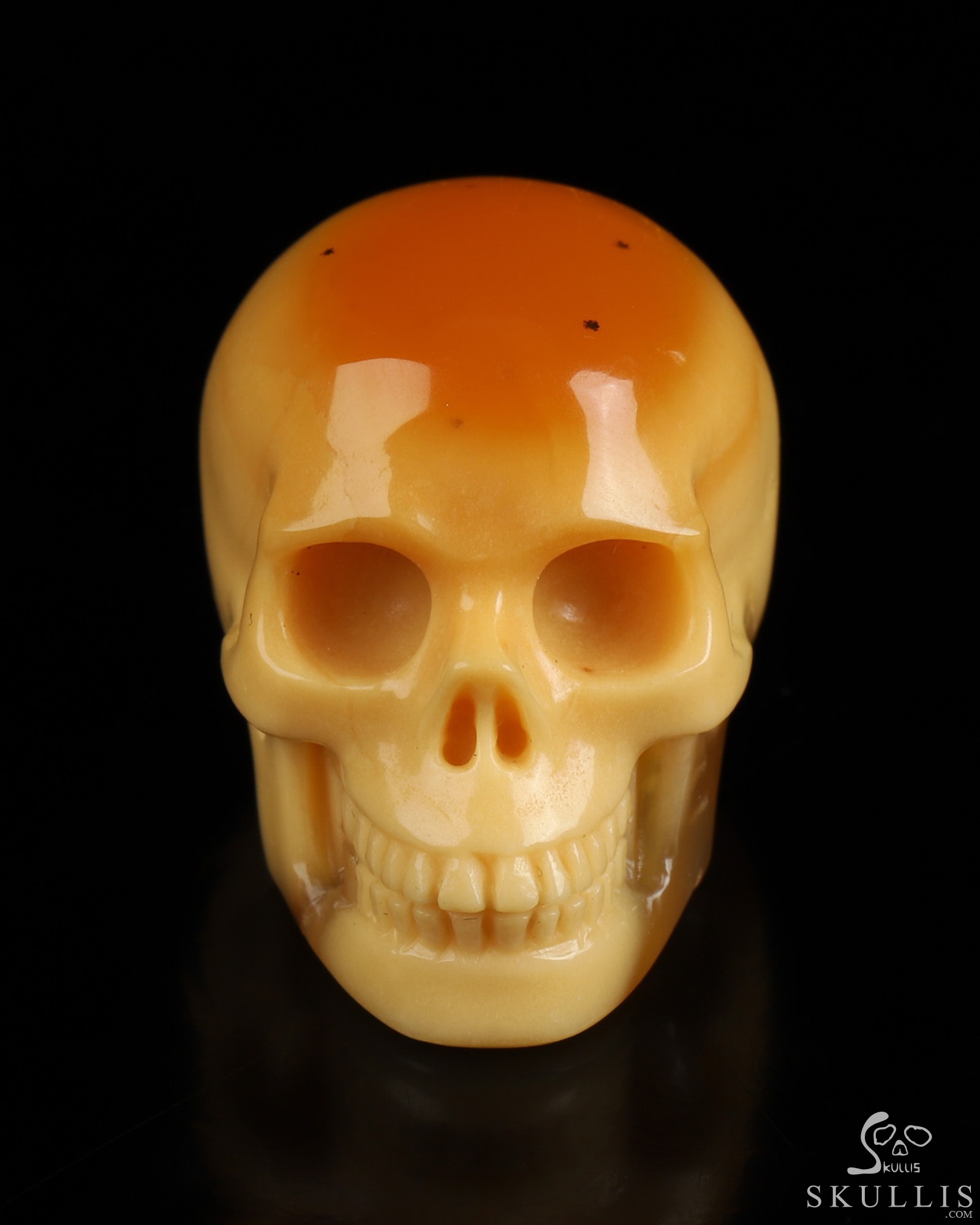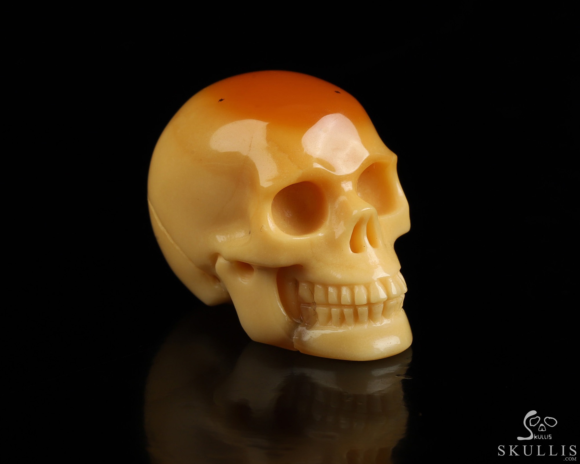 You are looking at a Myanmar Yellow Jade skull. The skull is 1.1 inches from front to back.