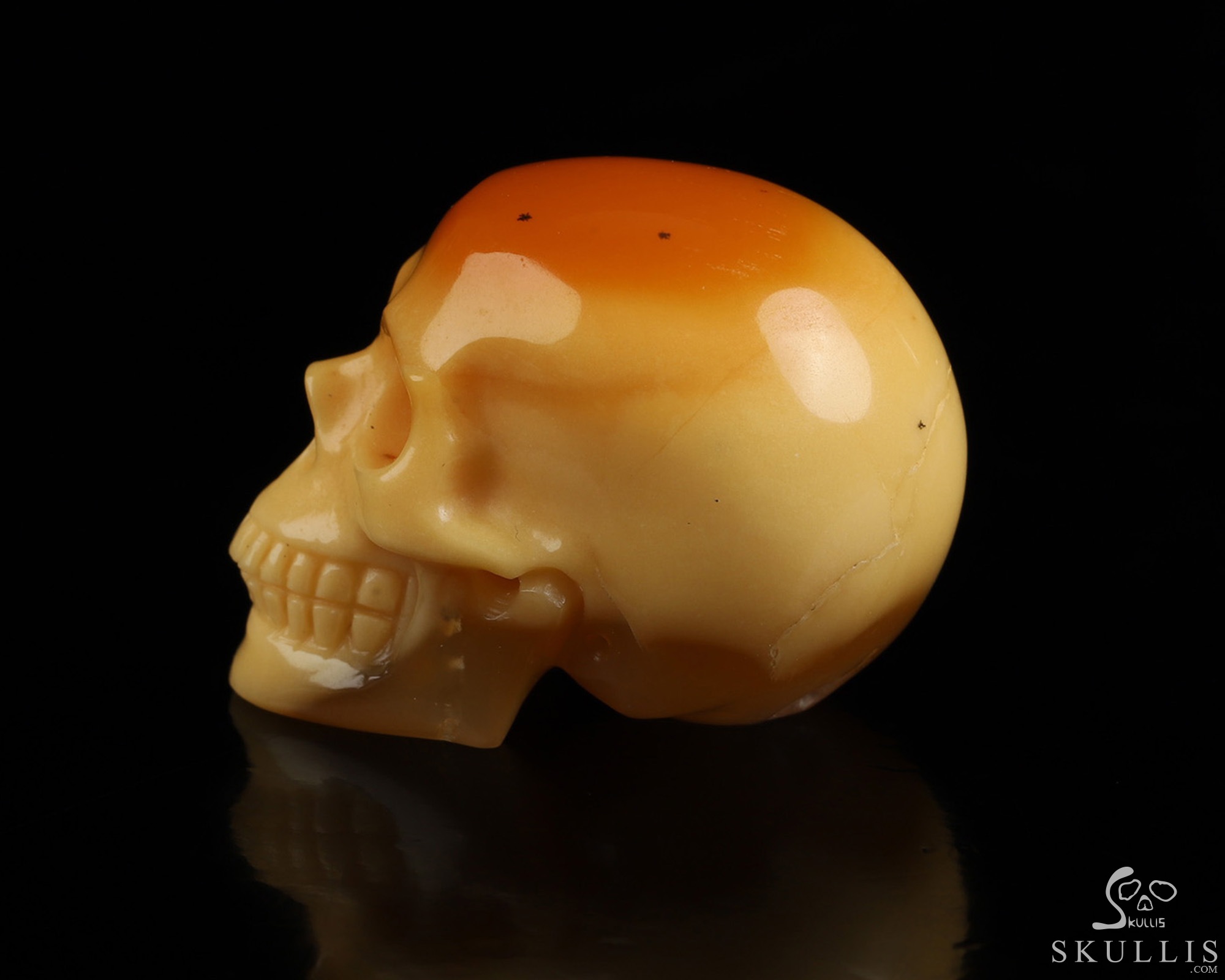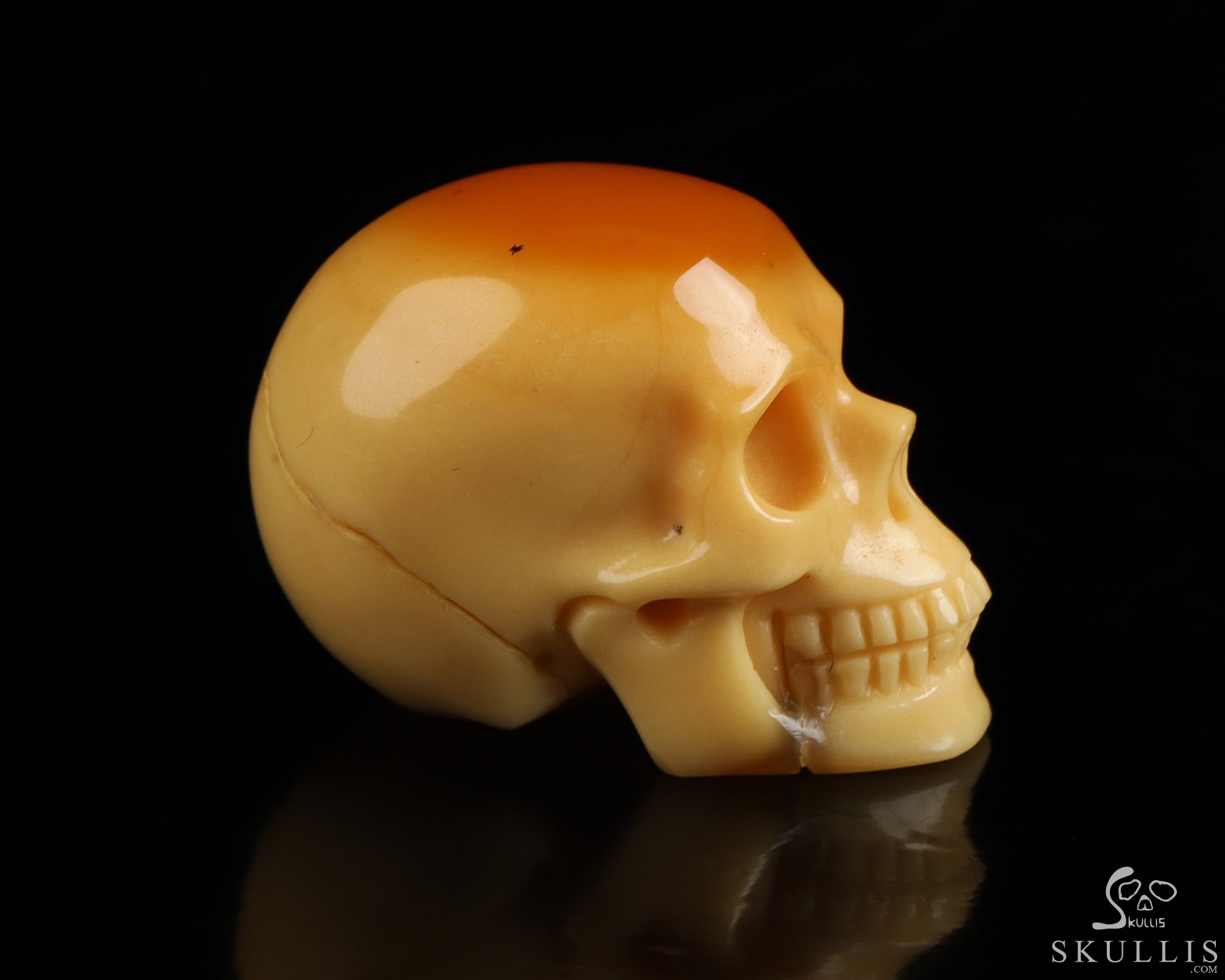 1.1" Myanmar Yellow Jade Hand Carved Crystal Skull, Realistic, Crystal Healing