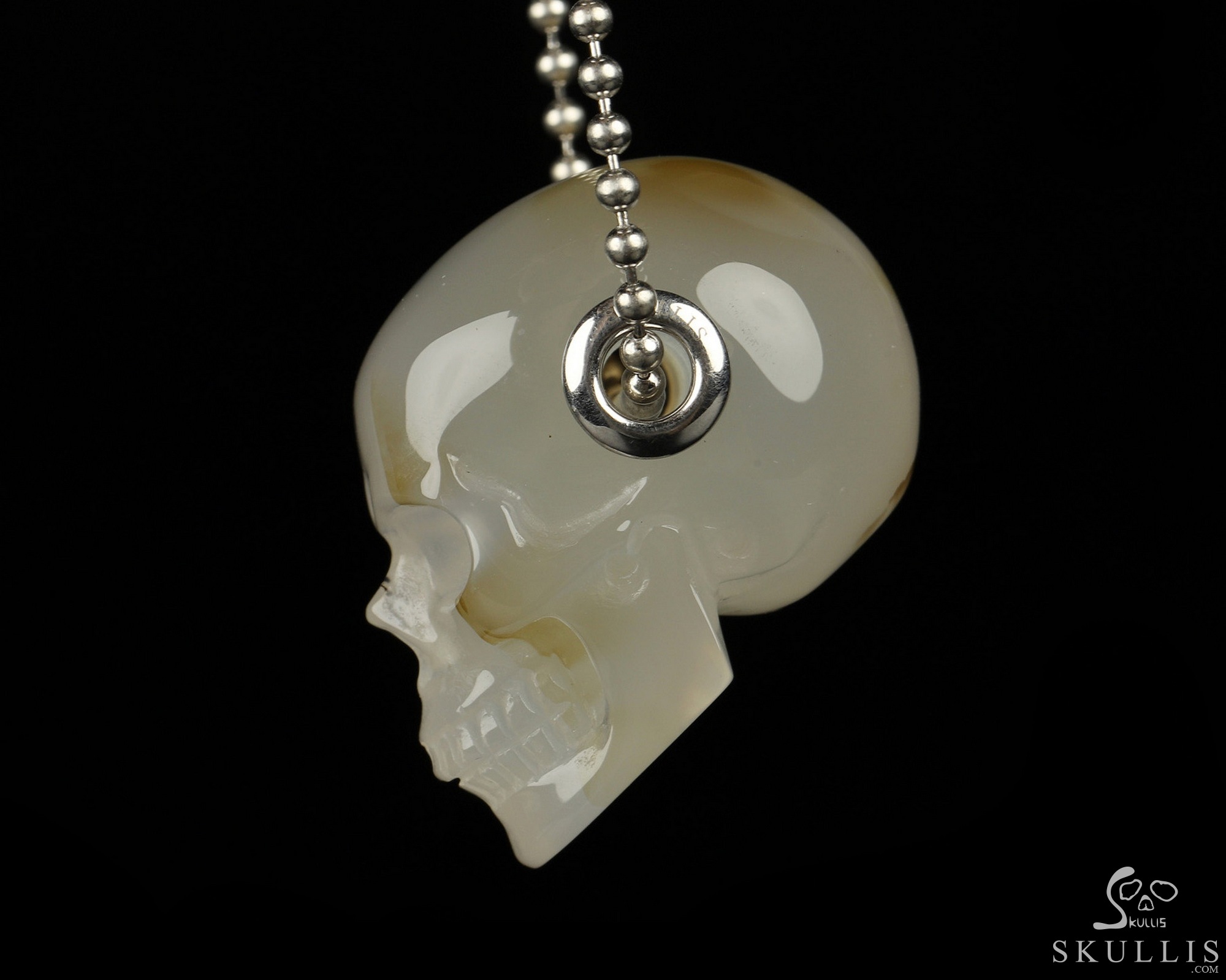 Necklace of 2.3" Agate Hand Carved Crystal Skull Pendant, Skull Jewelry