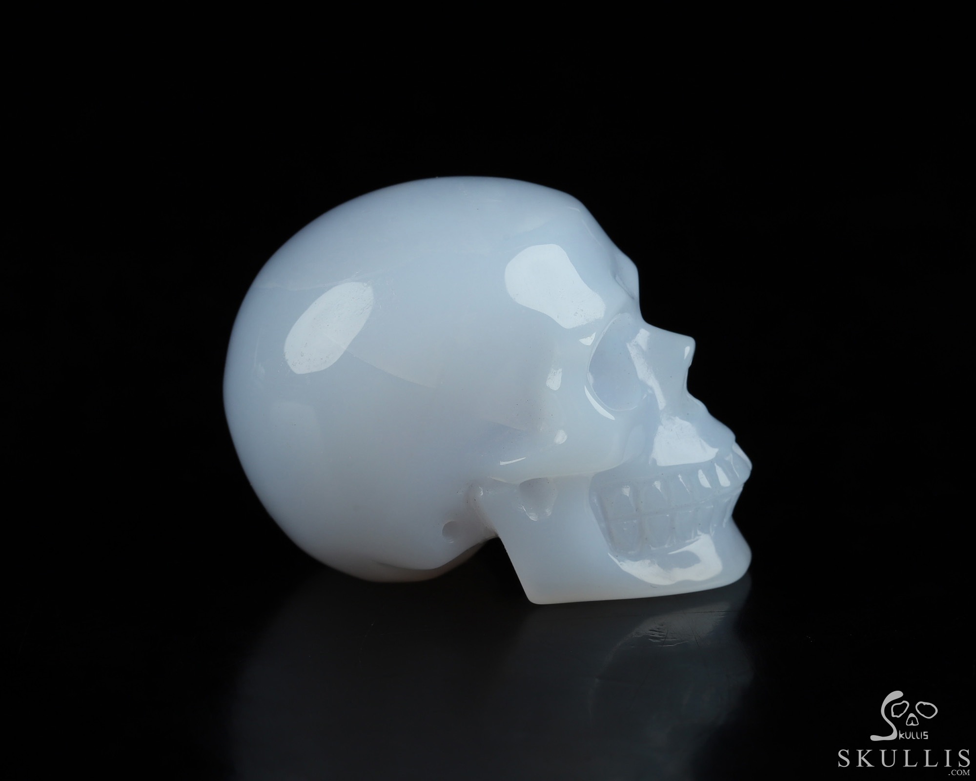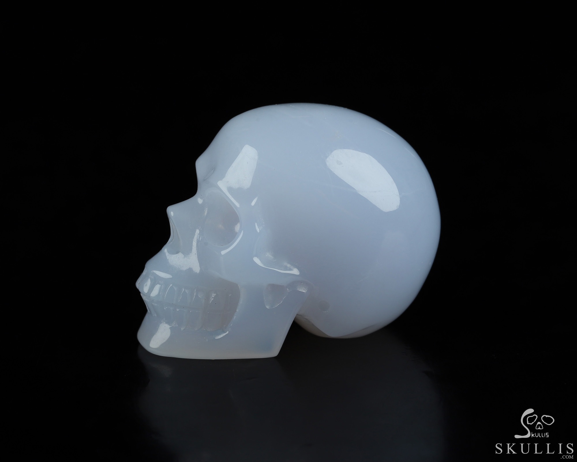 3.5" Blue Chalcedony Hand Carved Crystal Skull, Super Realistic, Crystal Healing