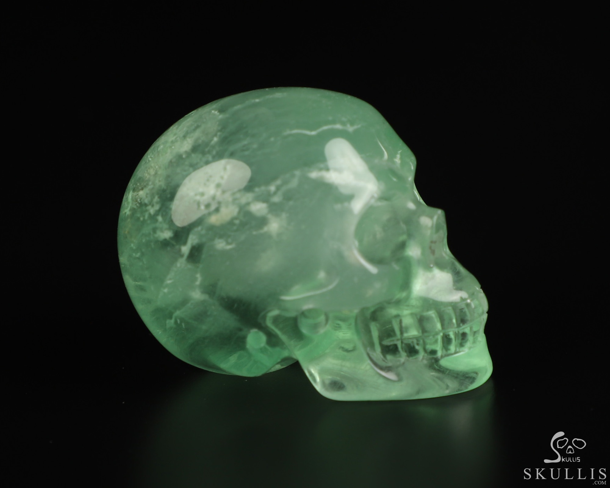 1.3" Fluorite Hand Carved Crystal Skull, Realistic, Crystal Healing