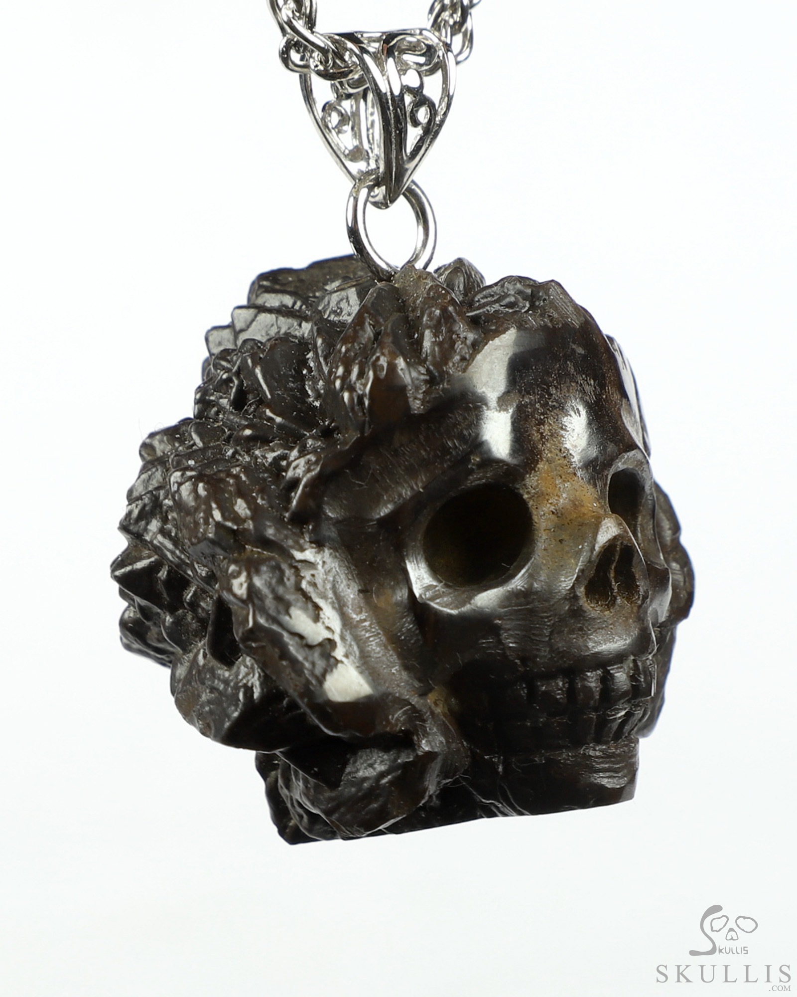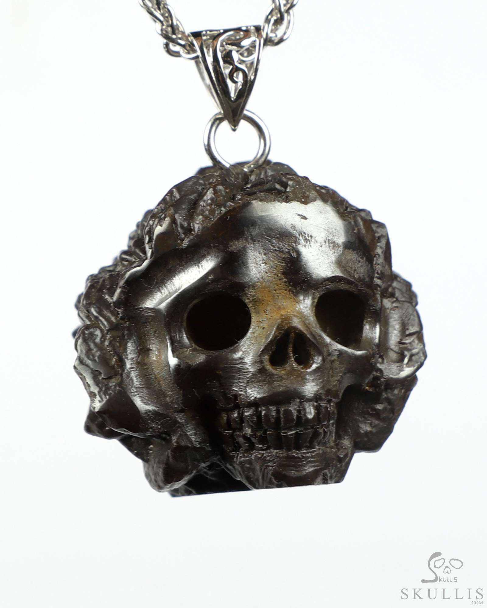 1.3" Limonite Carved Crystal Skull Pendant, Crystal Healing
