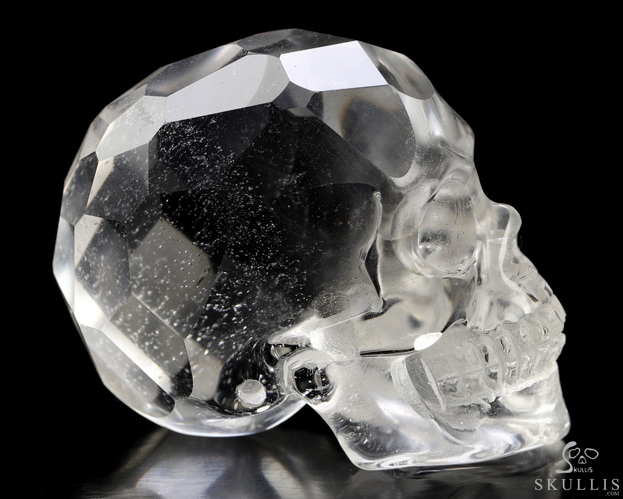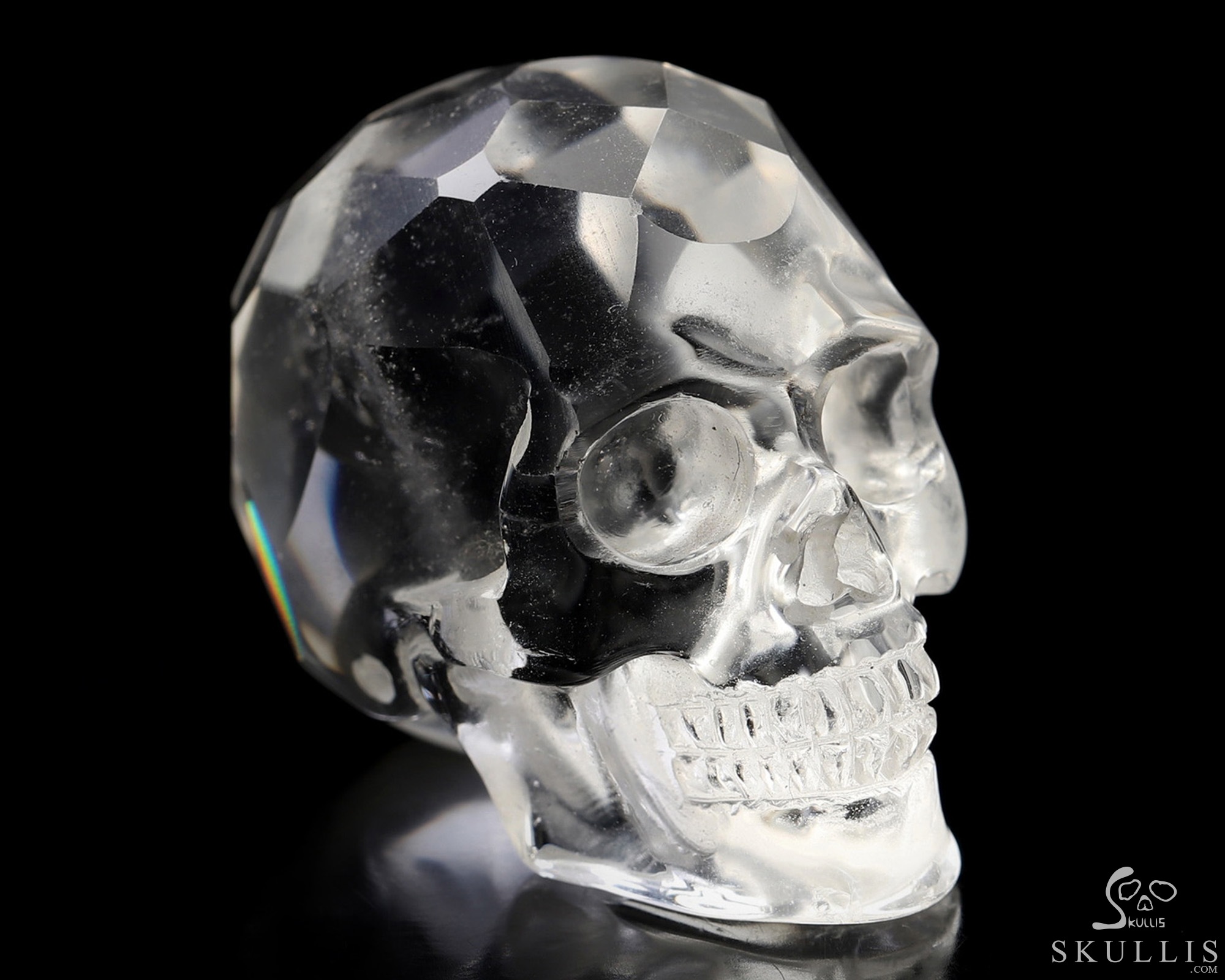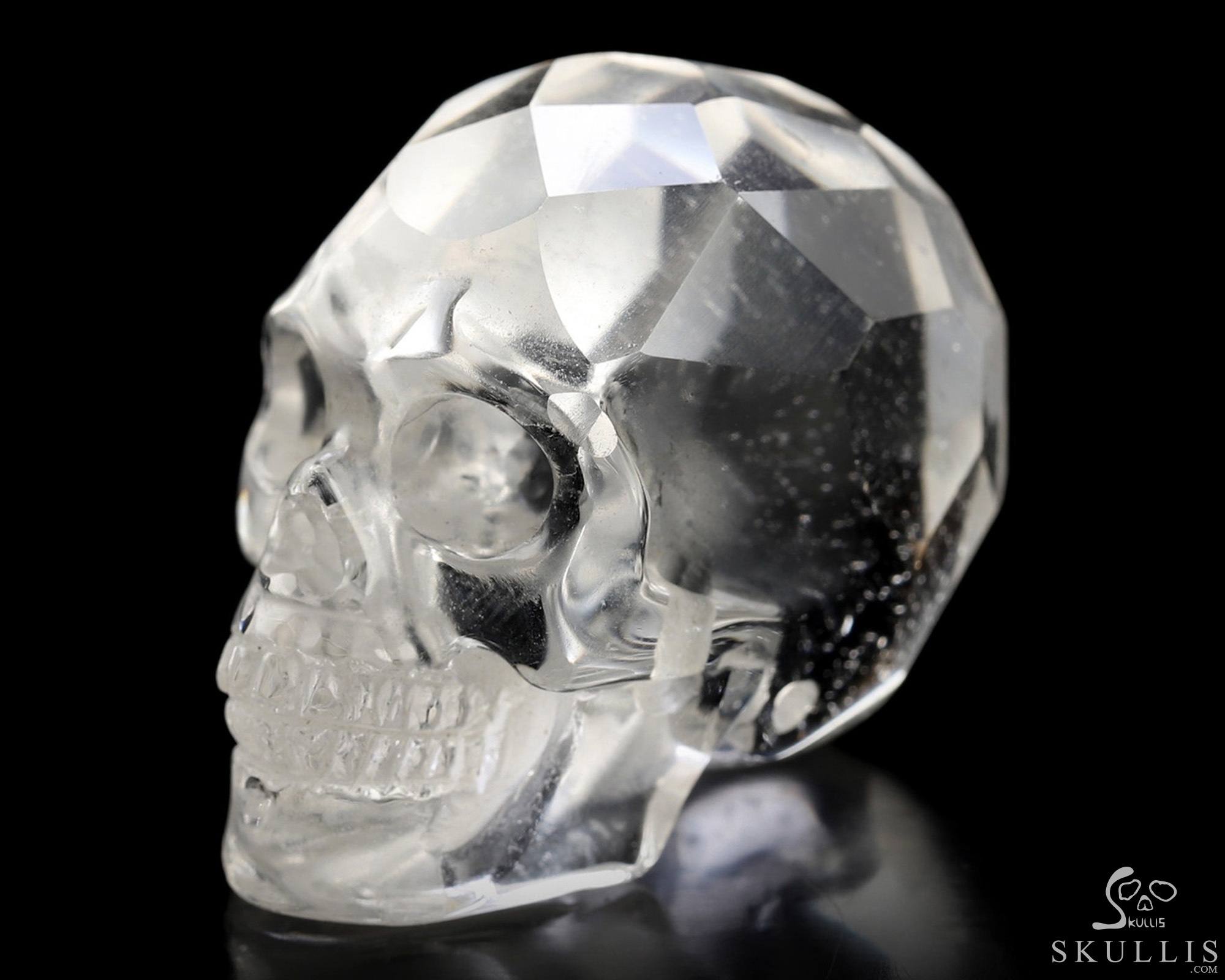 1.3" Faceted Quartz Rock Crystal Hand Carved Crystal Skull, Realistic, Crystal Healing