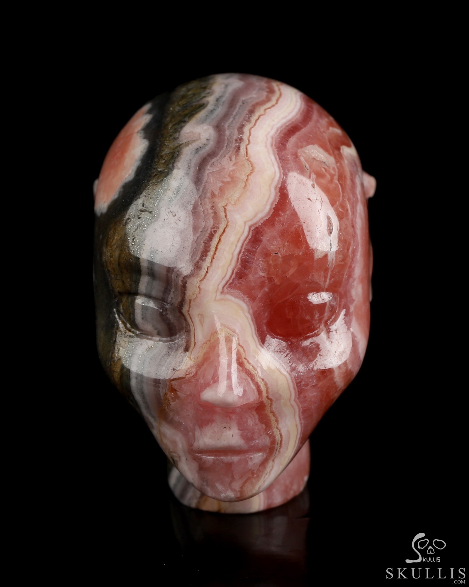 Rare Size Top Quality 5.1" Rhodochrosite Hand Carved Crystal Skull, Super Realistic, Crystal Healing