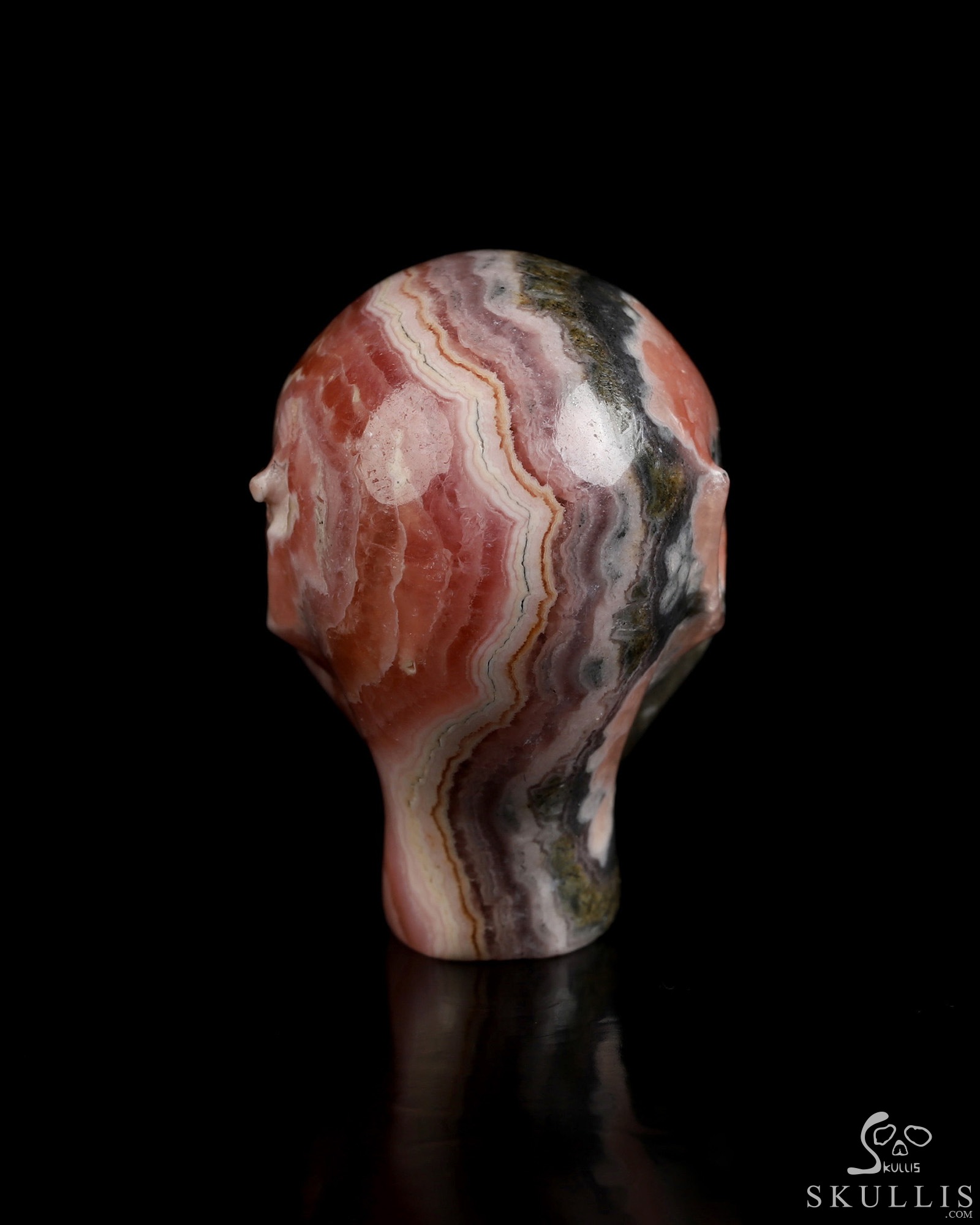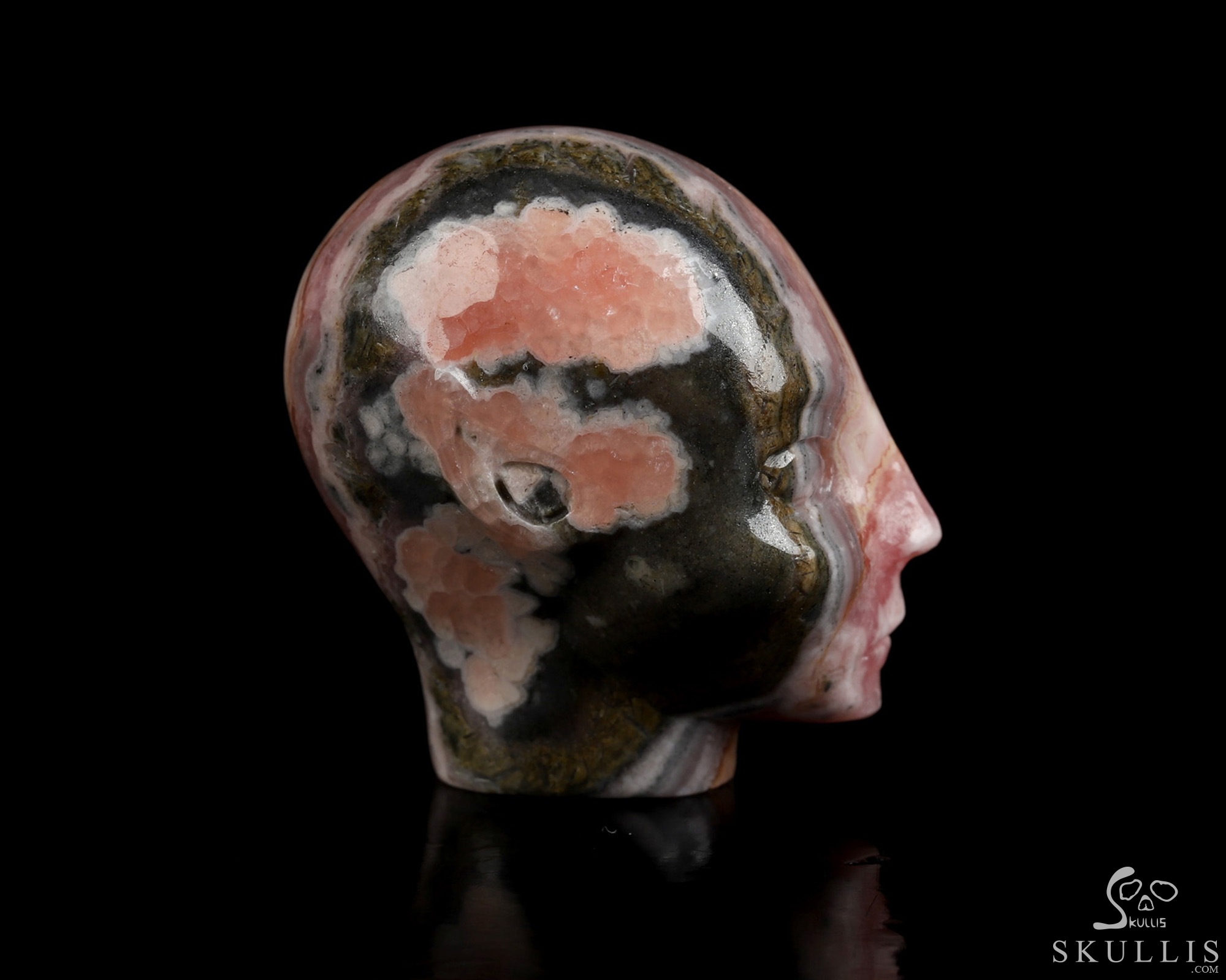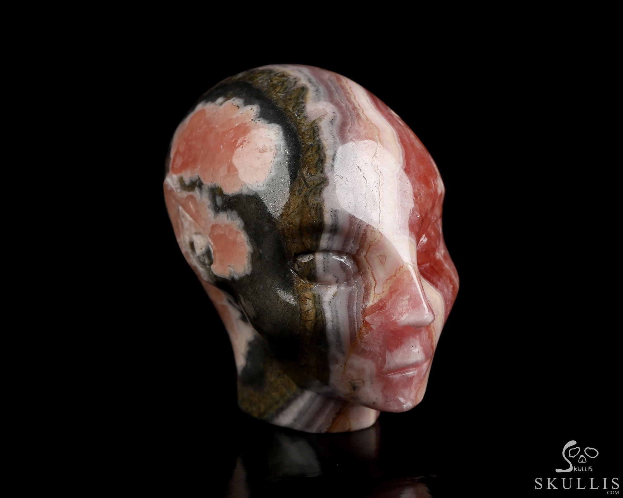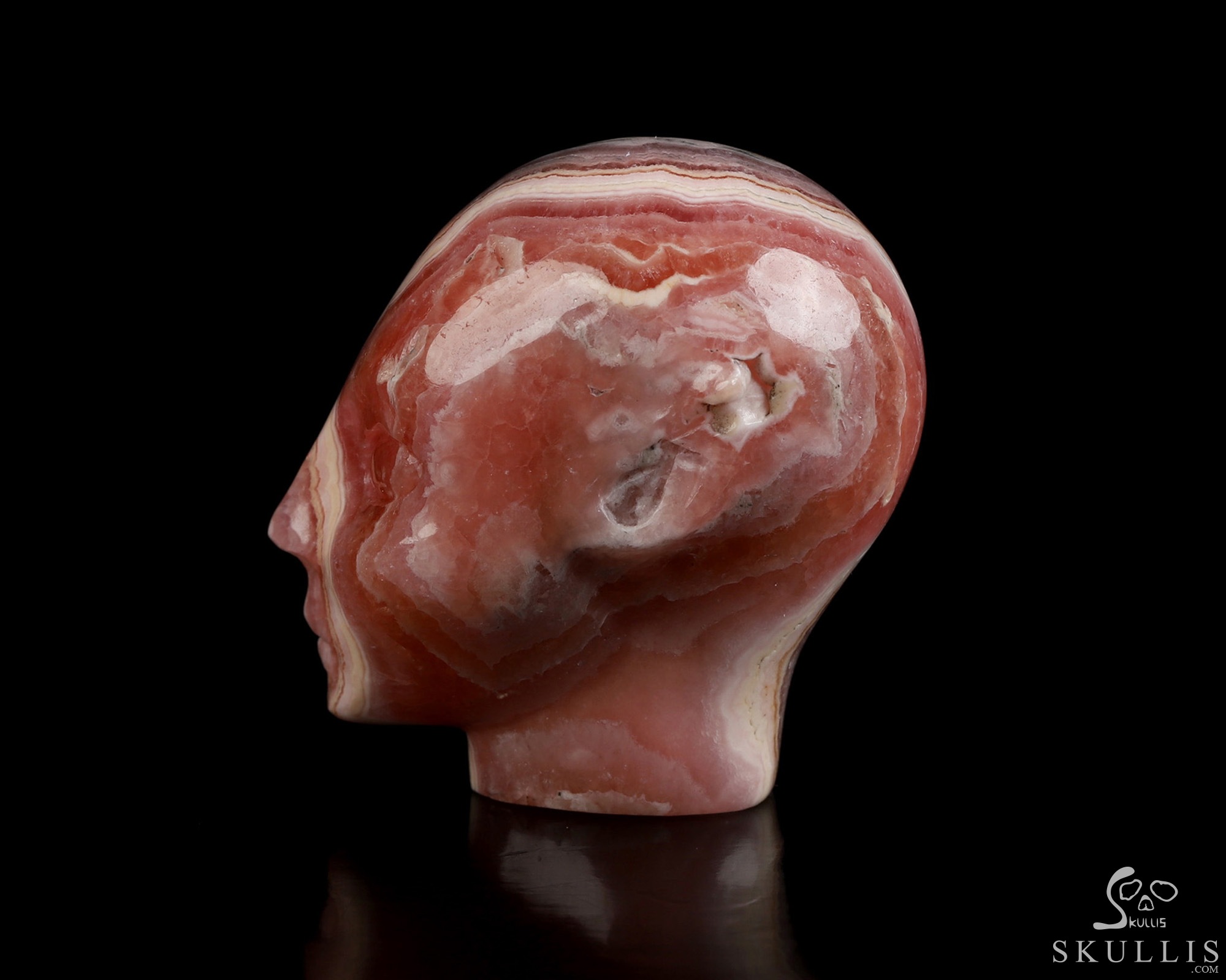 Gemstone 3.4" Rhodochrosite Carved Crystal Skull, Super Realistic
