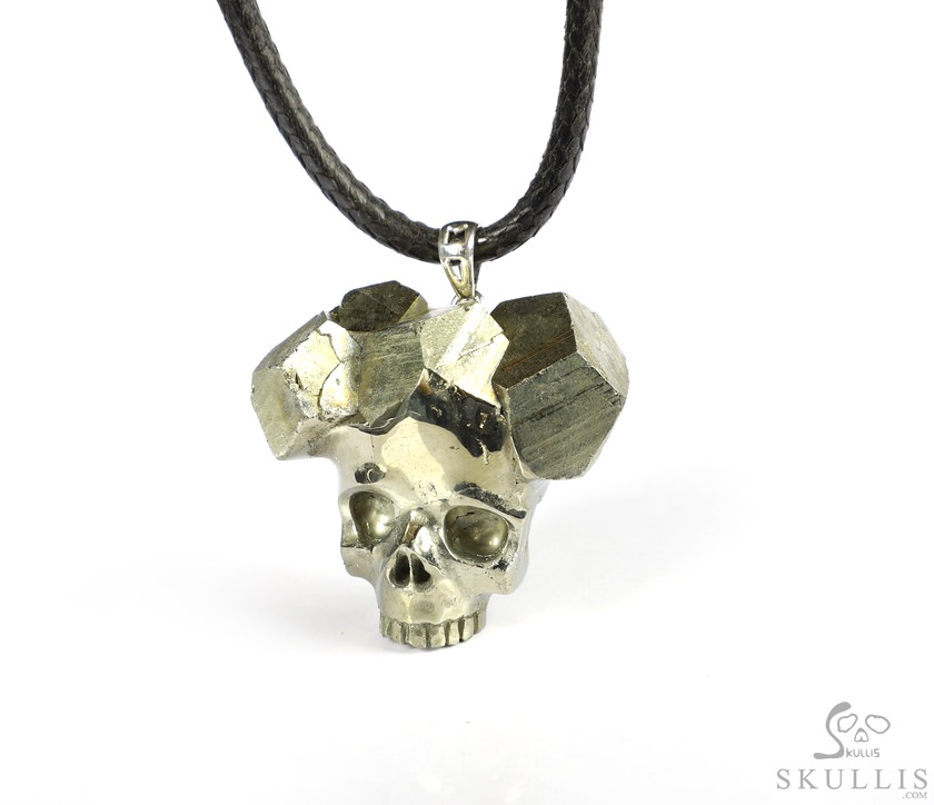 1.5" Pyrite Carved Crystal Skull Pendant, Crystal Healing