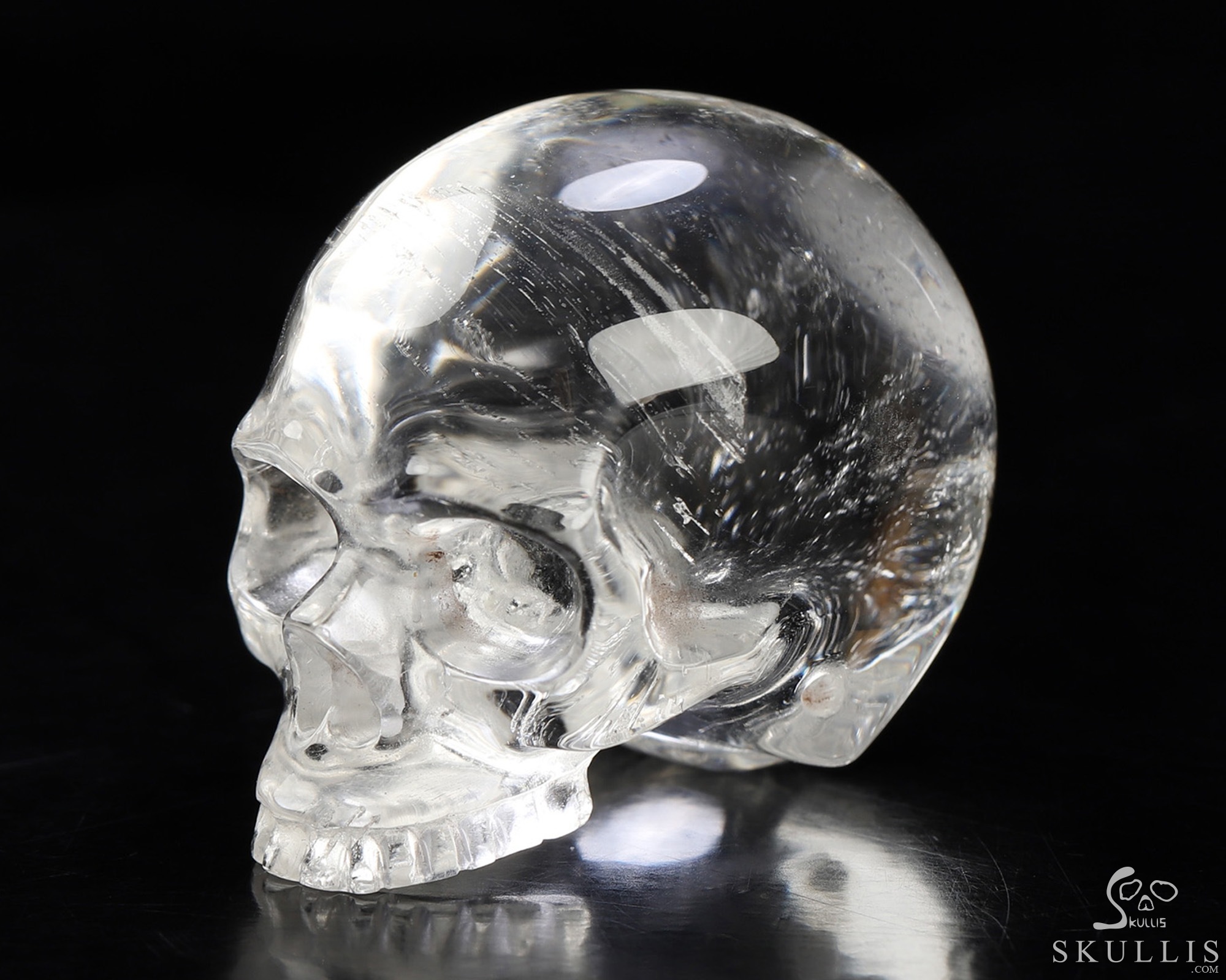 3.9" Clear Quartz Rock Crystal Hand Carved Crystal Skull, Super Realistic, Crystal Healing