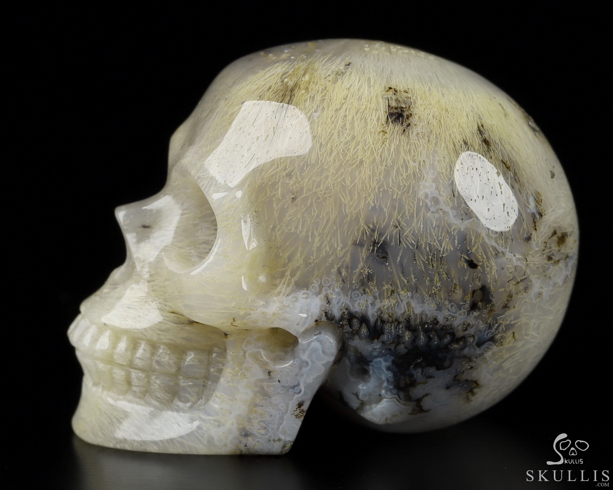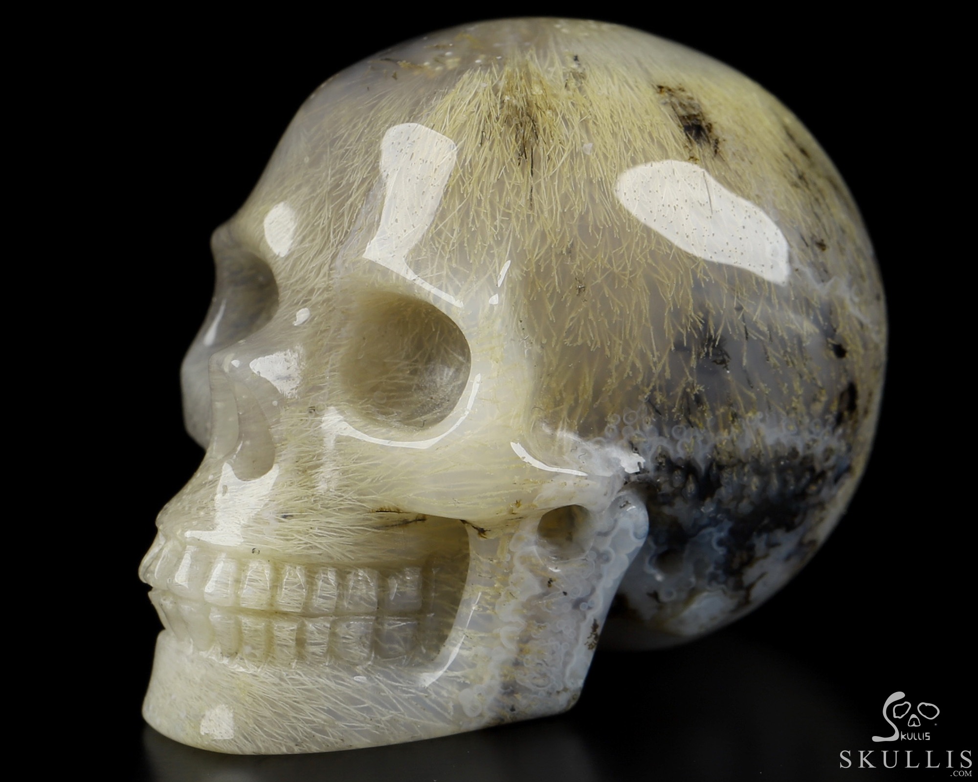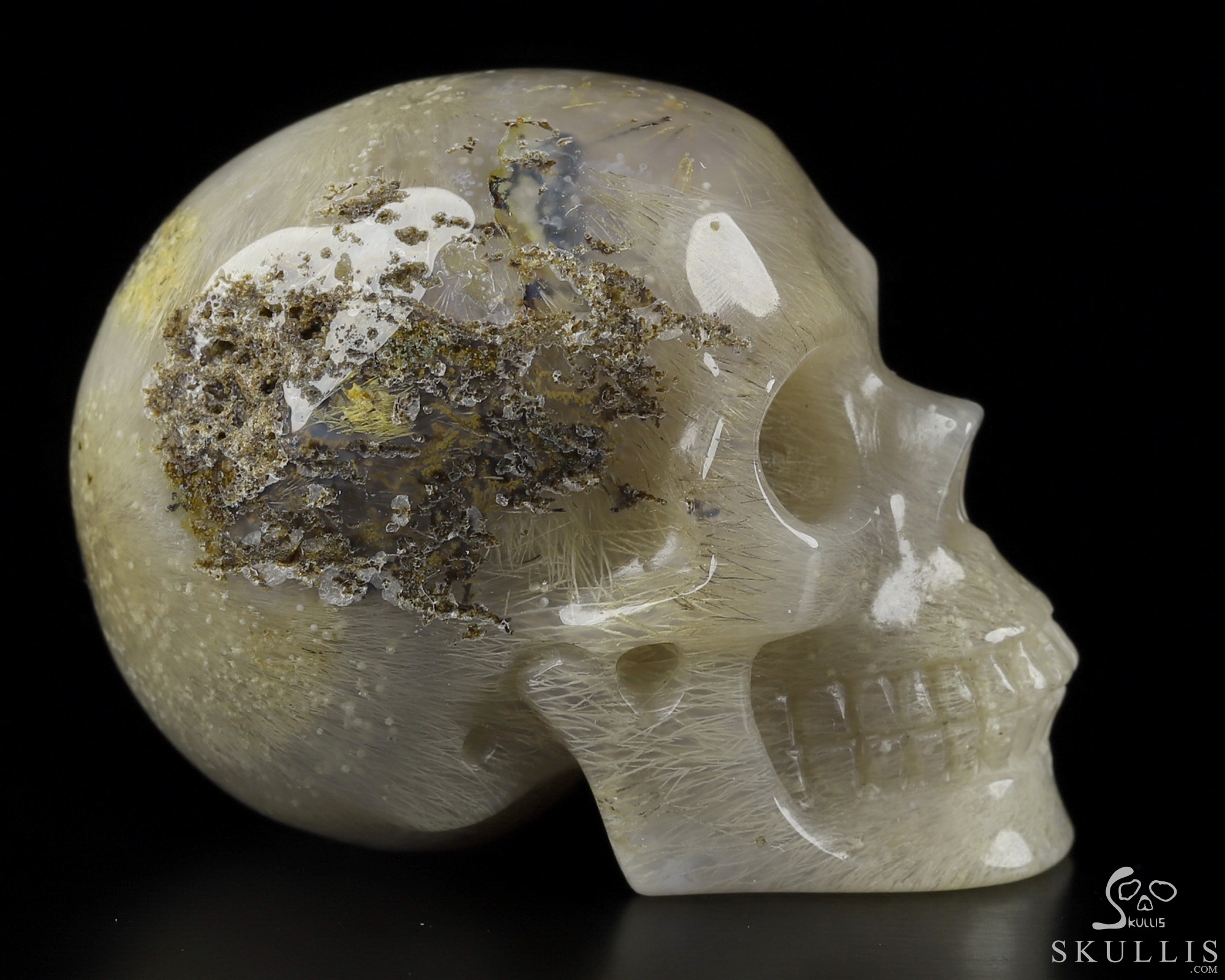 5.1" Sagenitic Japser Hand Carved Crystal Skull, Super Realistic, Crystal Healing