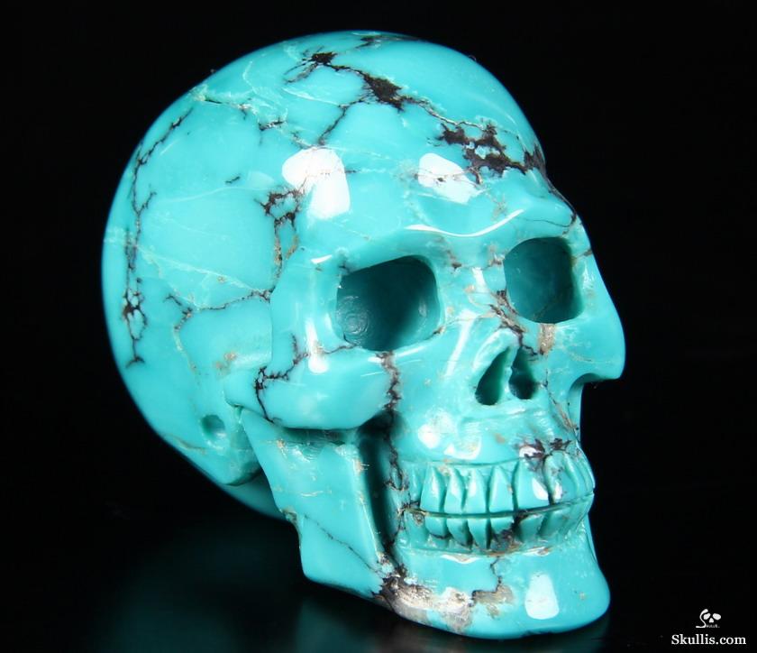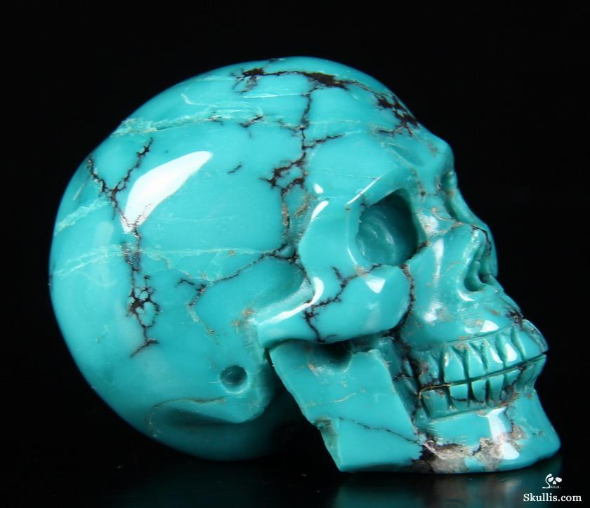 Lifesized 7.8" Turquoise Hand Carved Crystal Skull, Super Realistic, Crystal Healing