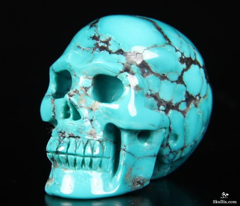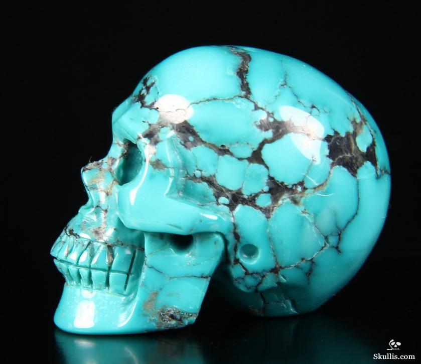 Gemstone 0.7" Spider web Turquoise Hand Carved Crystal Skull, Realistic, Crystal Healing