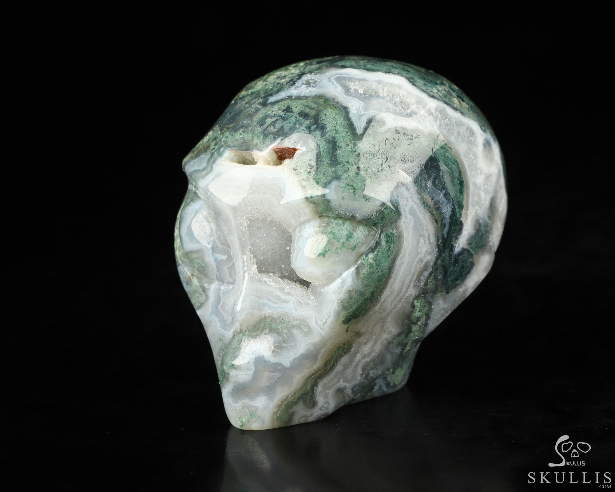 2.0" Green Moss Agate Hand Carved Crystal Skull, Realistic, Crystal Healing
