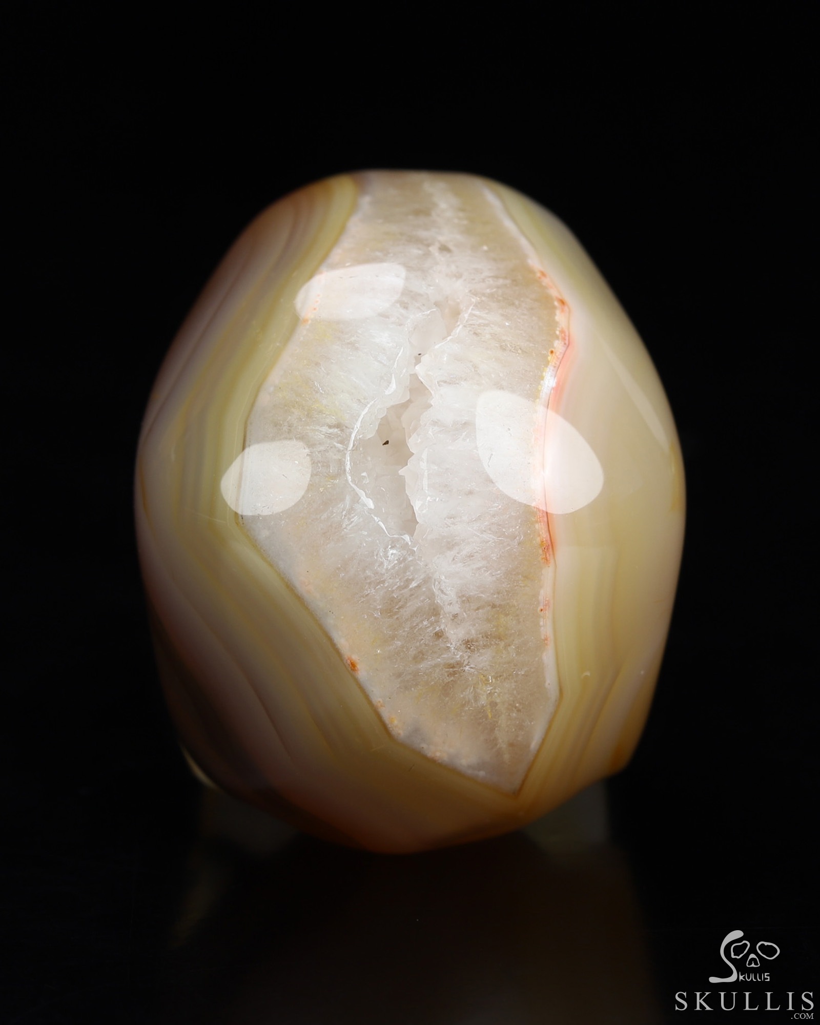 Super Realistic! Lifesized 8.4" Premium Brazilian Agate Geode Hand Carved Crystal Skull, Crystal Healing