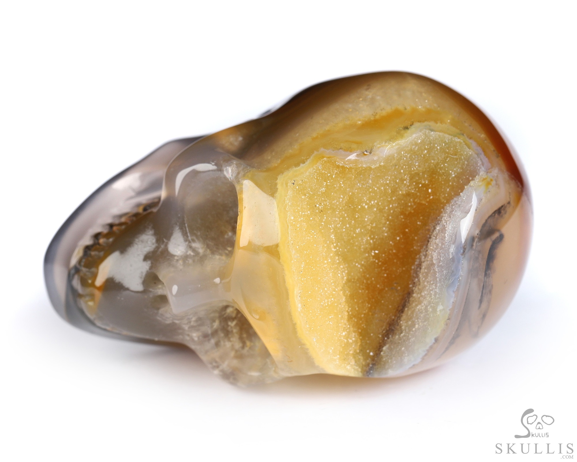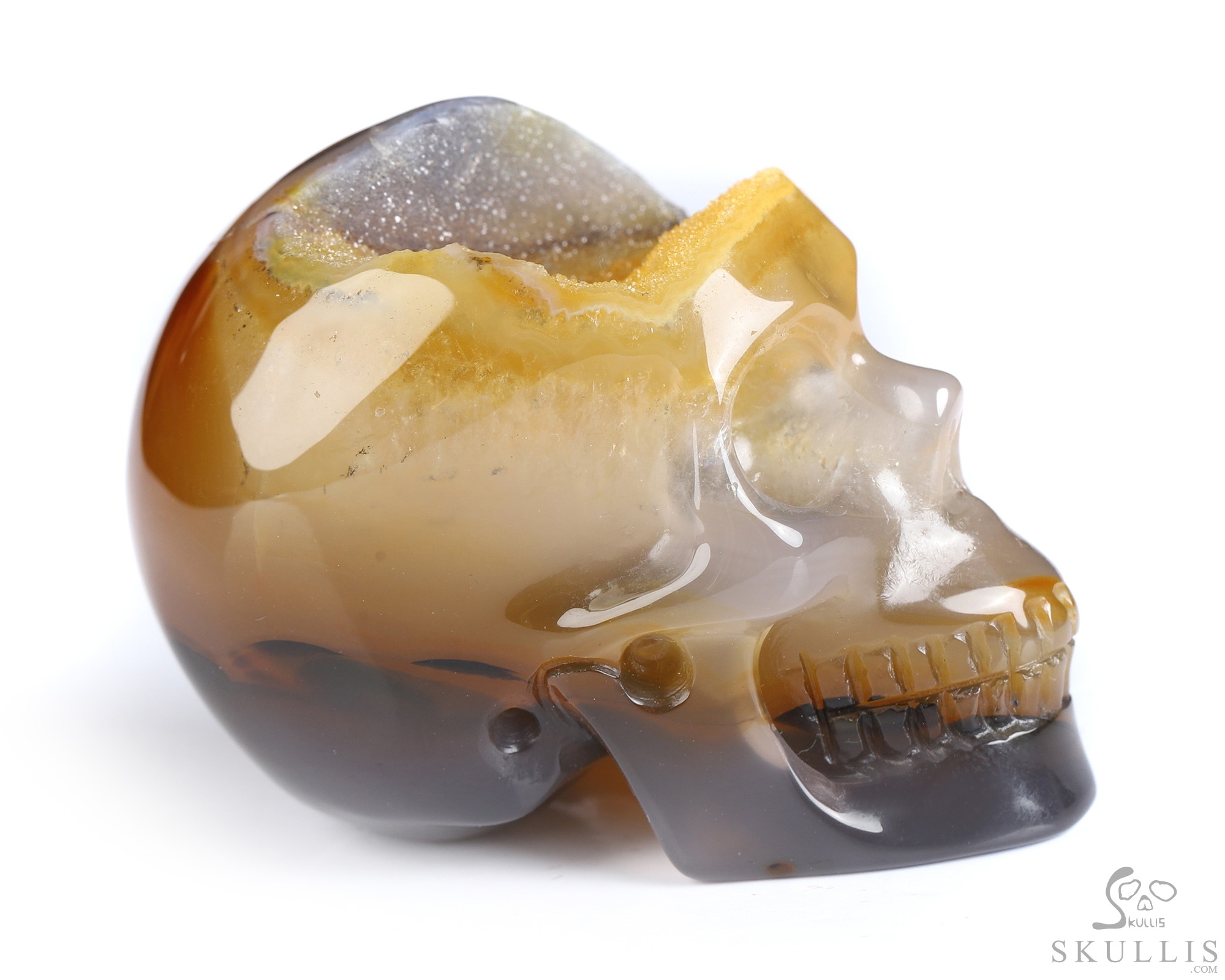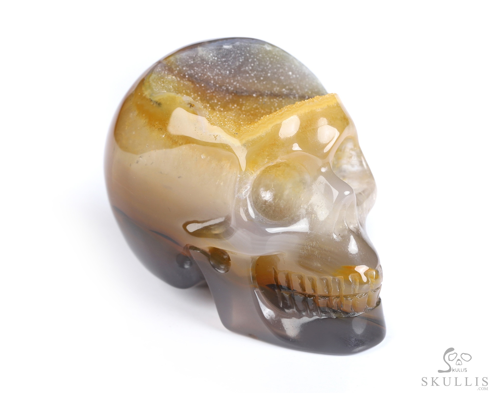 1.9" Agate Geode Hand Carved Crystal Skull, Realistic, Crystal Healing