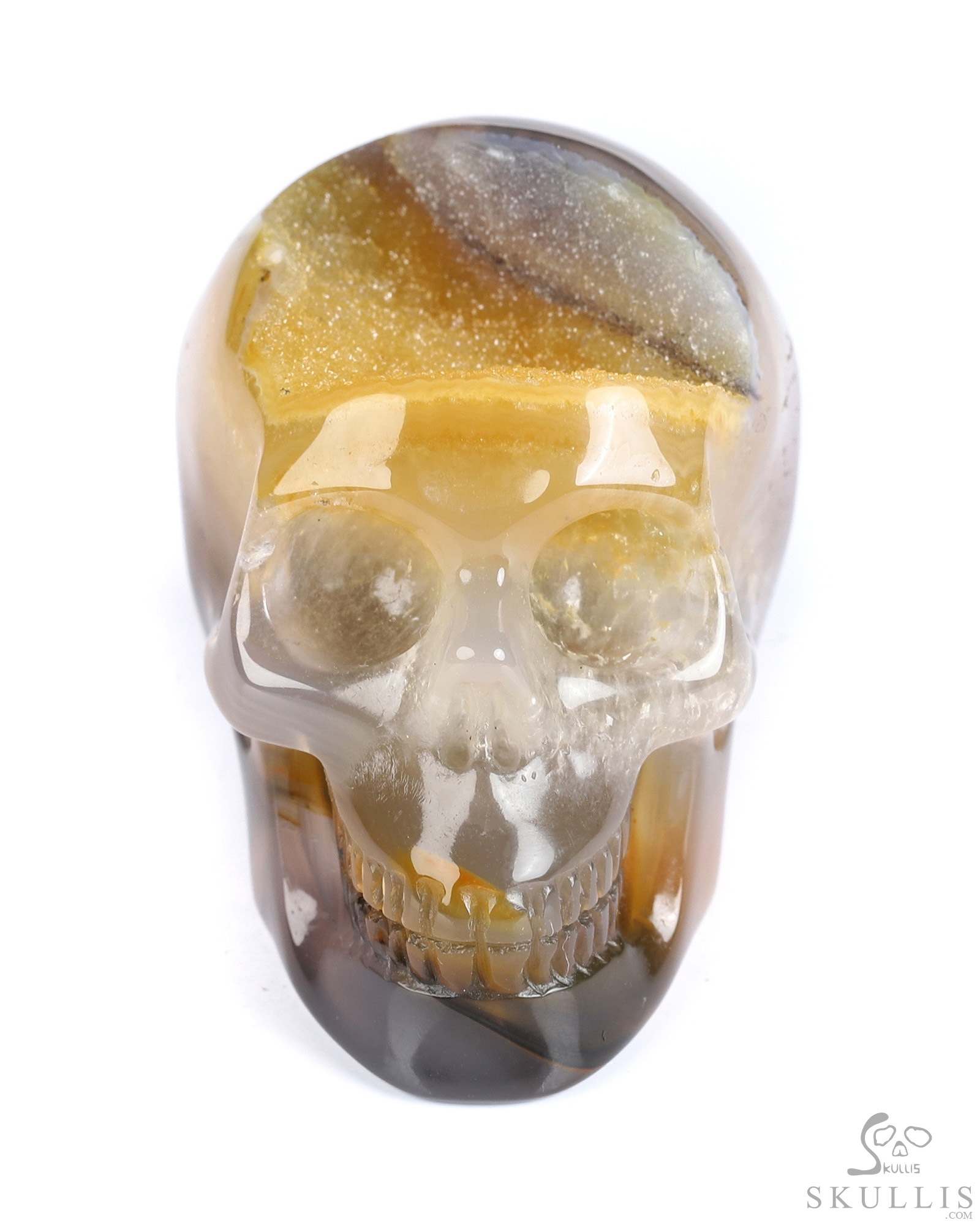 2.5" Agate Geode Carved Crystal Skull, Crystal Healing