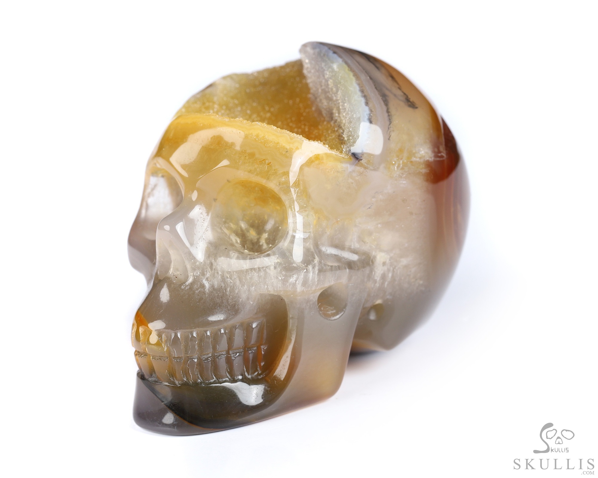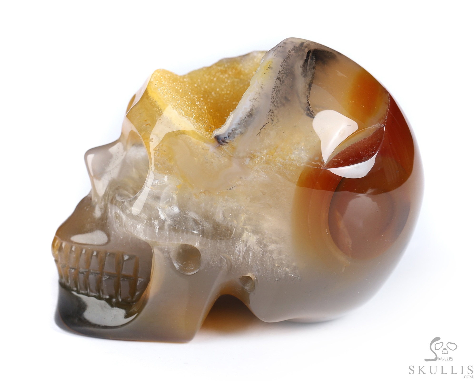2.0" Agate Geode Hand Carved Crystal Skull, Realistic, Crystal Healing