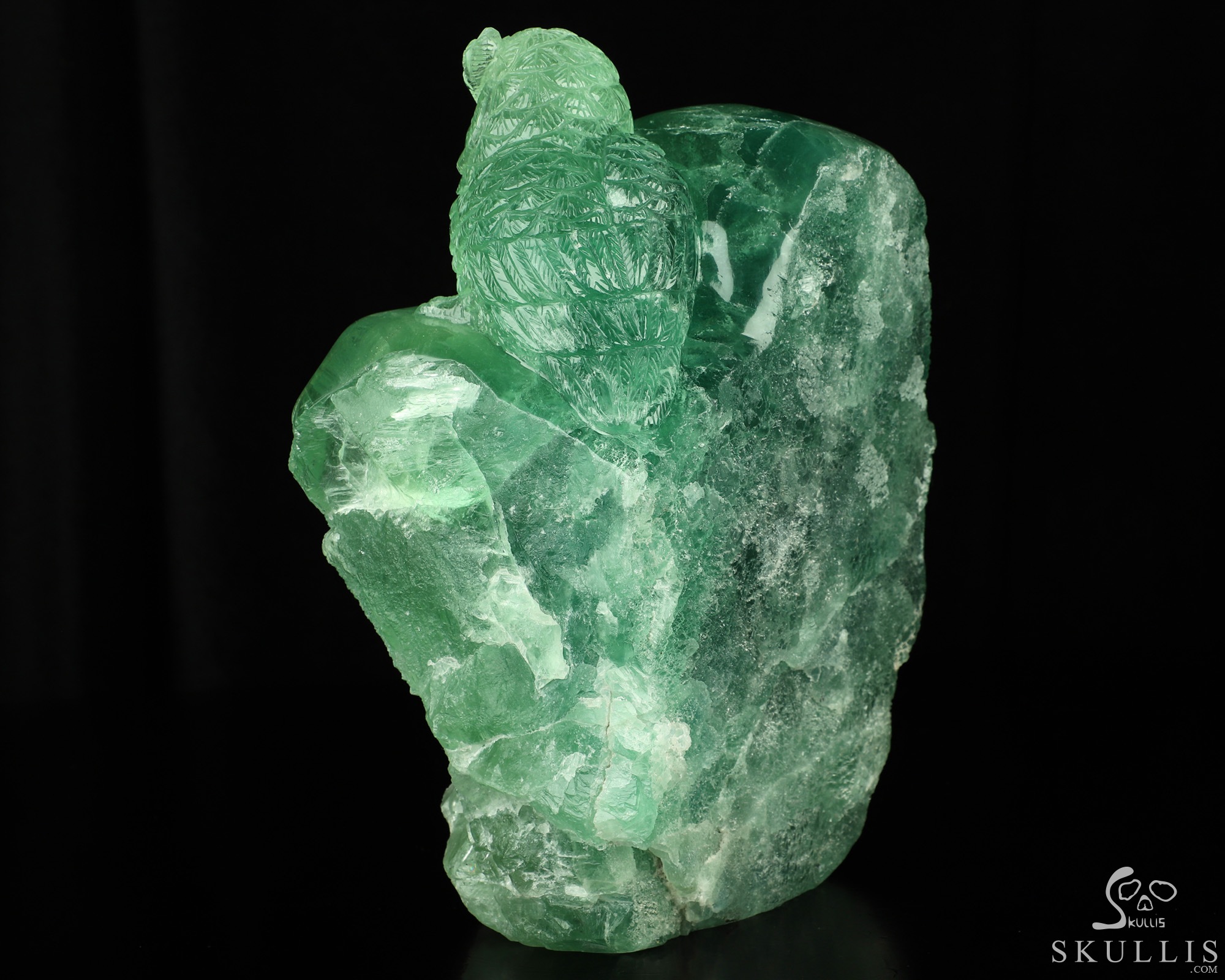 6.0" Fluorite Hand Carved Guardian Crystal Skull Sculpture, Crystal Healing