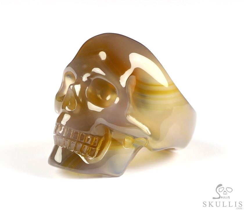 4.1" Agate Hand Carved Crystal Skull, Realistic, Crystal Healing