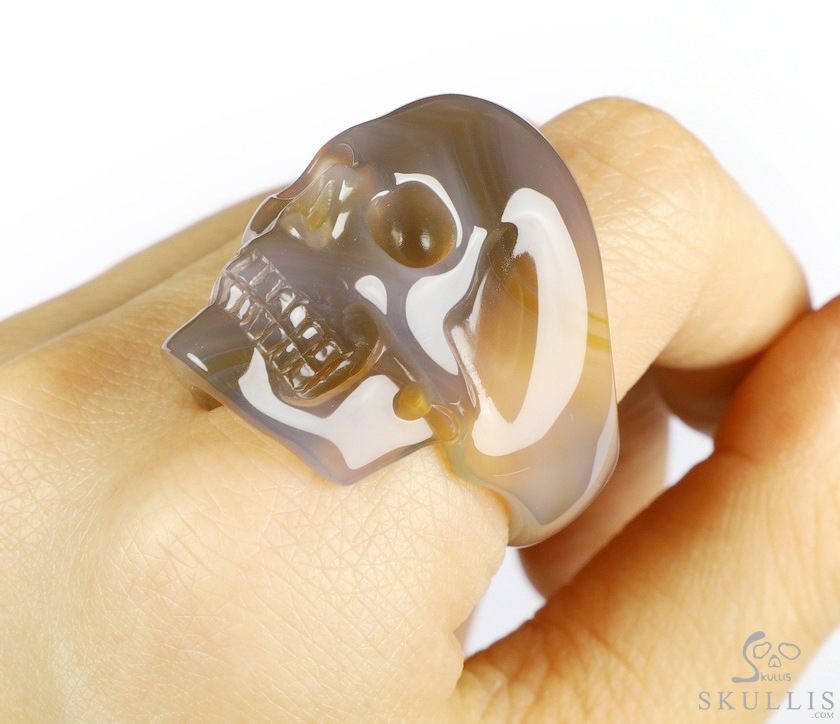 #10.5 Agate Carved Crystal Skull Ring, Crystal Healing