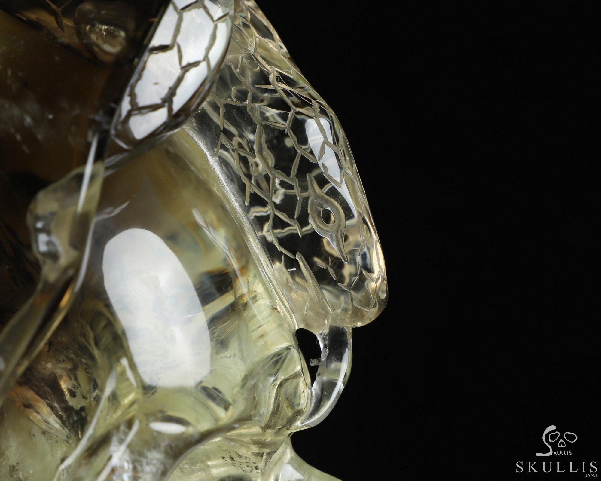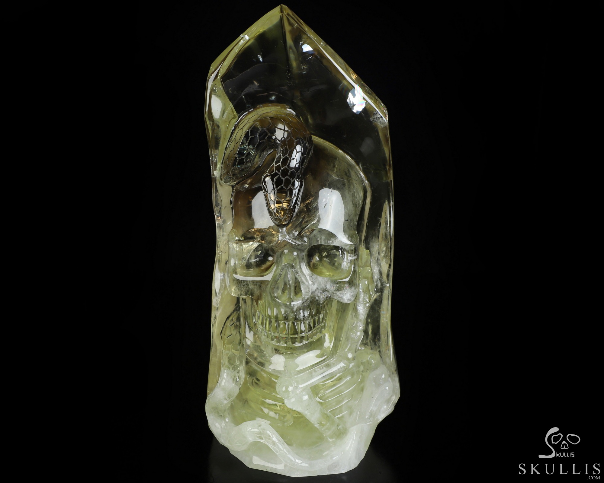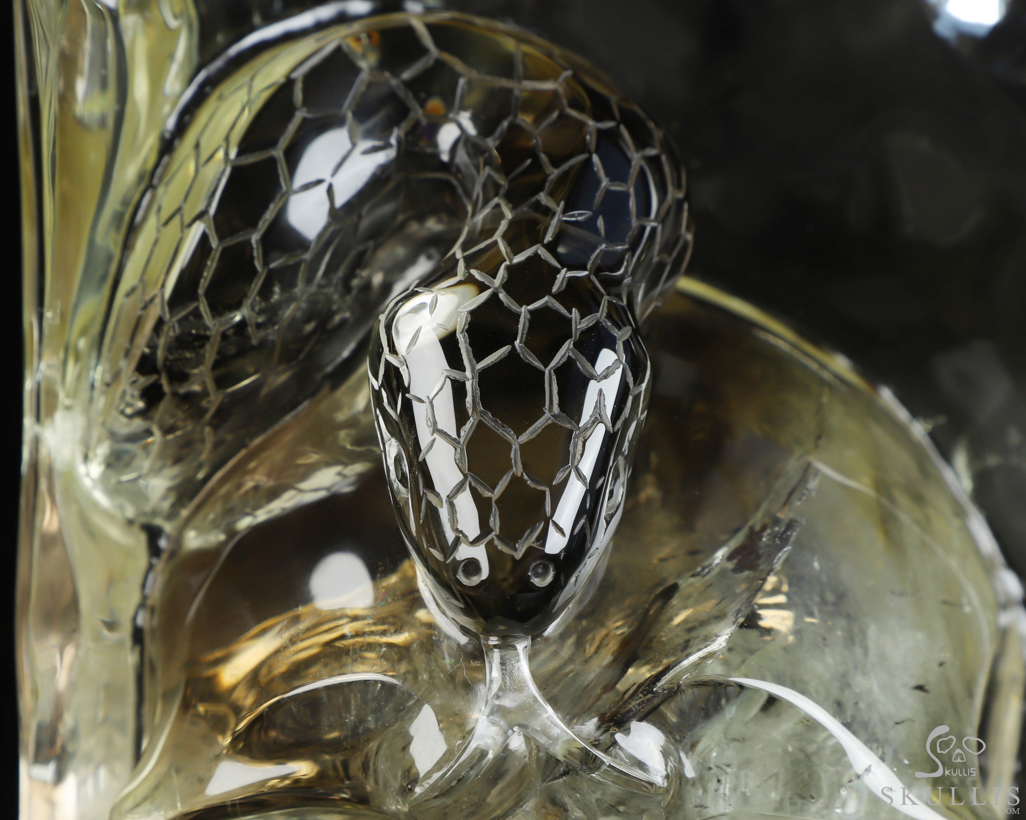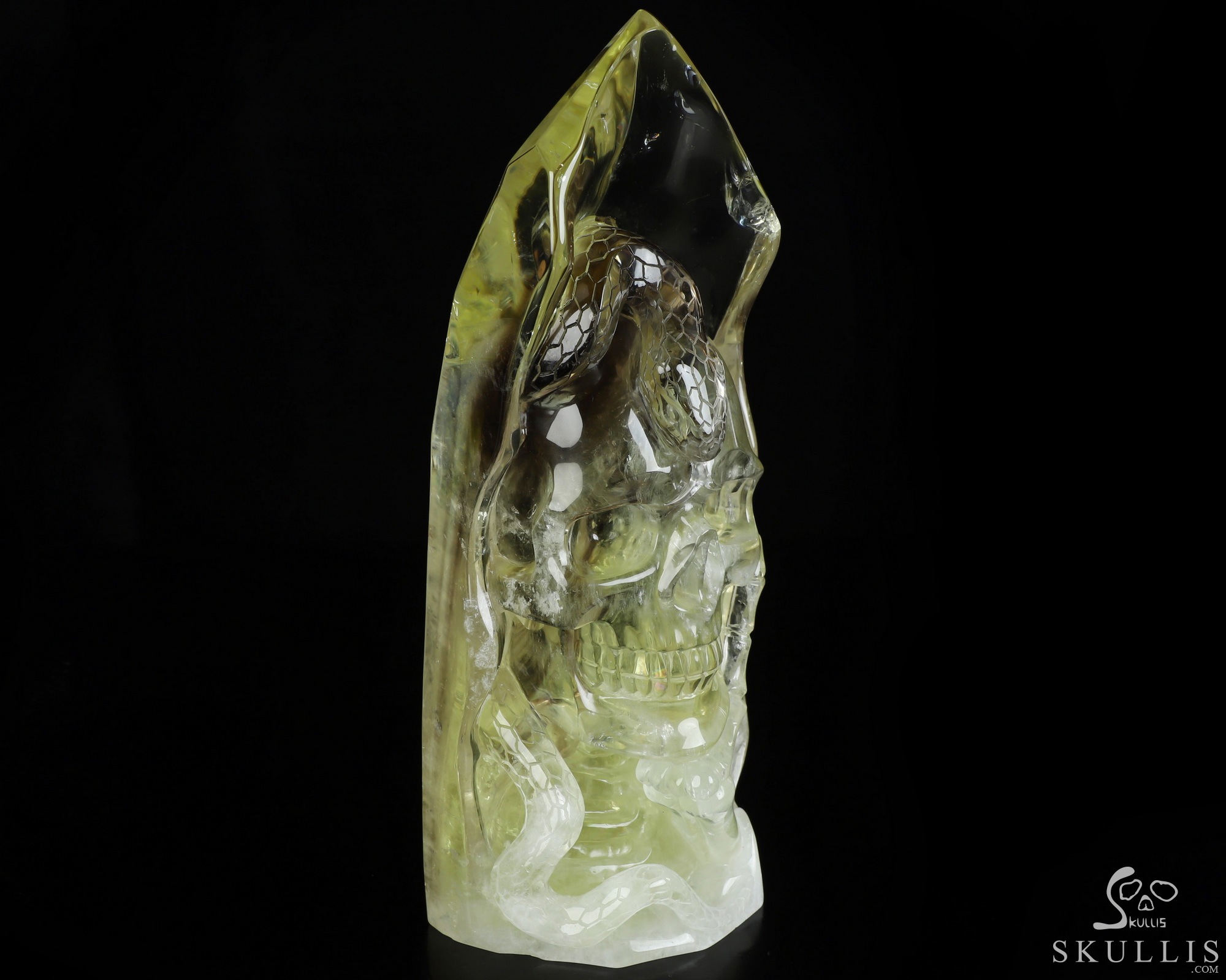 10.9" Citrine Hand Carved Crystal Skull and Snake Sculpture, Crystal Healing