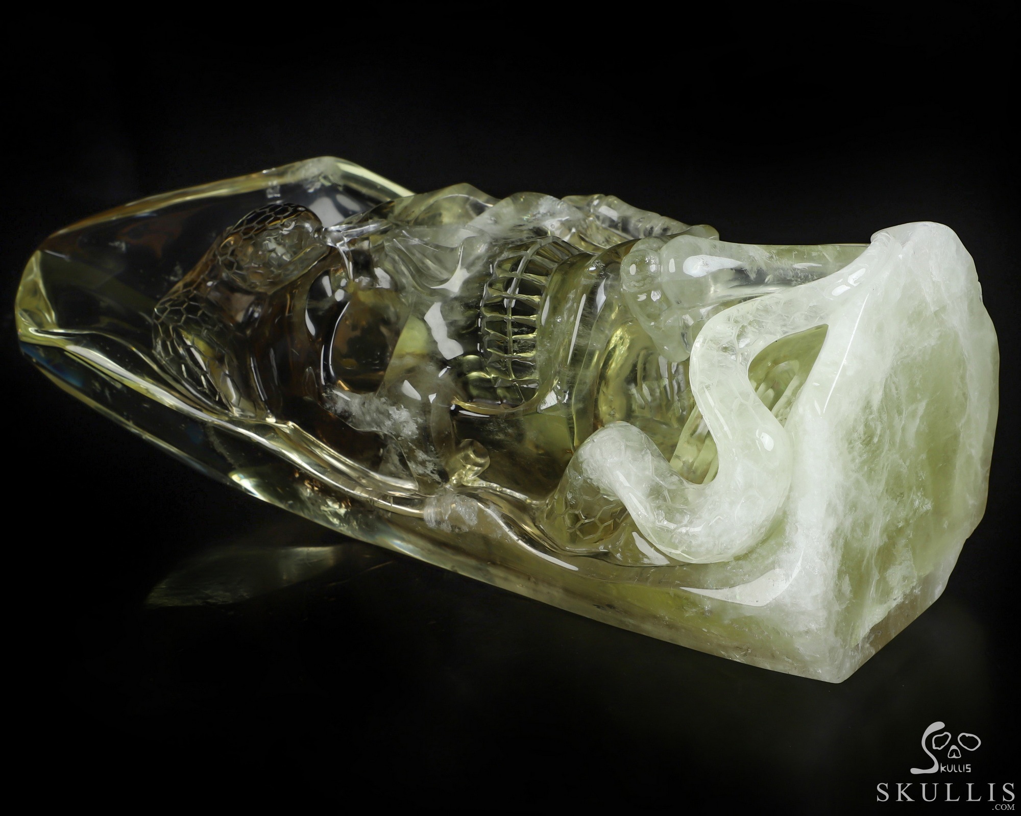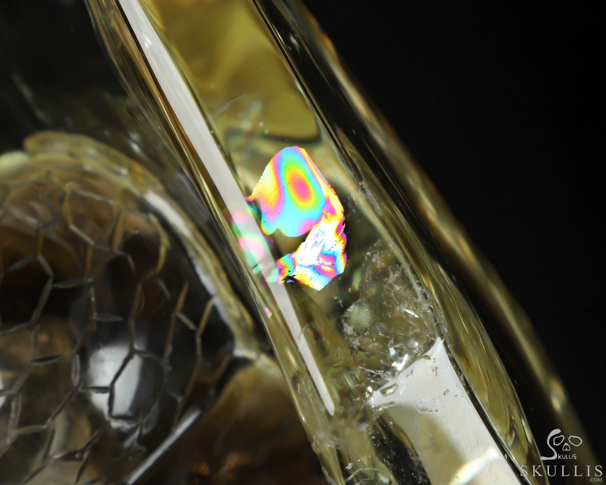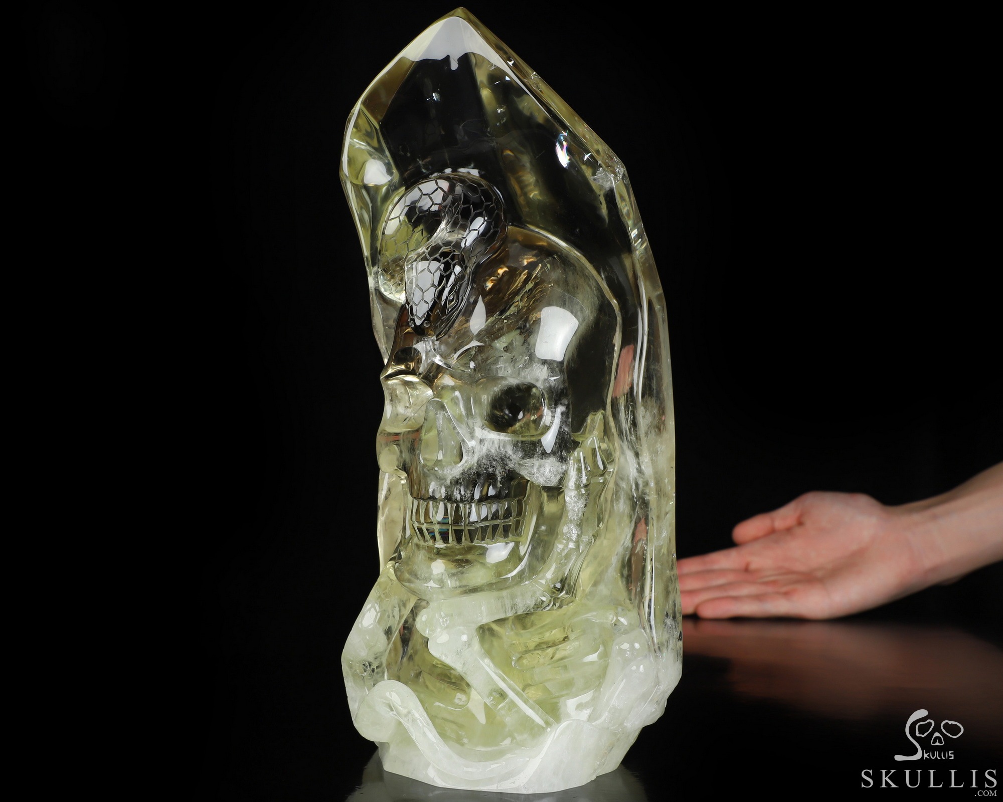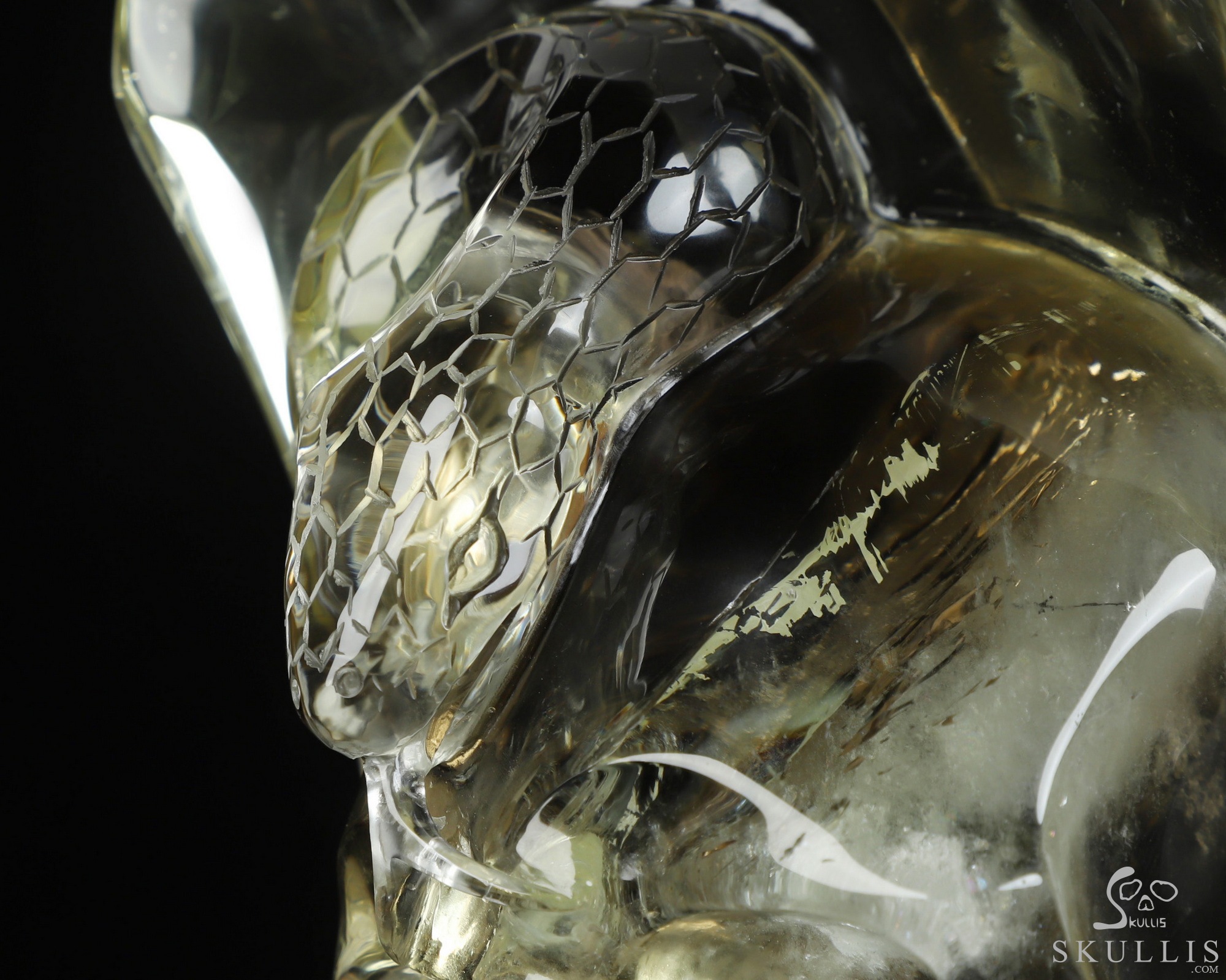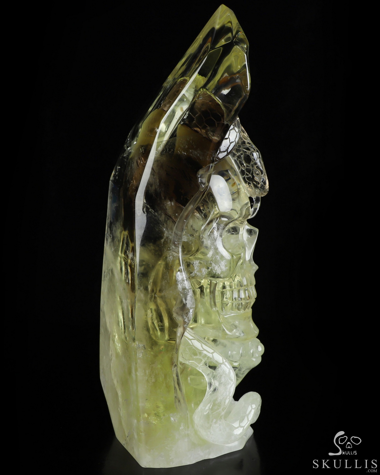 10.9" Citrine Hand Carved Crystal Skull and Snake Sculpture, Crystal Healing