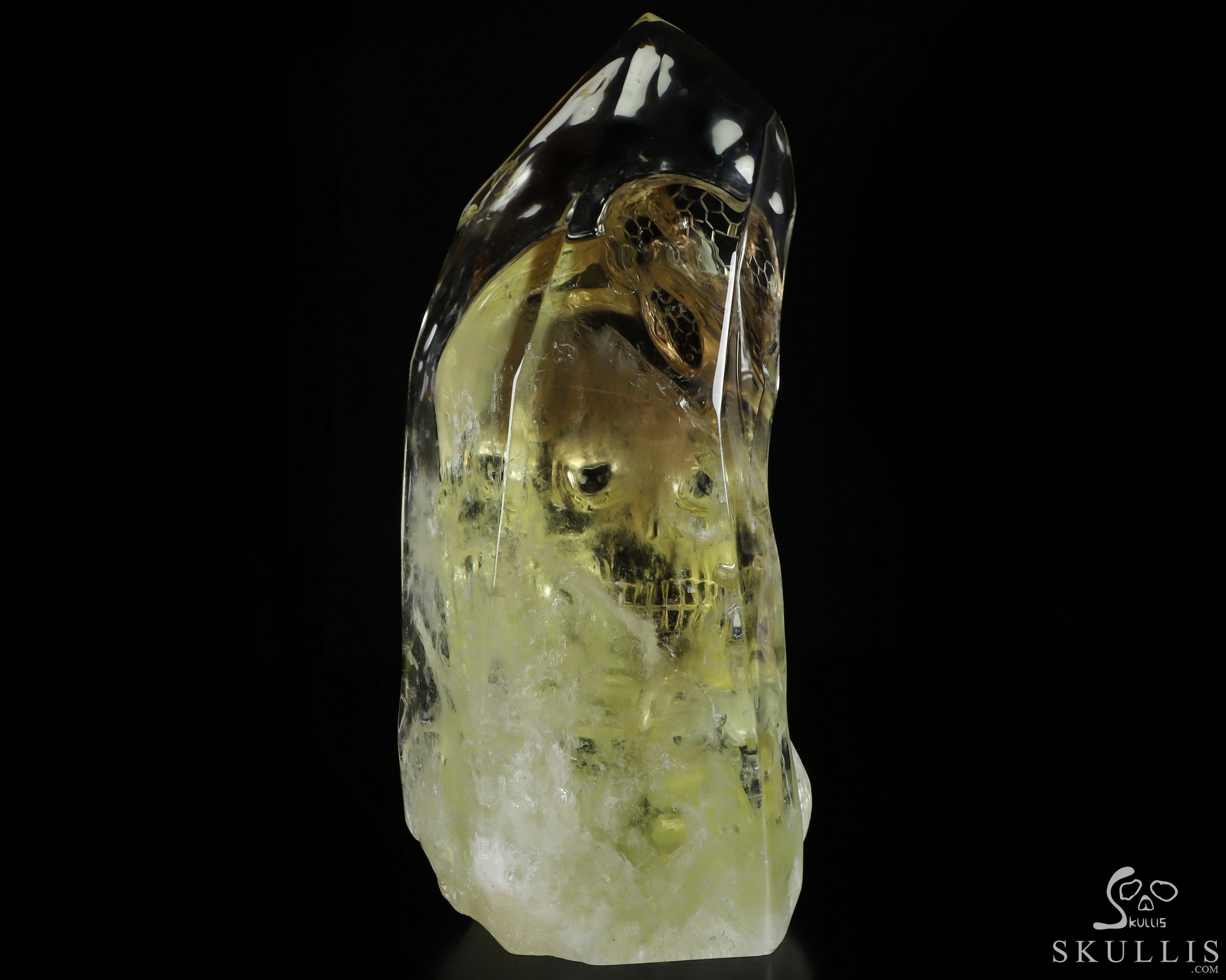 Gemstone 6.9" Citrine Hand Carved Pharaoh Crystal Skull Sculpture,Crystal Healing
