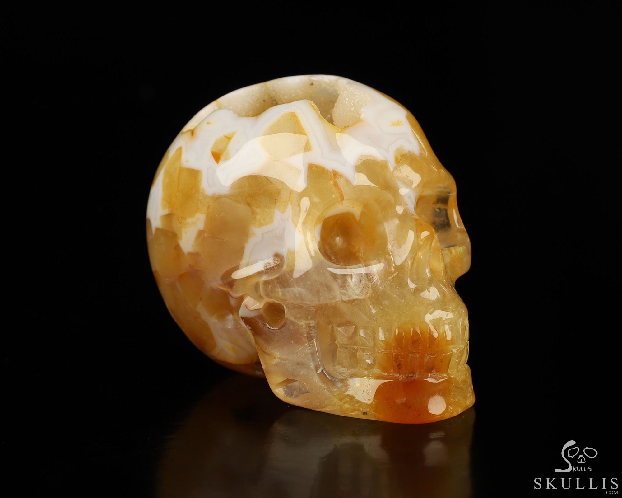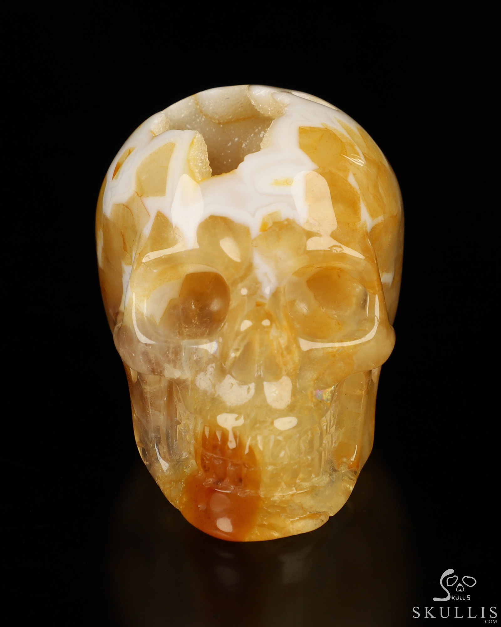 1.9" Agate Geode Hand Carved Crystal Skull, Realistic, Crystal Healing
