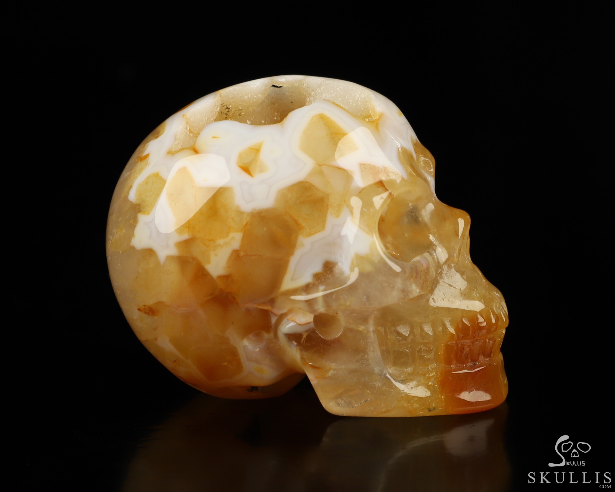 2.0" Agate Geode Hand Carved Crystal Skull, Realistic, Crystal Healing