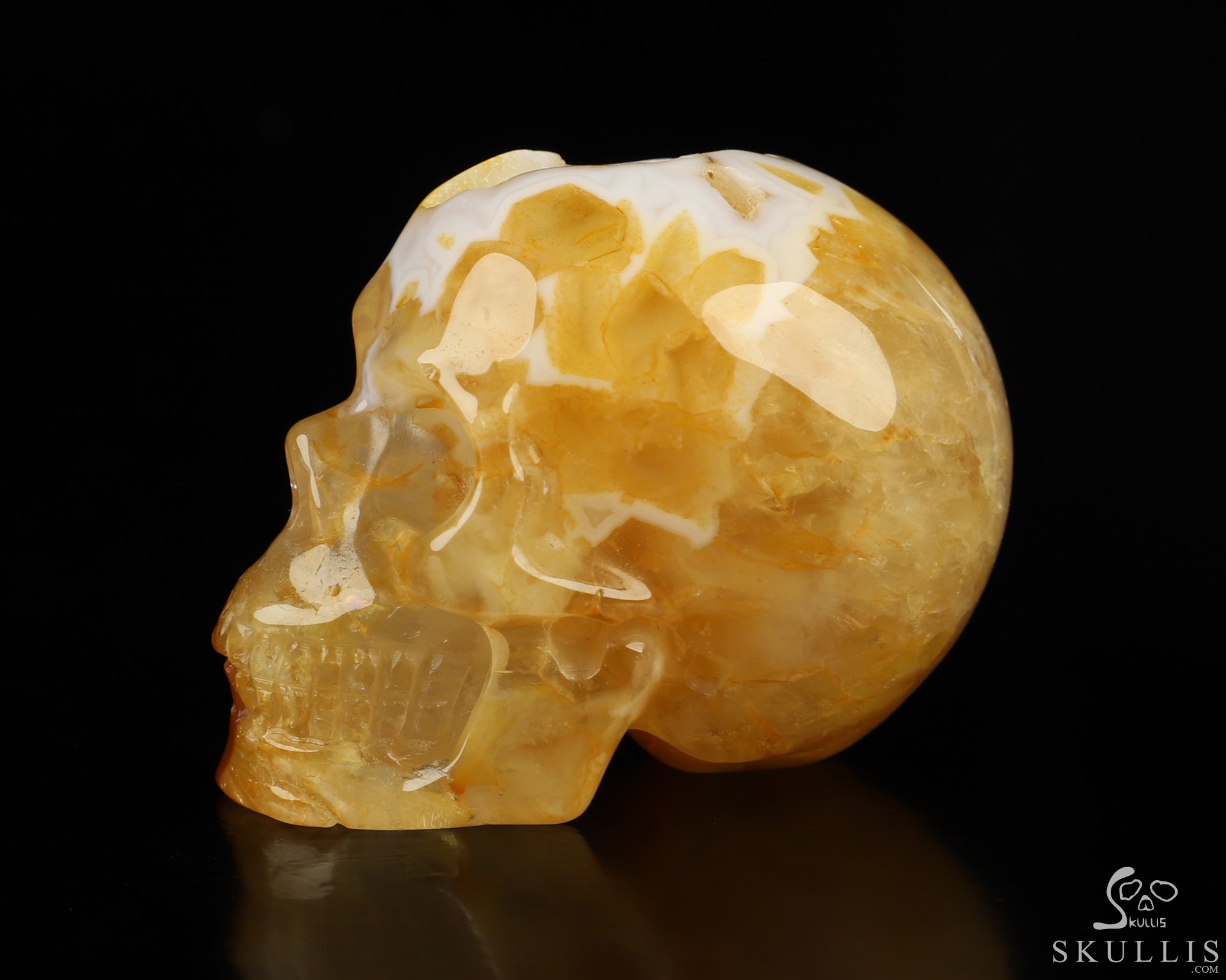 Super Realistic! Lifesized 8.0" Agate Geode Hand Carved Crystal Skull, Crystal Healing