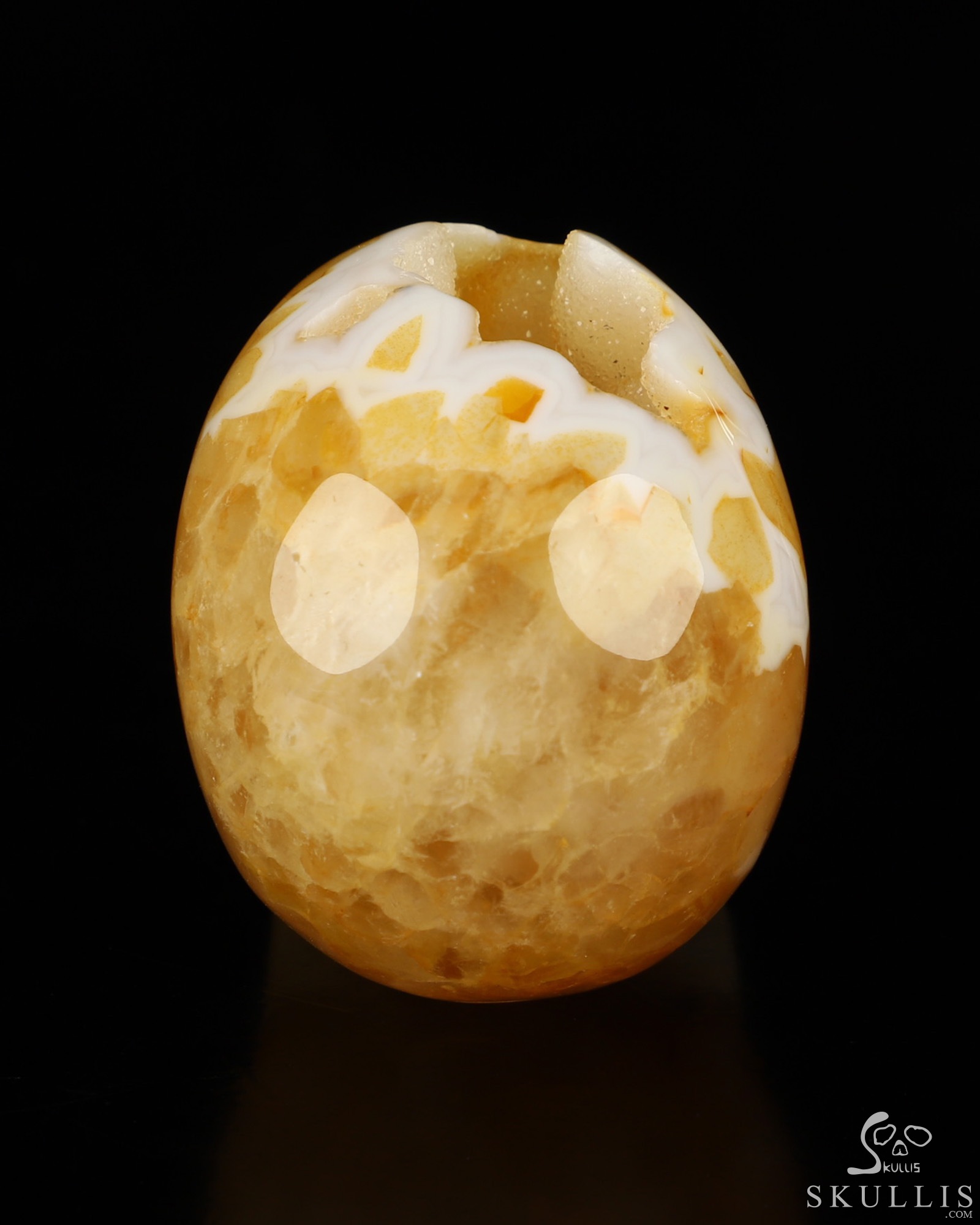 Amazing 5.1" Agate Geode Carved Crystal Skull With Owl Sculpture, Crystal Healing