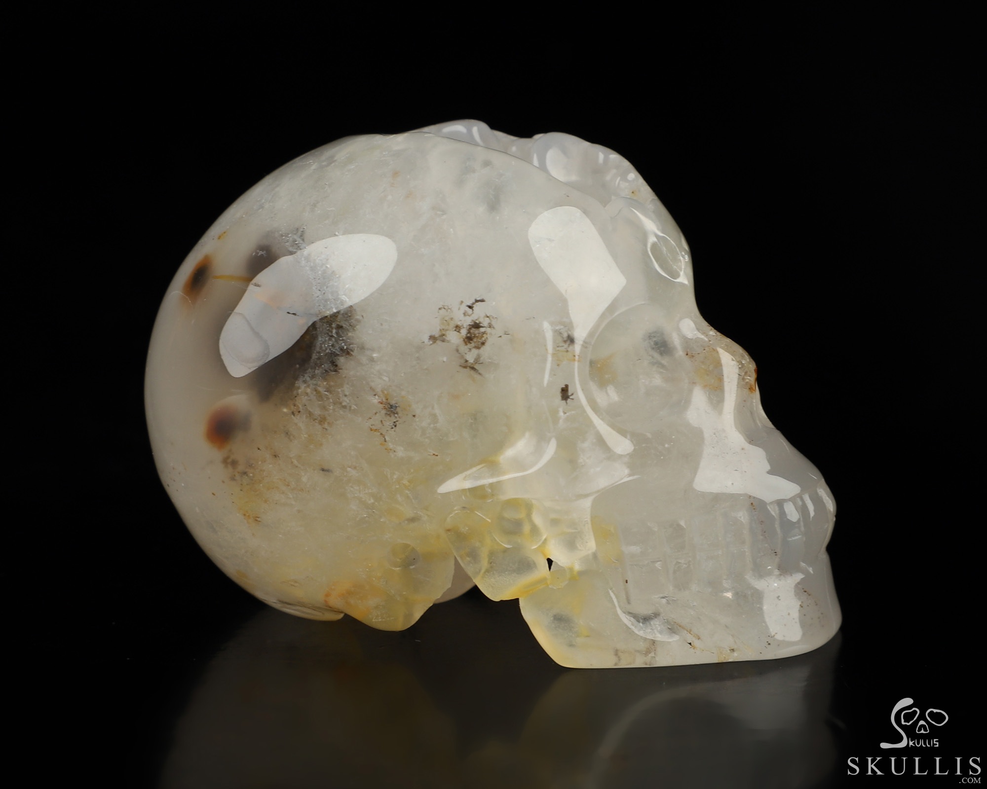3.9" Agate Geode Hand Carved Crystal Skull, Realistic, Crystal Healing