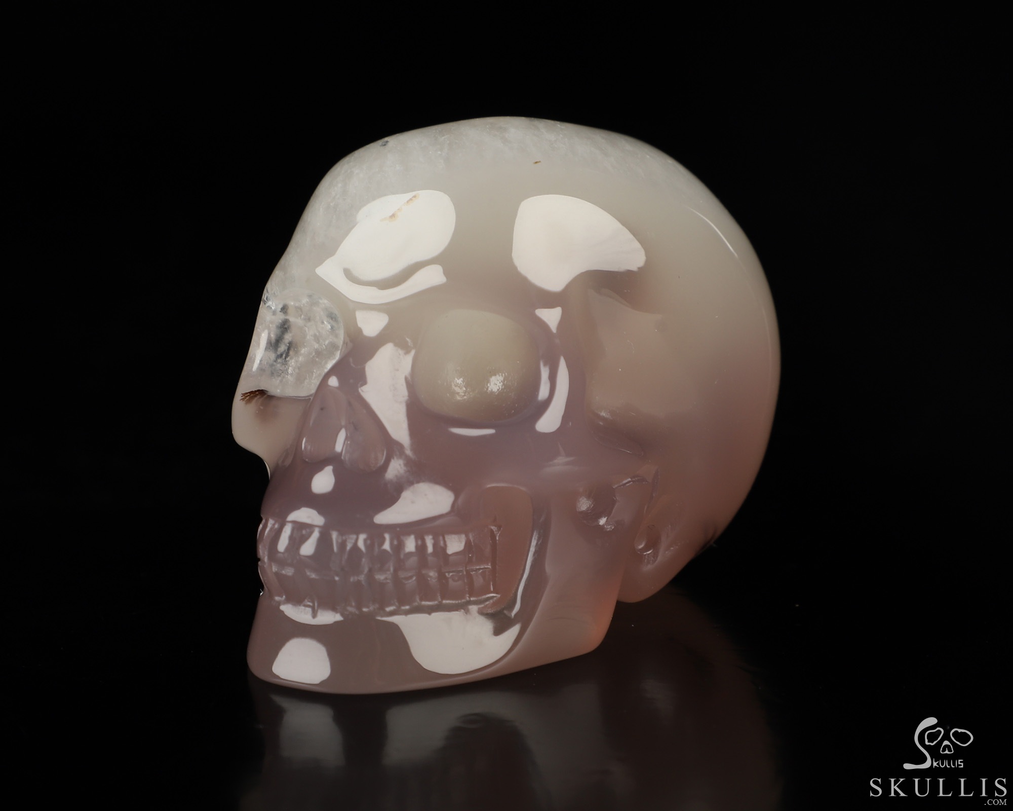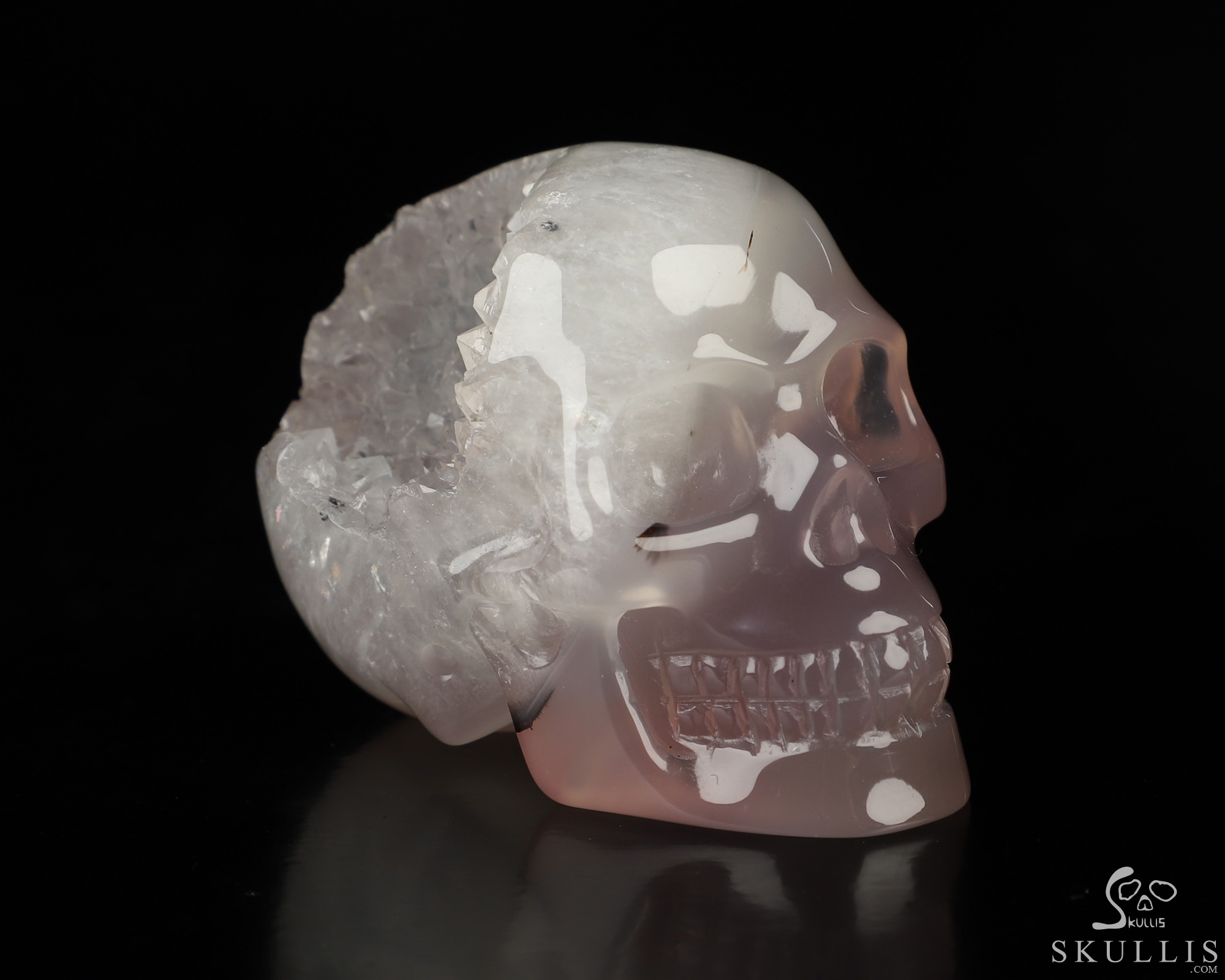 5.1" Agate Geode Hand Carved Crystal Skull, Super Realistic, Crystal Healing