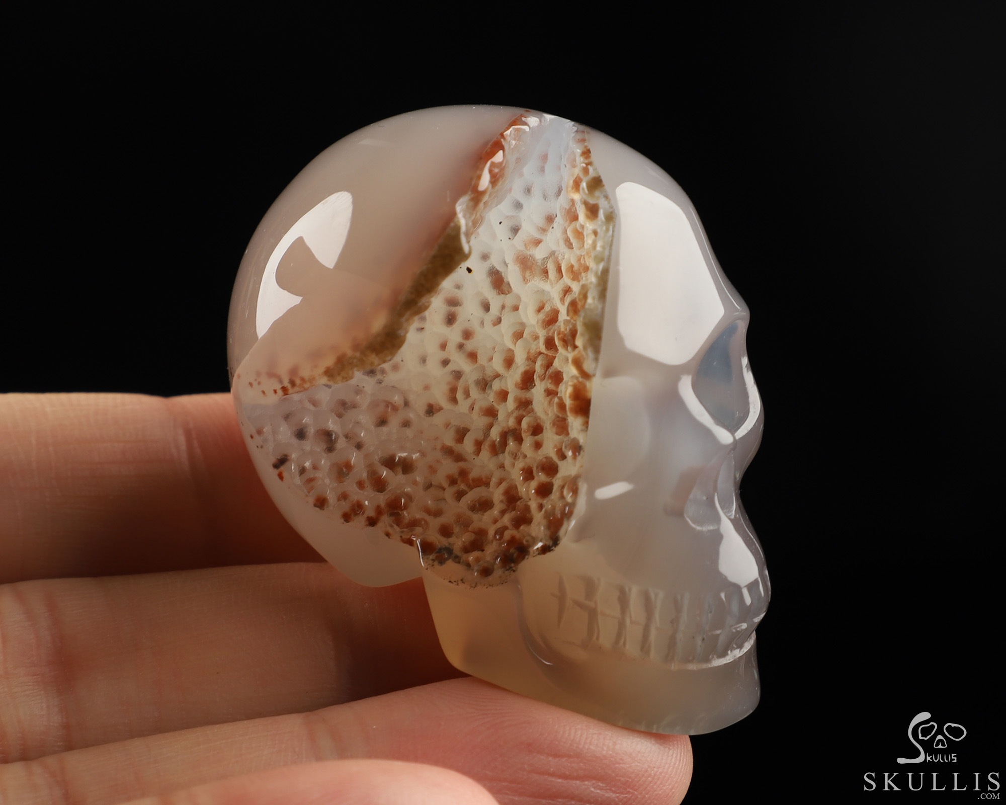 1.9" Agate Geode Hand Carved Crystal Skull, Realistic, Crystal Healing