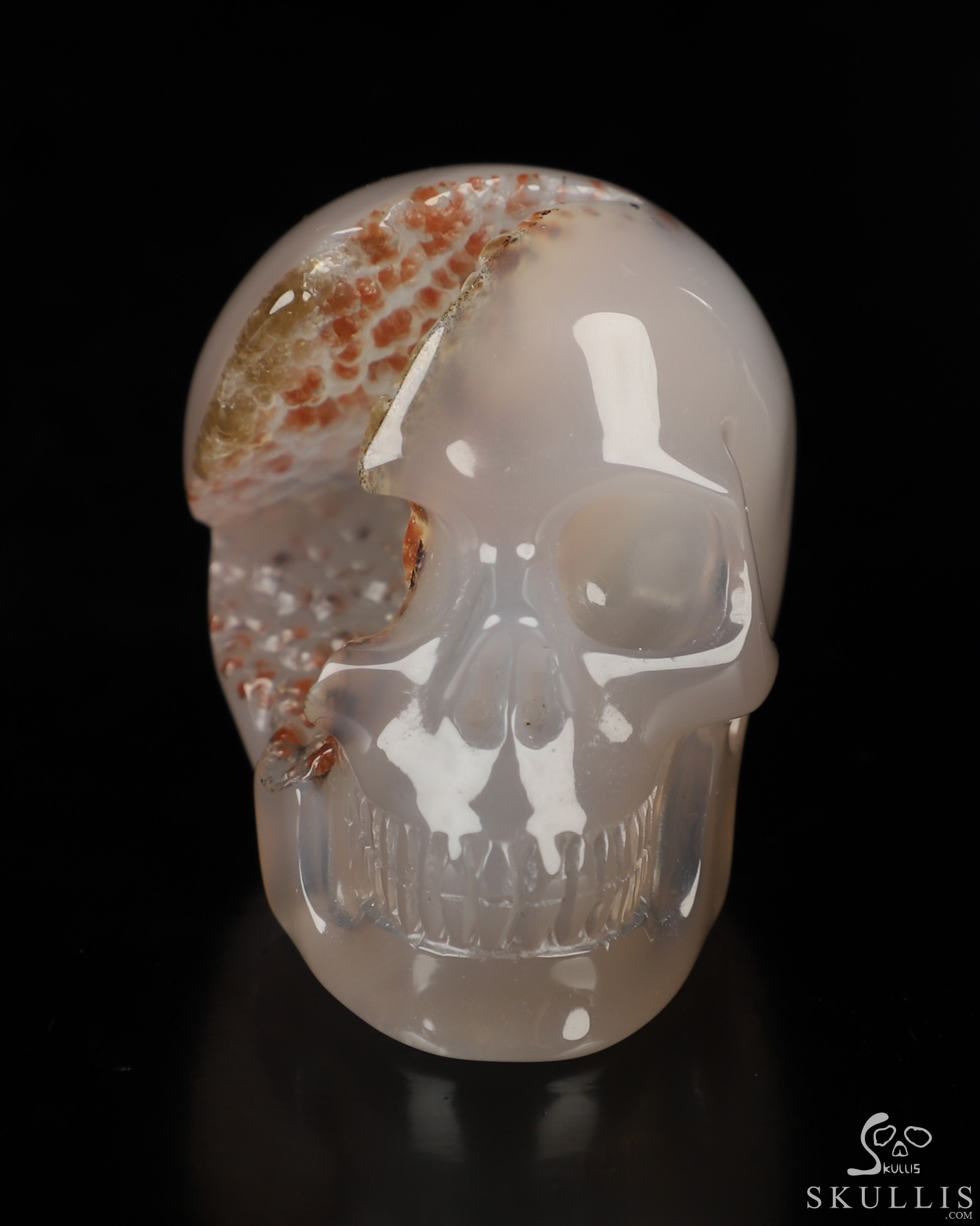 8.3" Agate Geode Hand Carved Crystal Skull and Snake Fine Art Sculpture, Crystal Healing