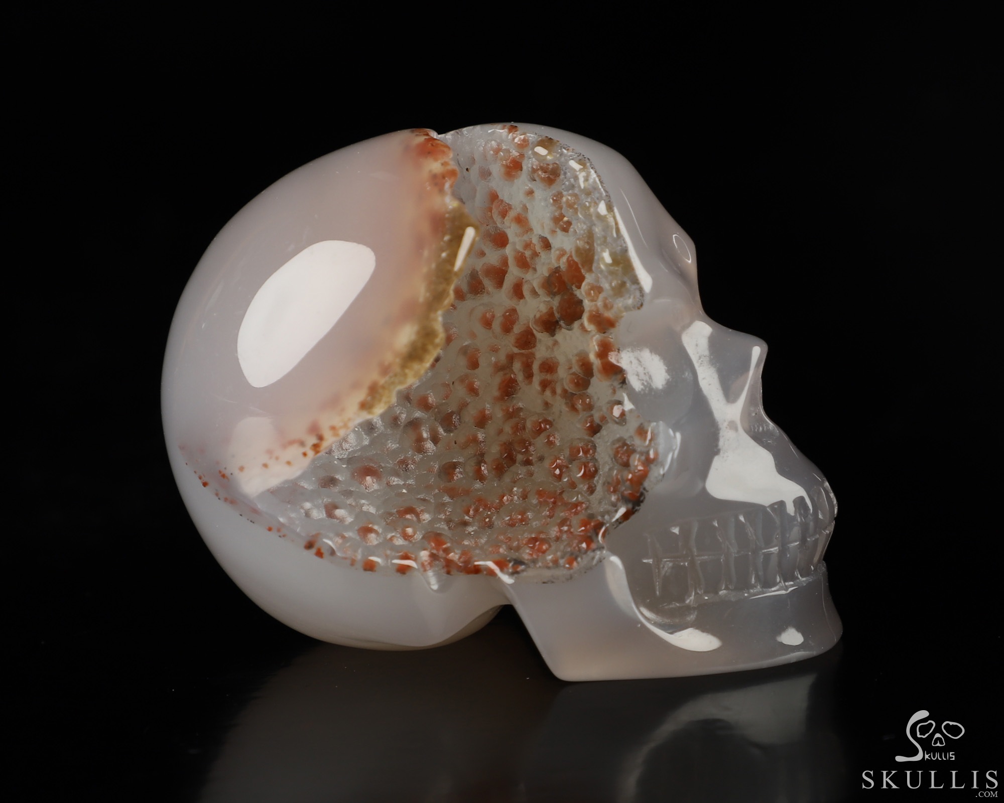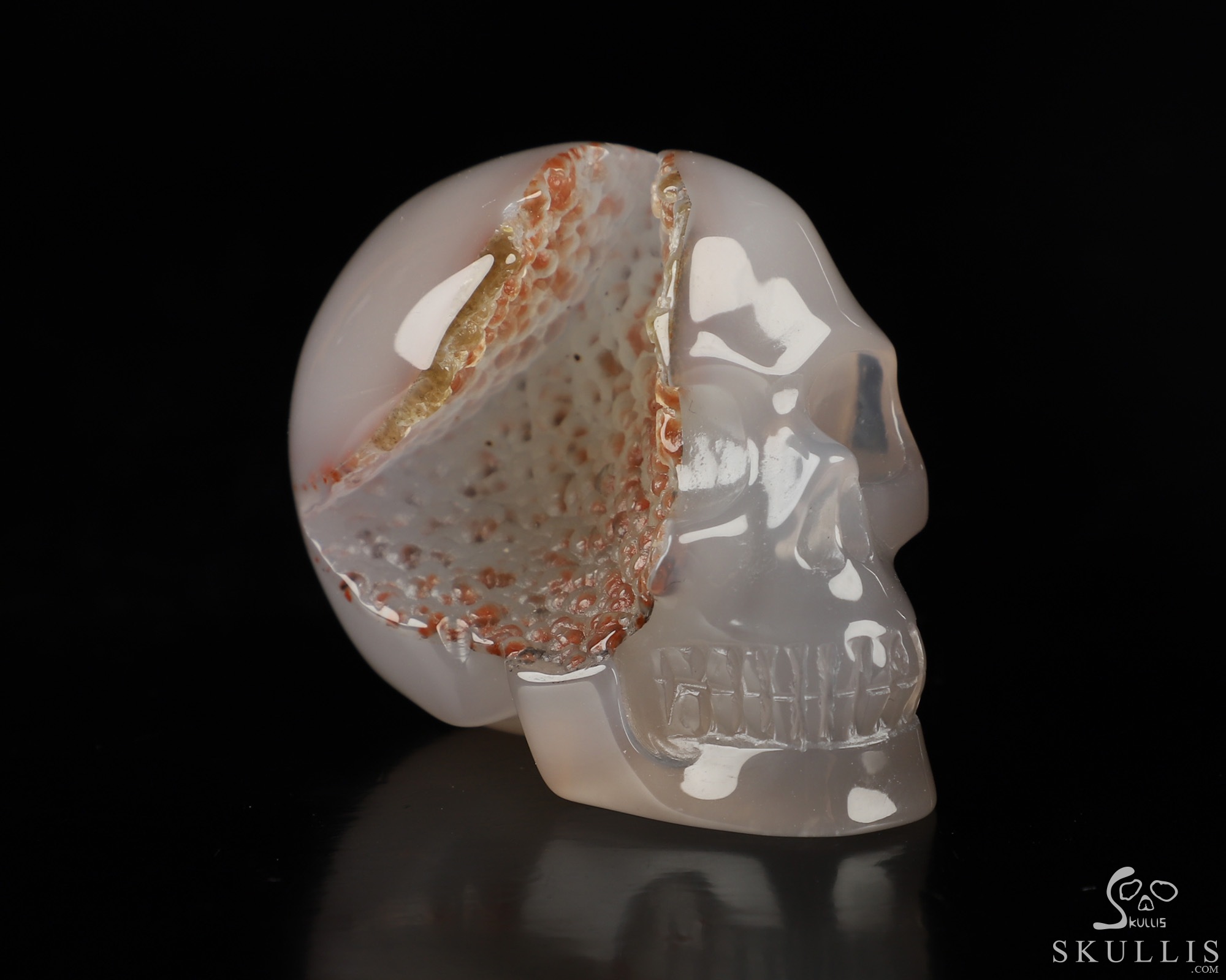 Super Realistic! Lifesized 8.0" Agate Geode Hand Carved Crystal Skull, Crystal Healing