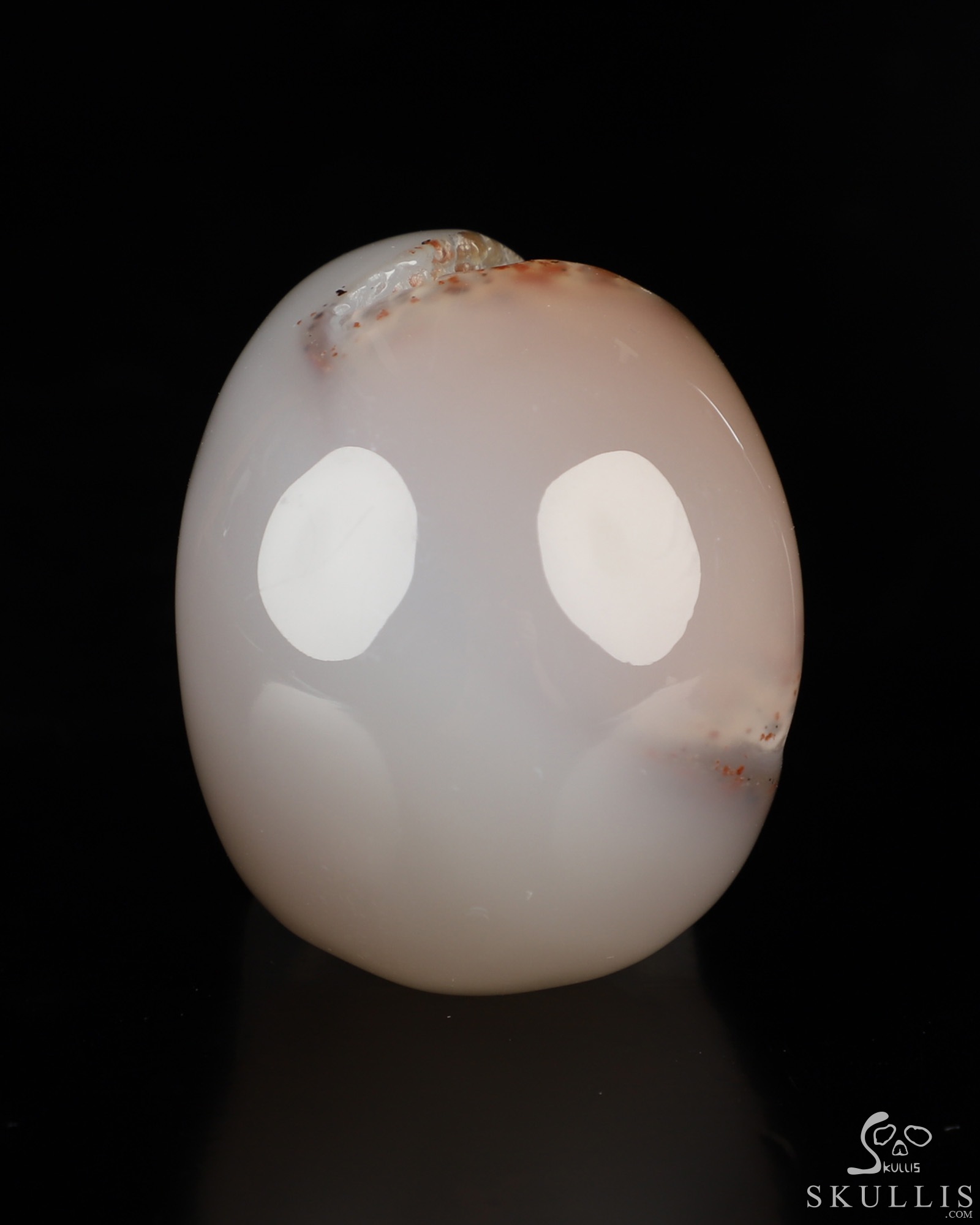 You are looking at an Agate Geode skull. The skull is 2 inches from front to back.