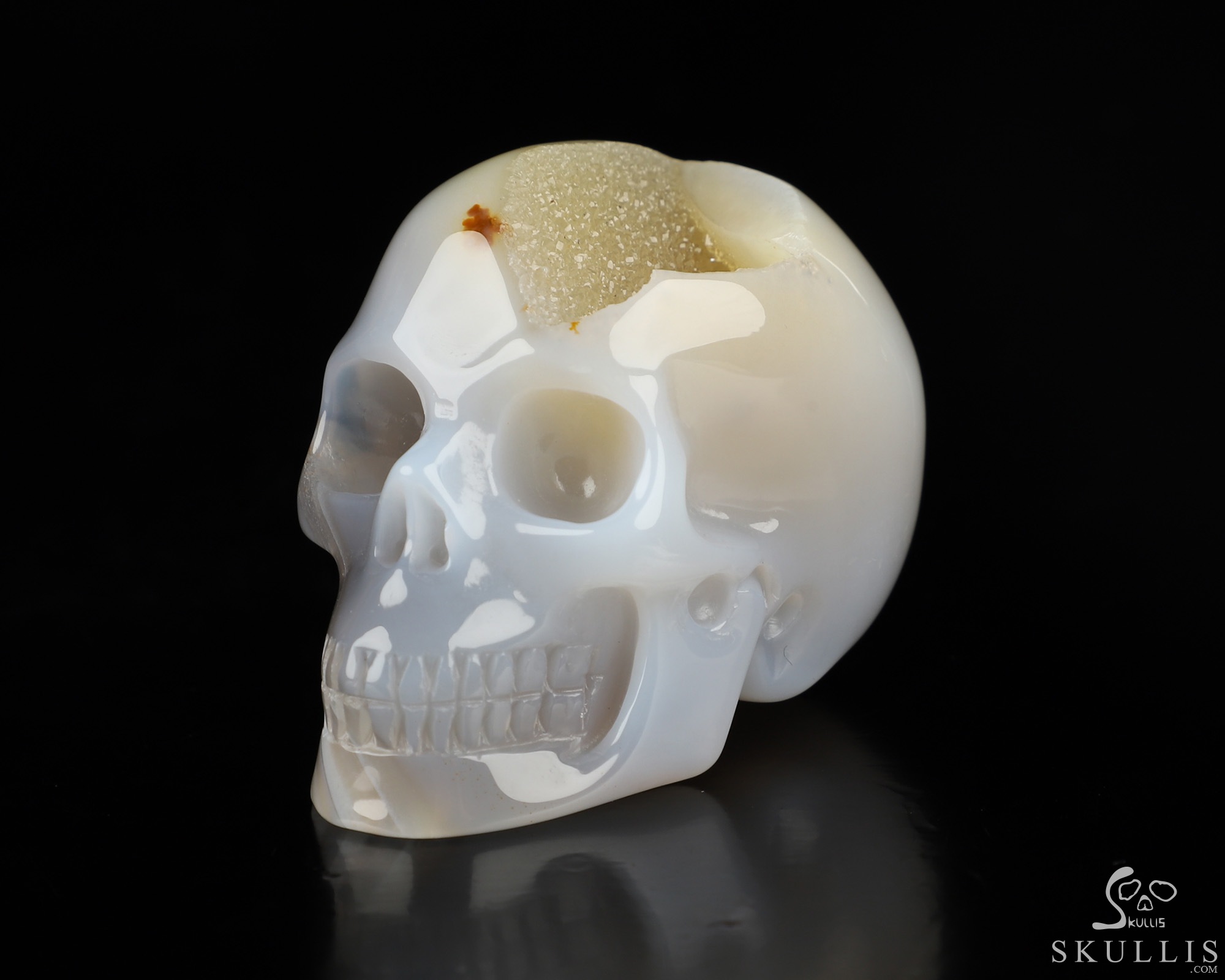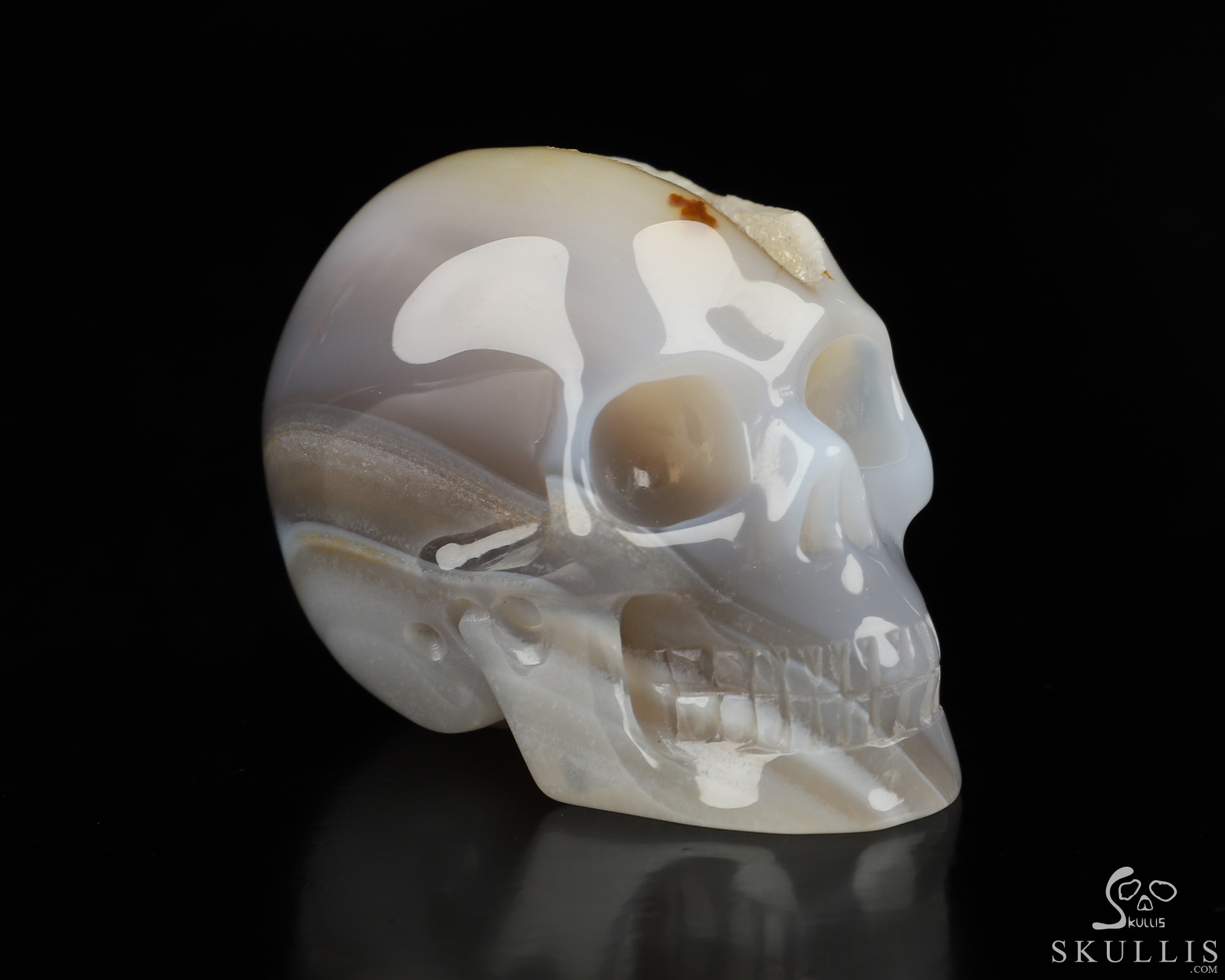 2.0" Agate Geode Carved Crystal Skull,Realistic, Crystal Healing