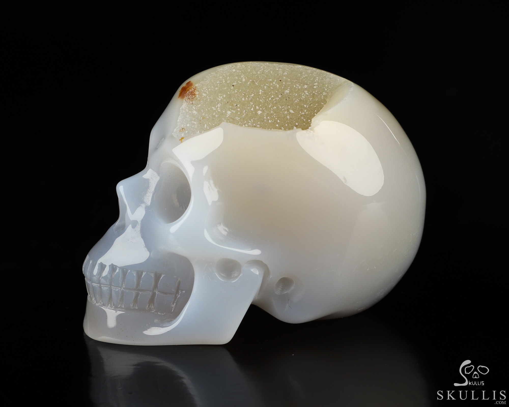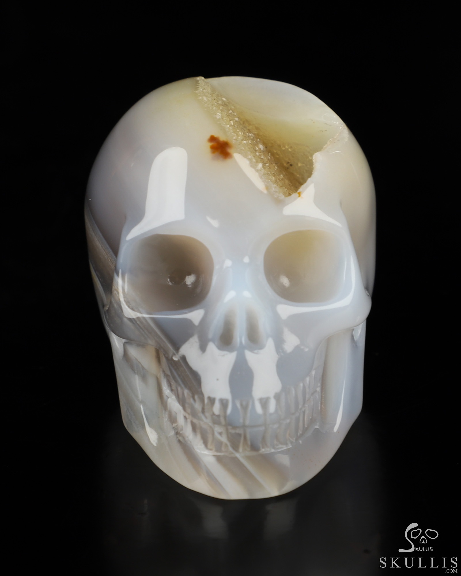 5.0" Agate Geode Carved Crystal Skull, Realistic, Crystal Healing