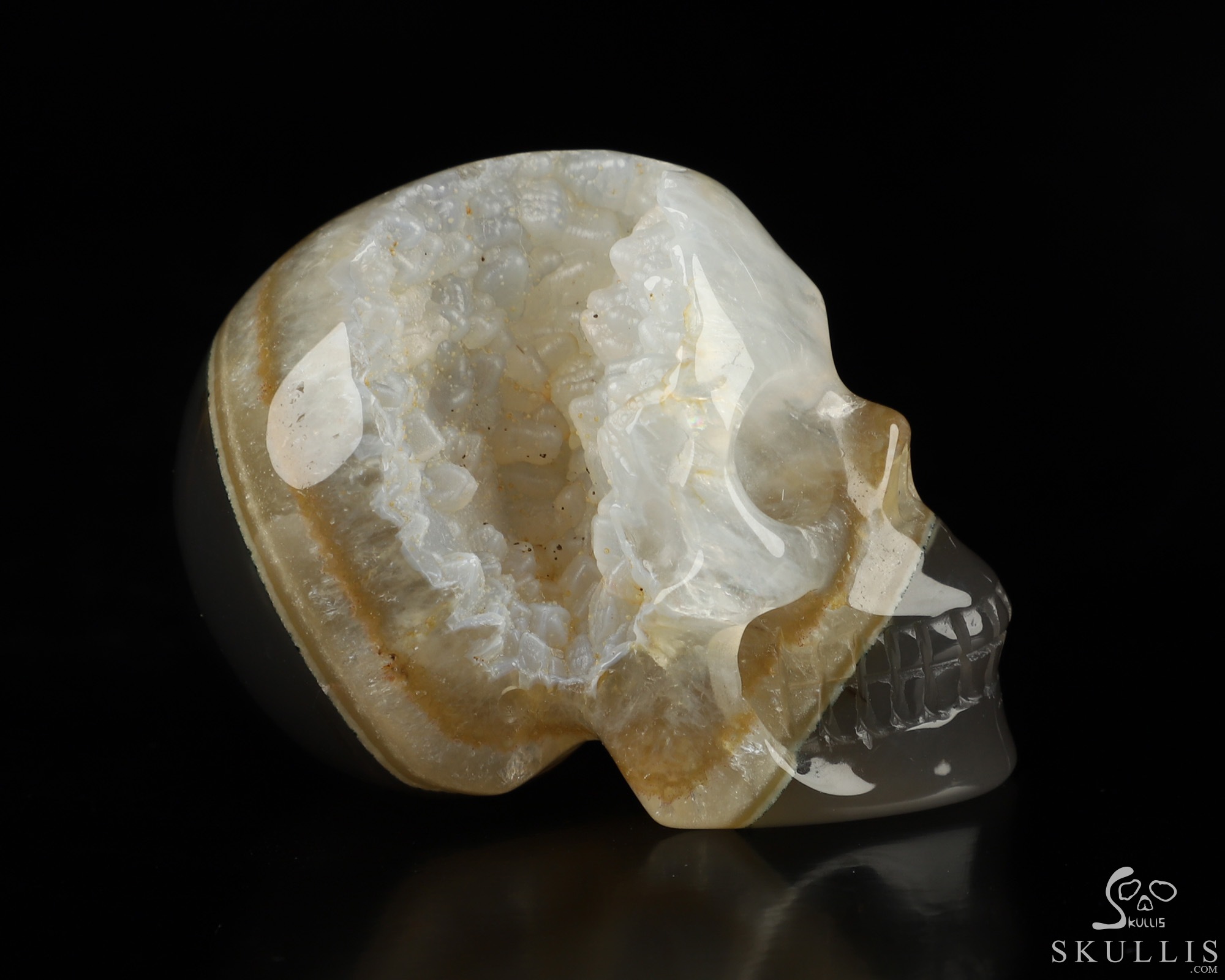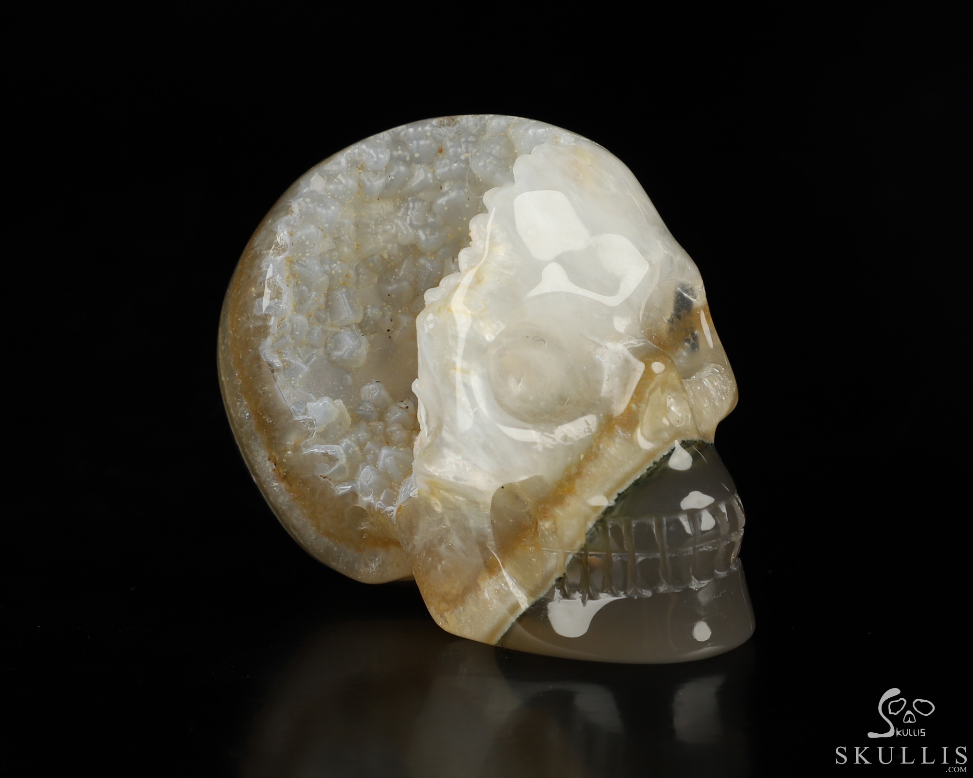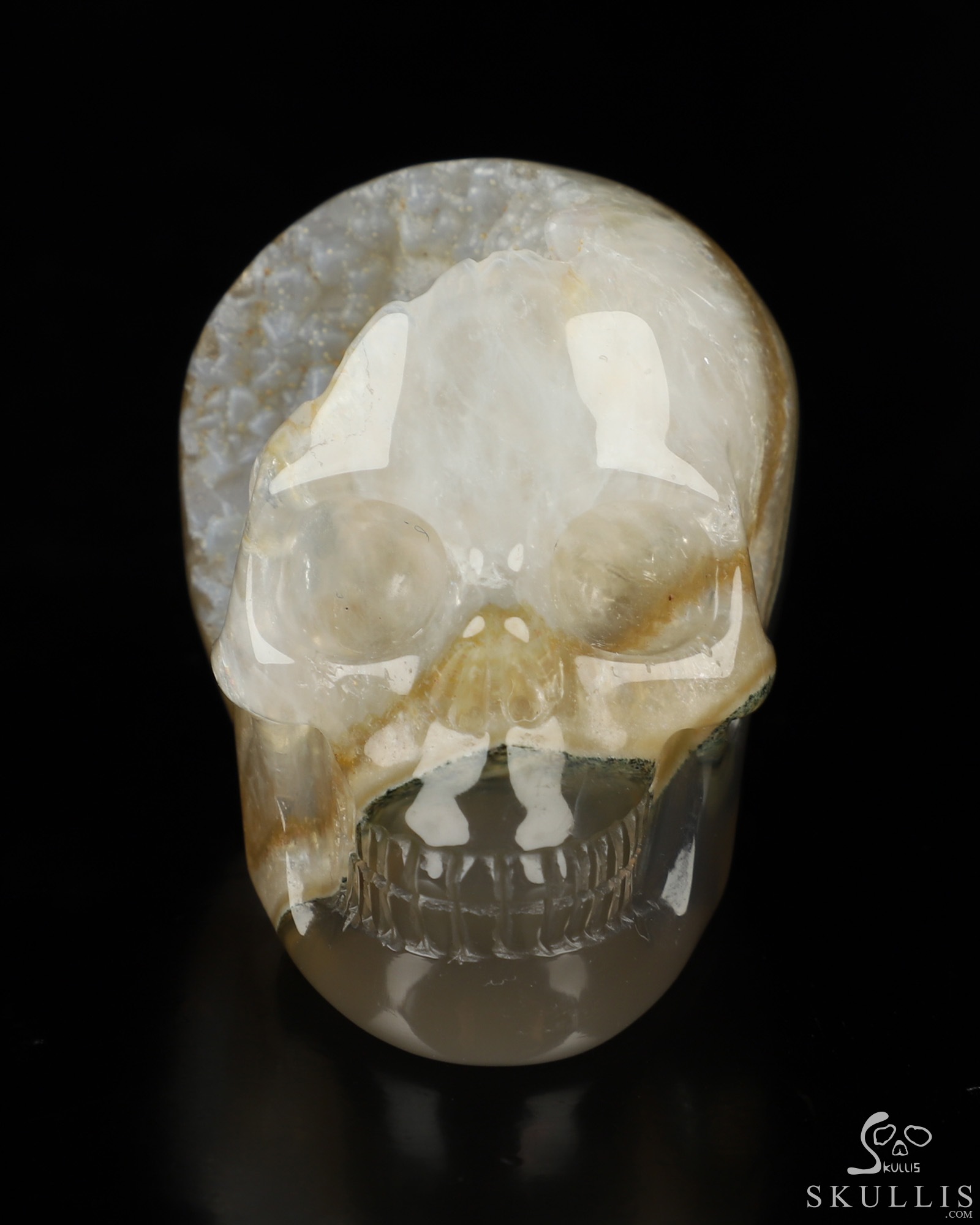 4.7" Agate Geode Carved Crystal Skull, Realistic, Crystal Healing