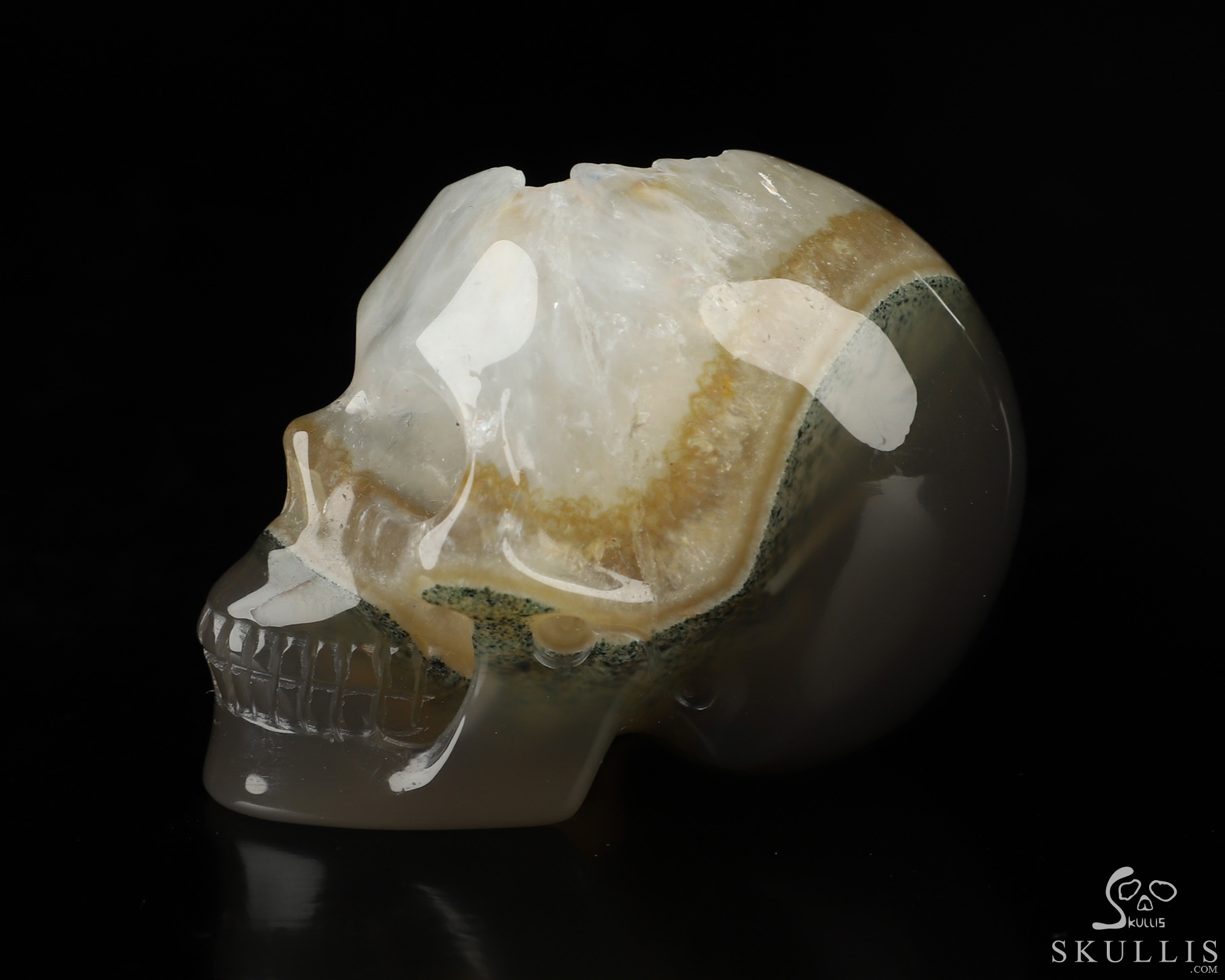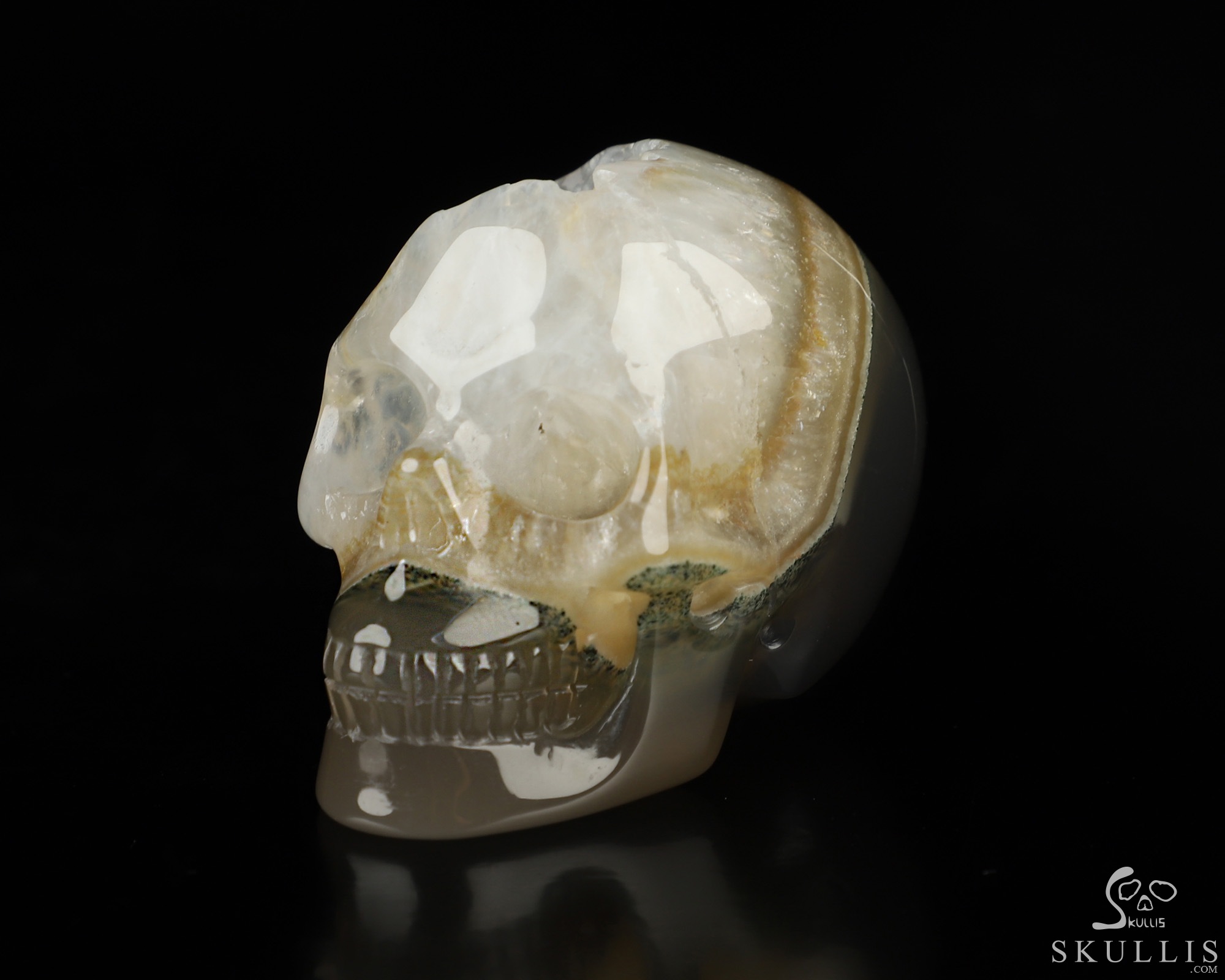 Huge 3.0" Agate Geode Carved Crystal Skull, Realistic, Crystal Healing