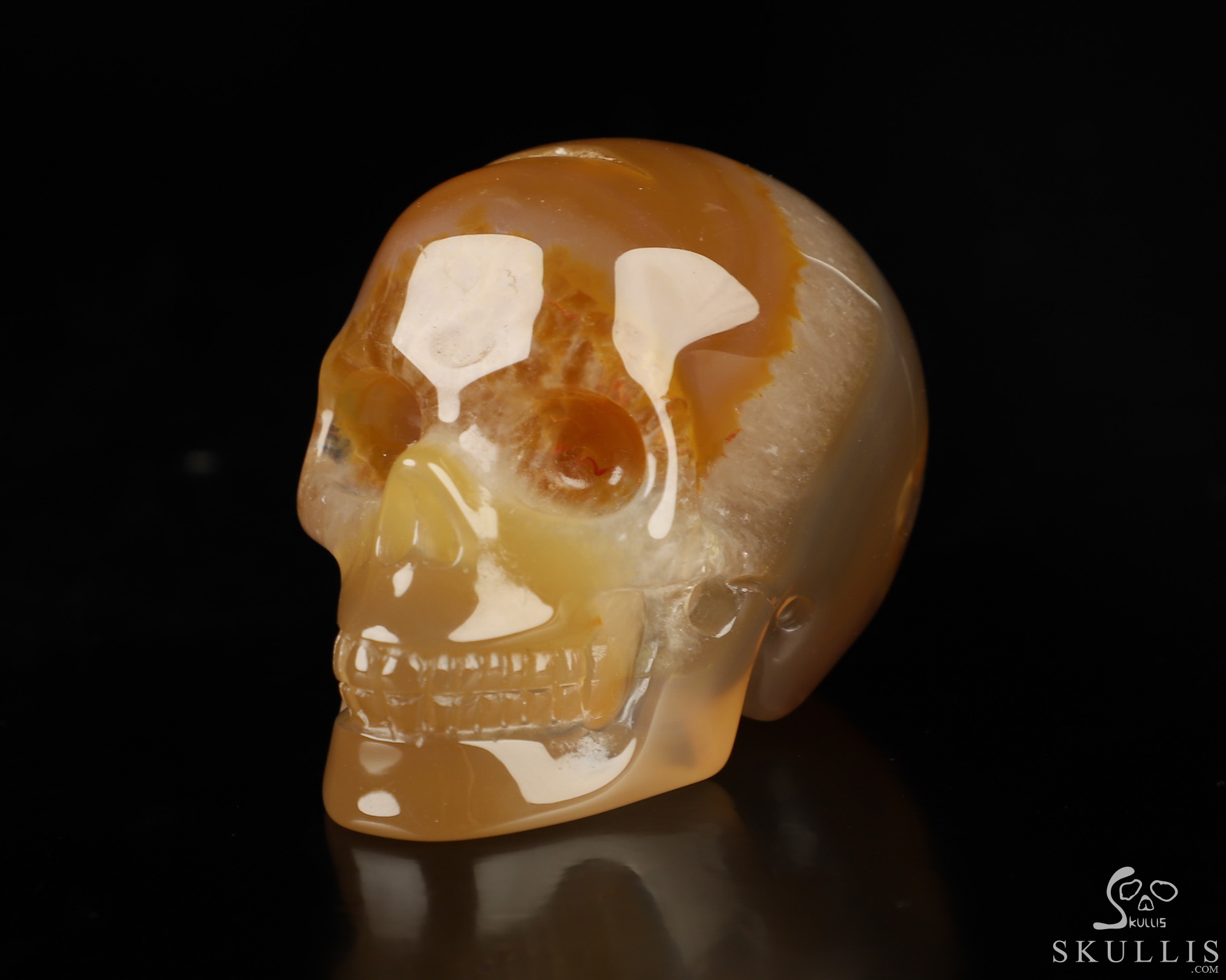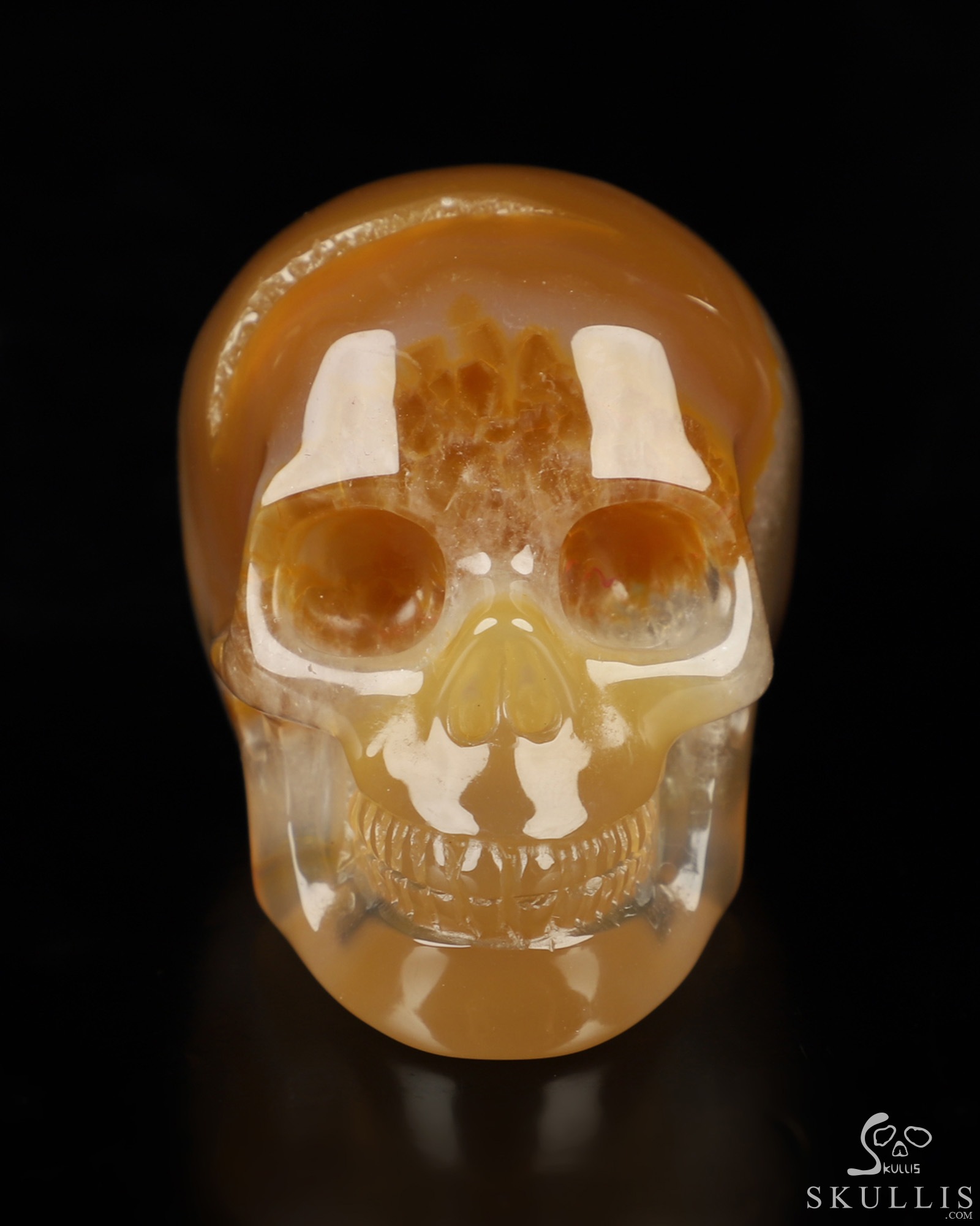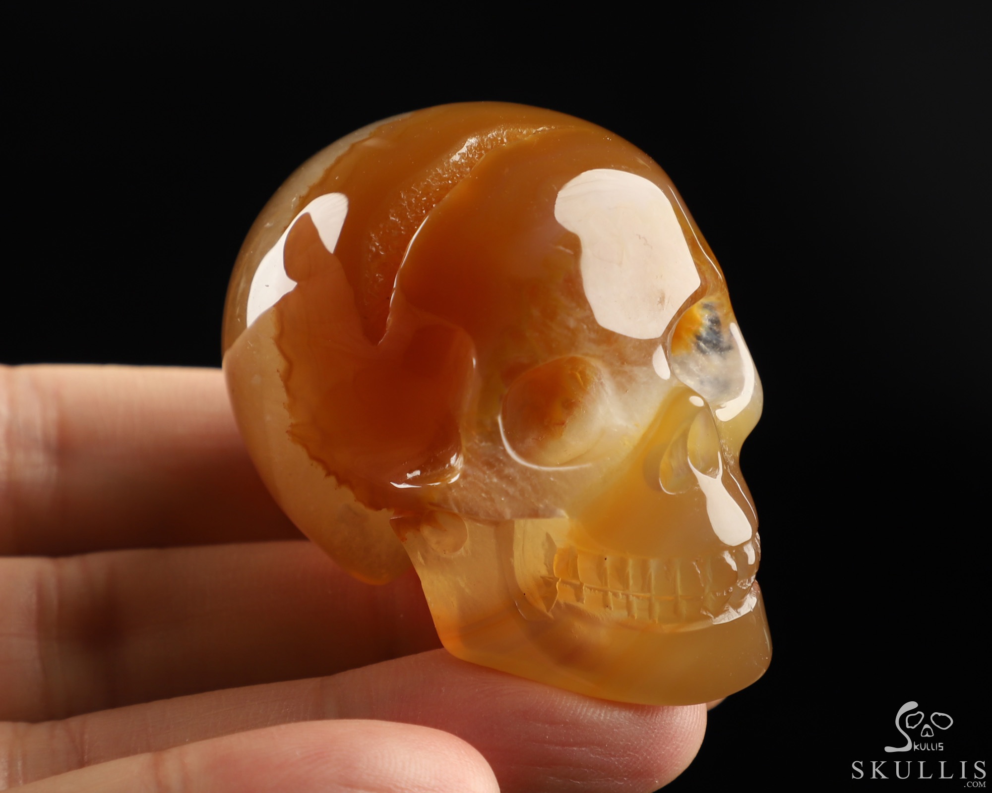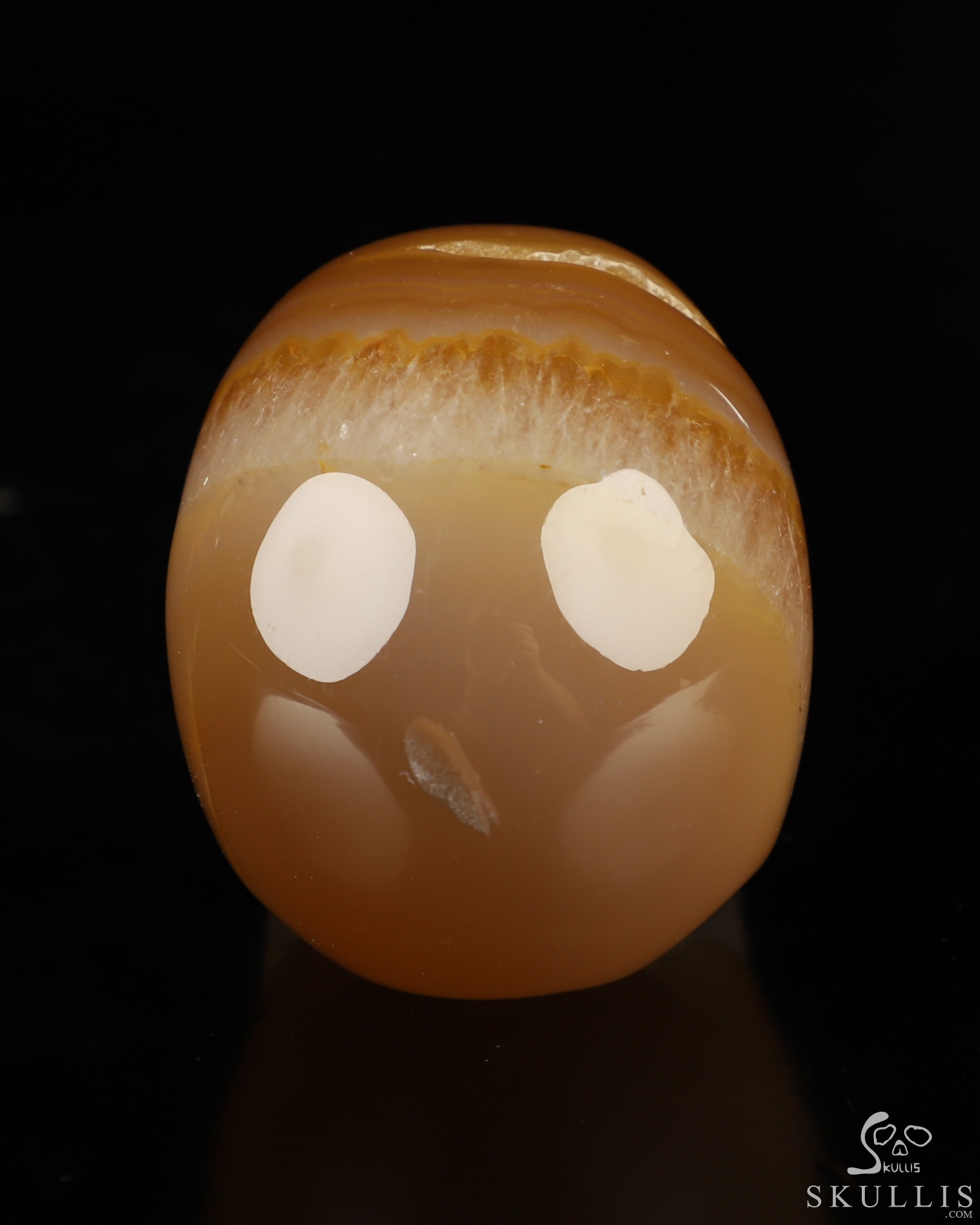 You are looking at an Agate Geode skull. The skull is 2 inches from front to back.
