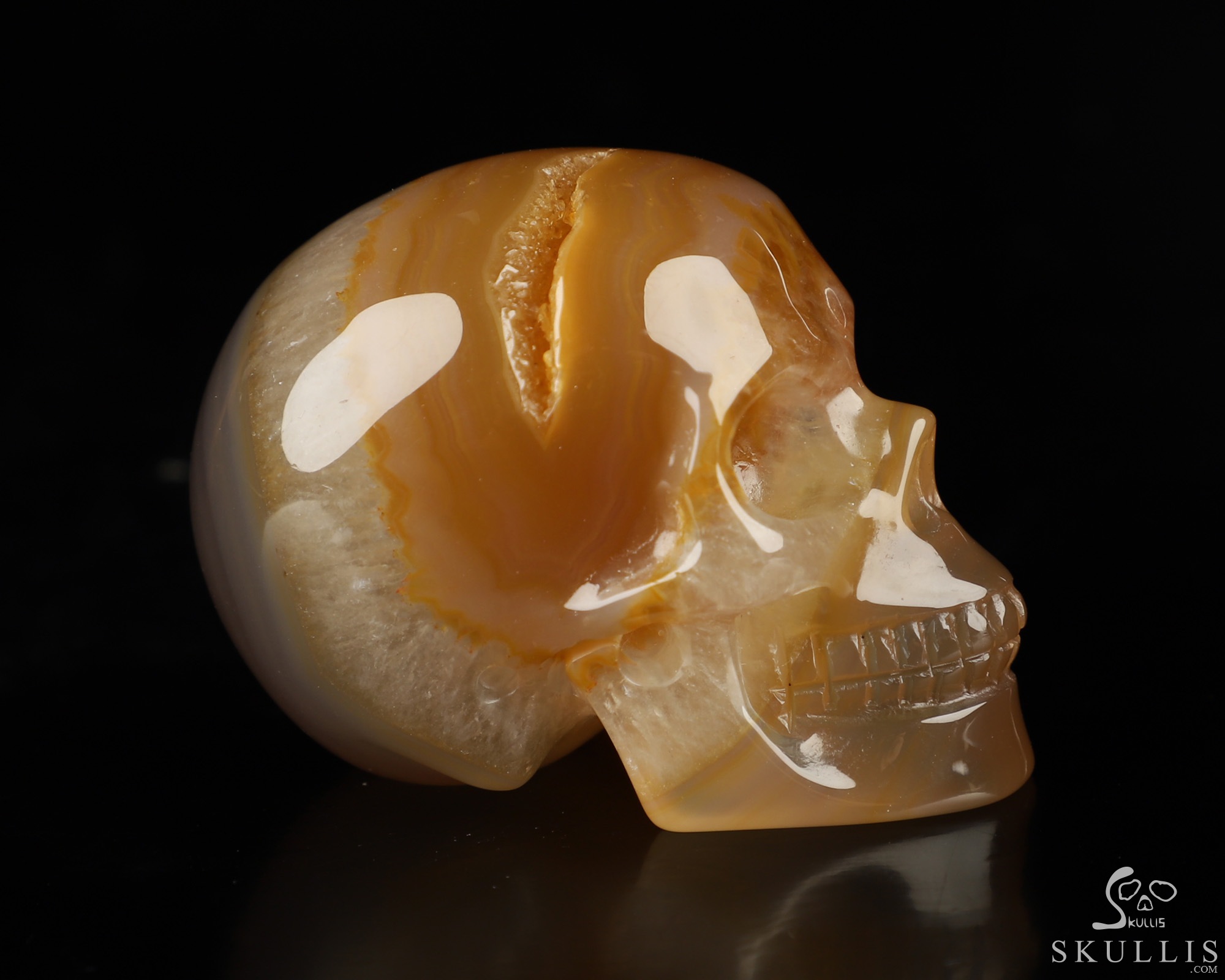 Huge 4.4" Agate Geode Carved Crystal Skull